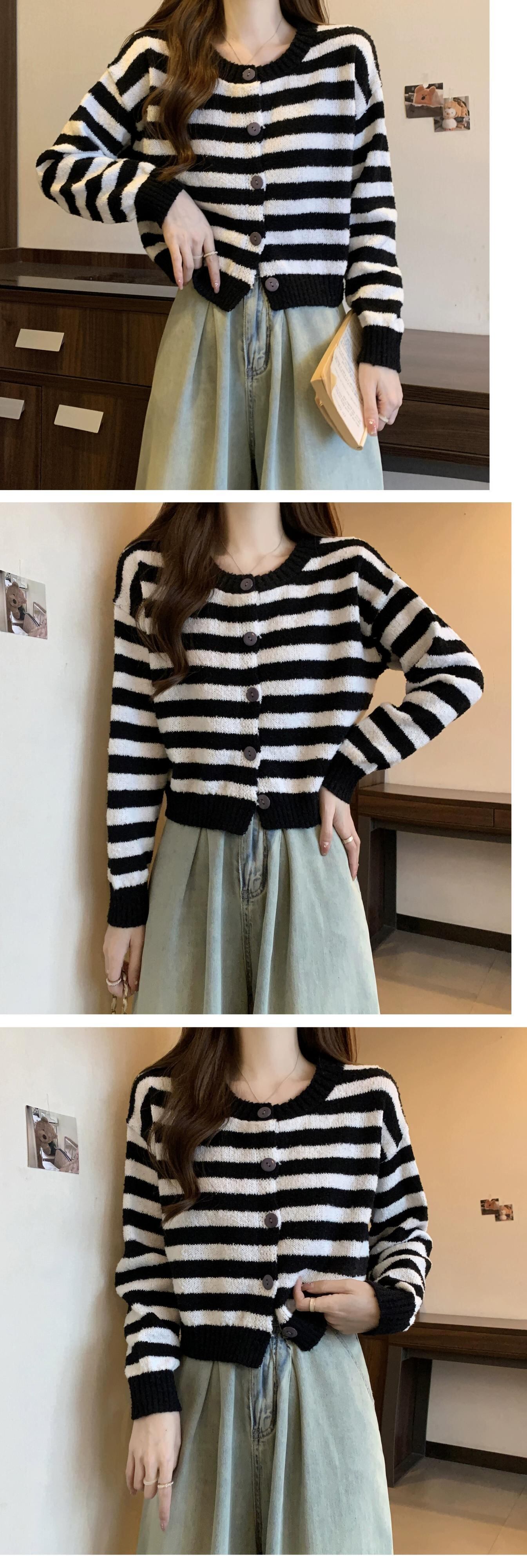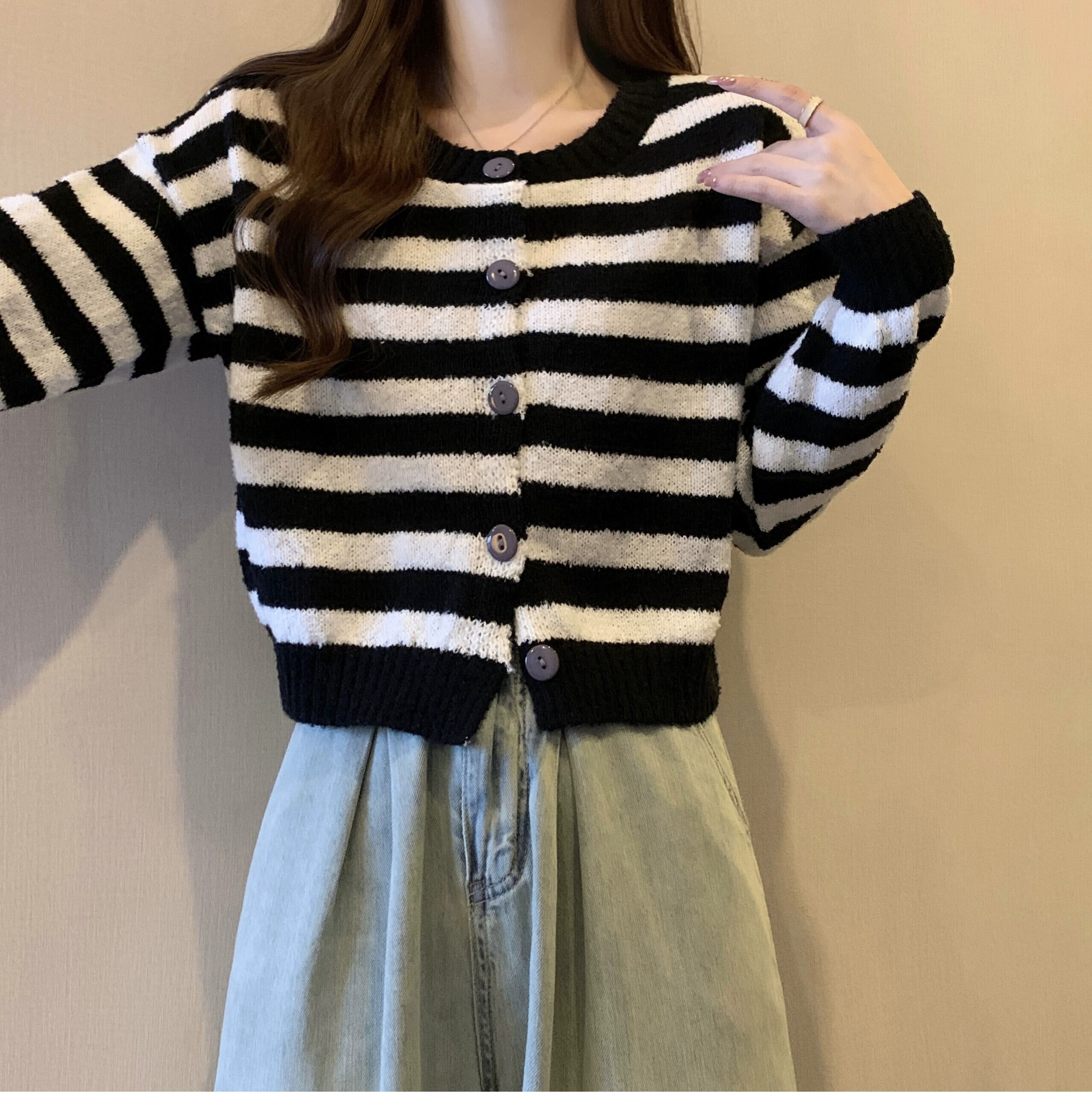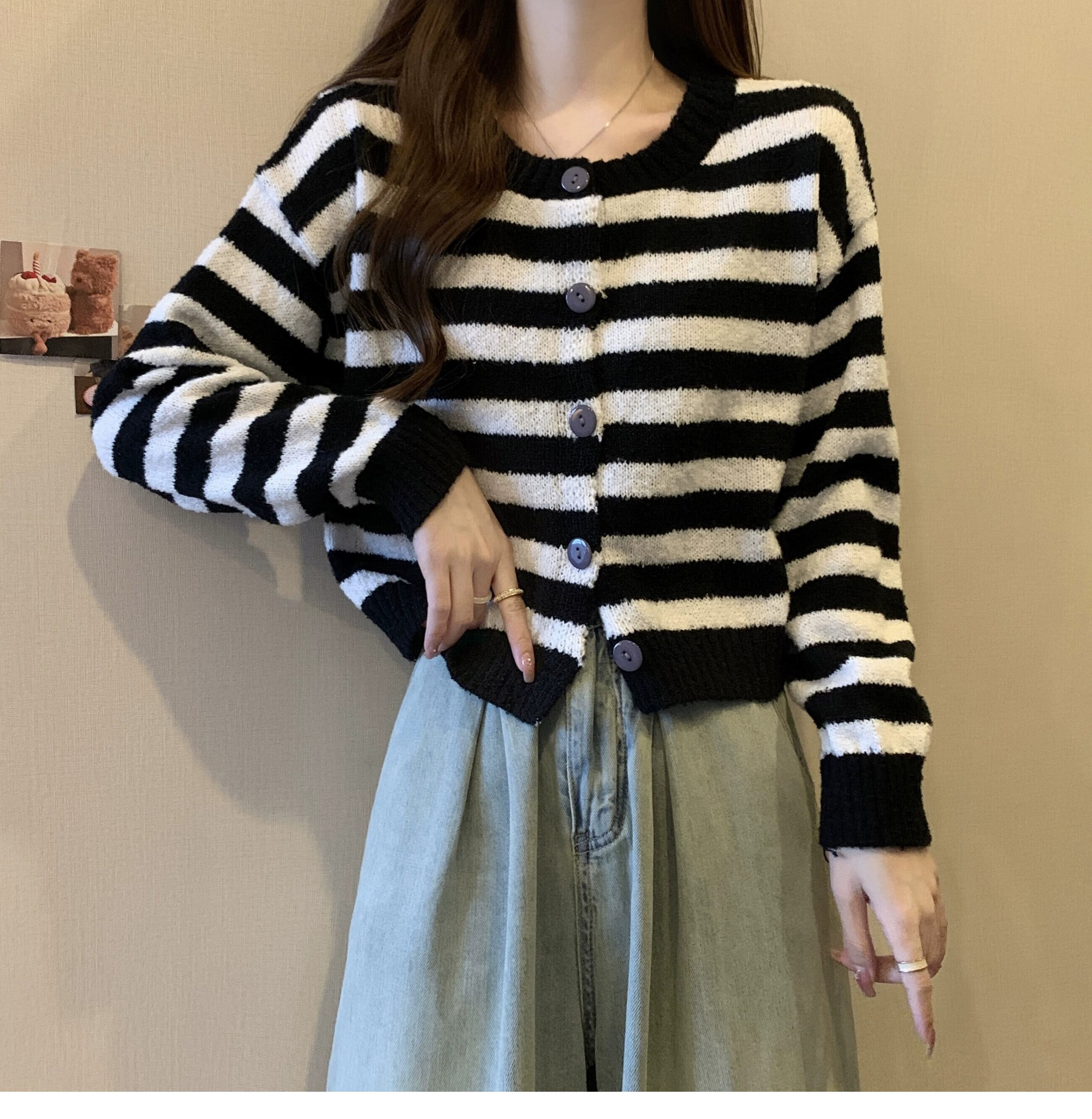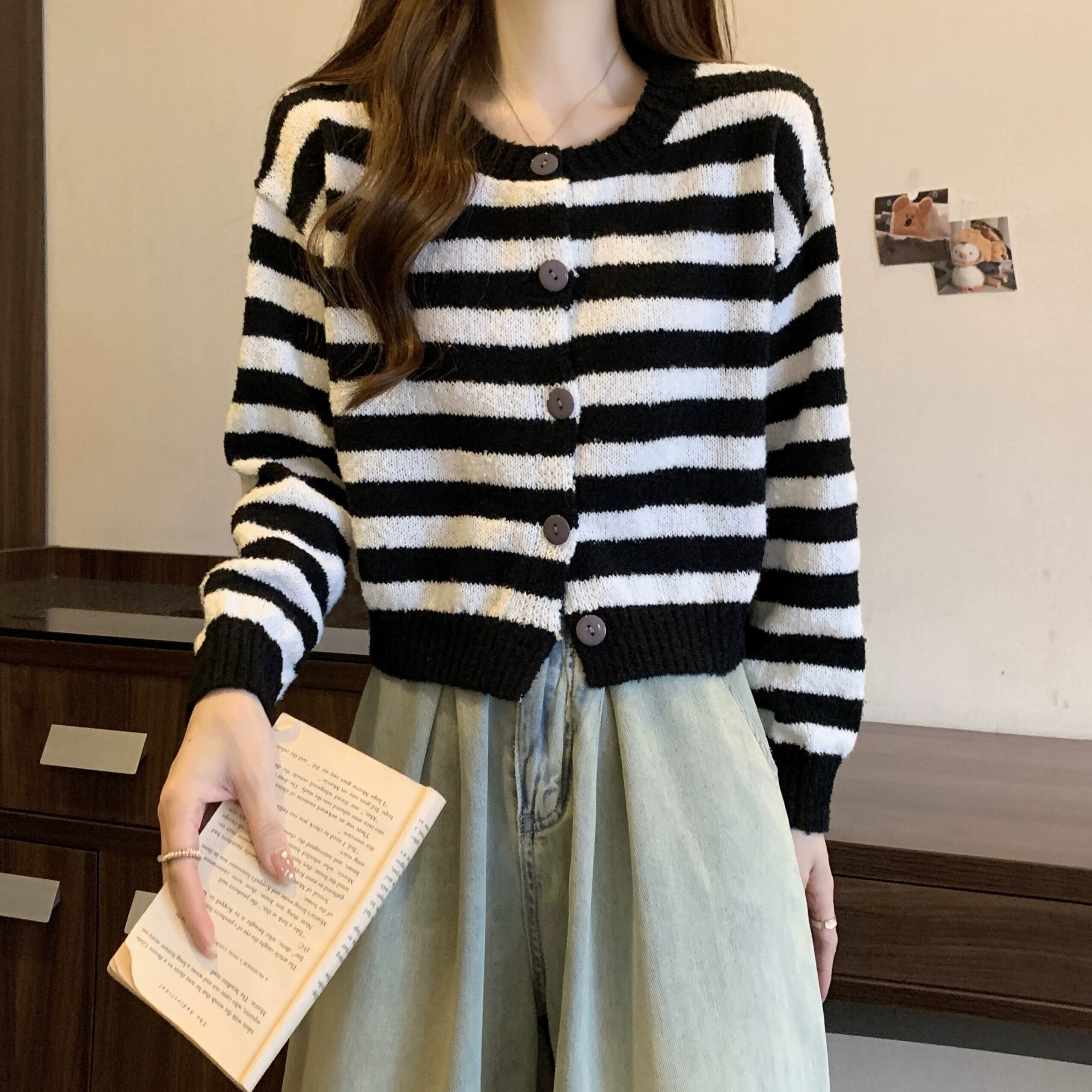 レトロなストライプのショートソフトワックスセータージャケットレディース、秋と冬のルーズなアウターウェア、怠惰なスタイル、多用途の長袖ニットカーディガン ロング オータム 秋物 ウィンター 冬物 7460020626687431 | framboise21