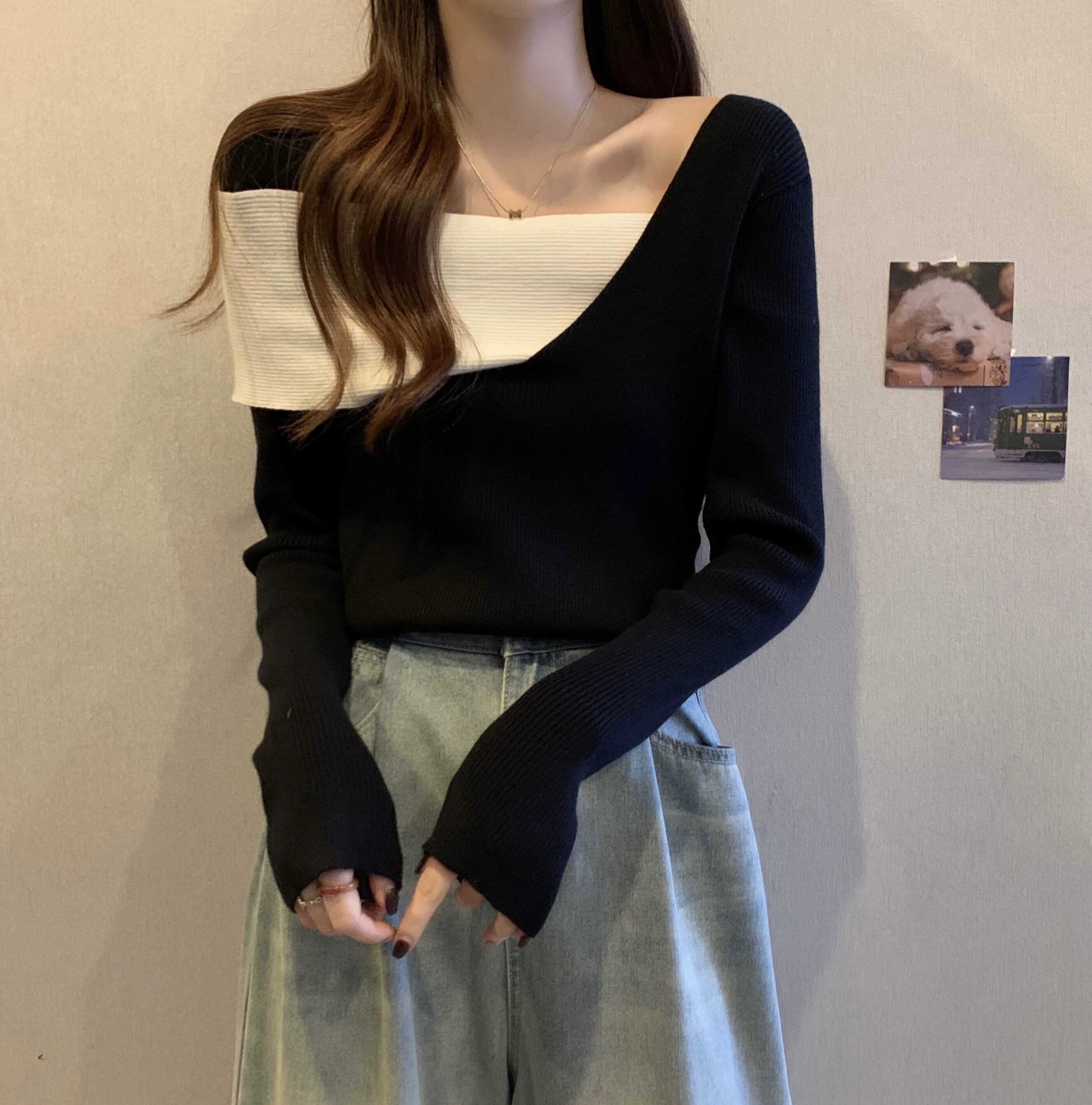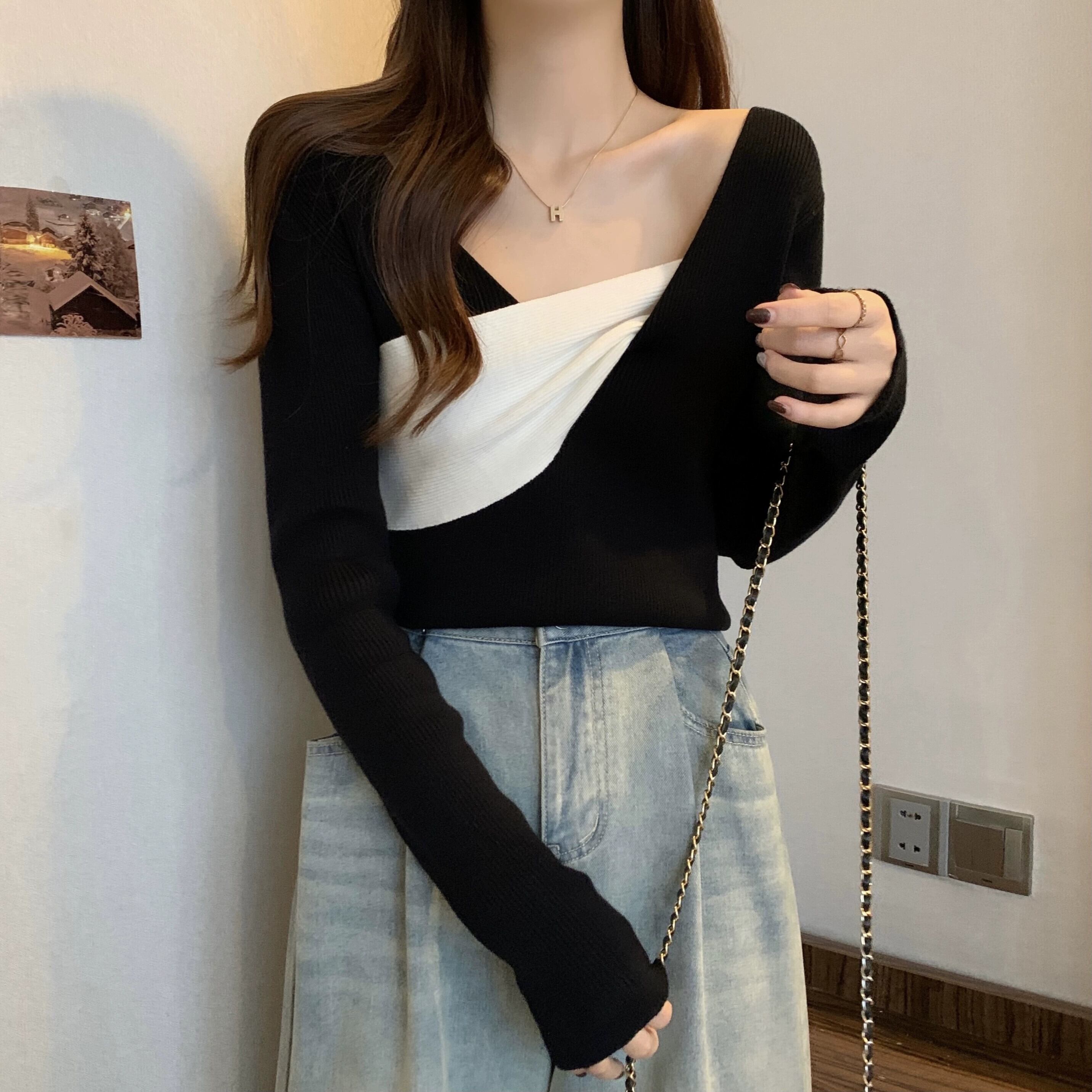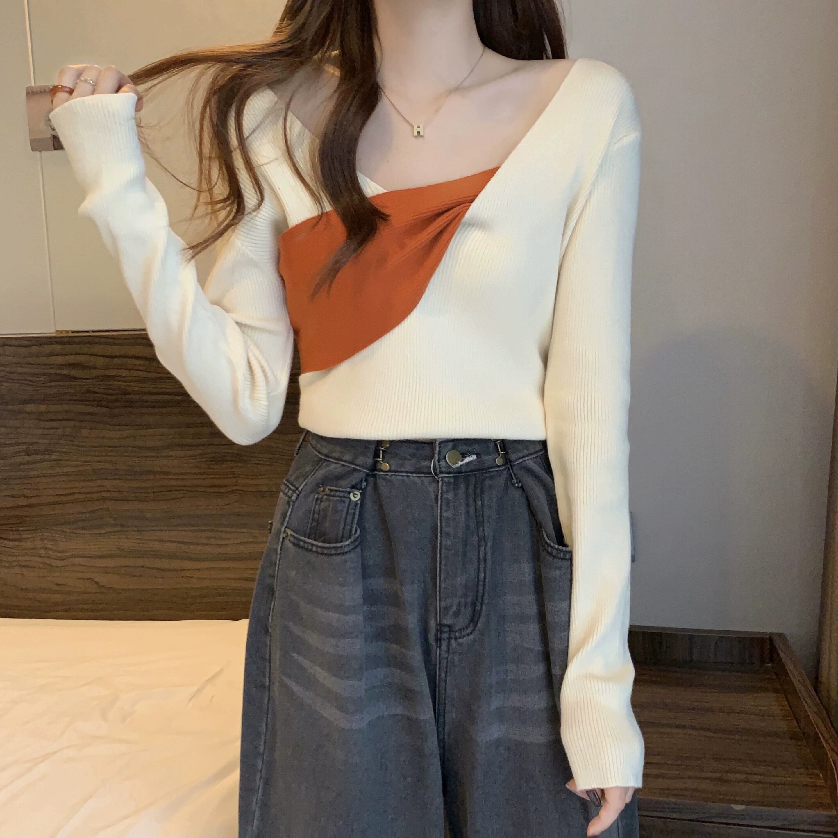 インナーアプリコットニットボトリングシャツ2023新作レディース秋冬スリムスリムでスタイリッシュな万能スロープカラー長袖セーター ロング オータム 秋物 ウィンター 冬物 7460071994556552 | framboise21