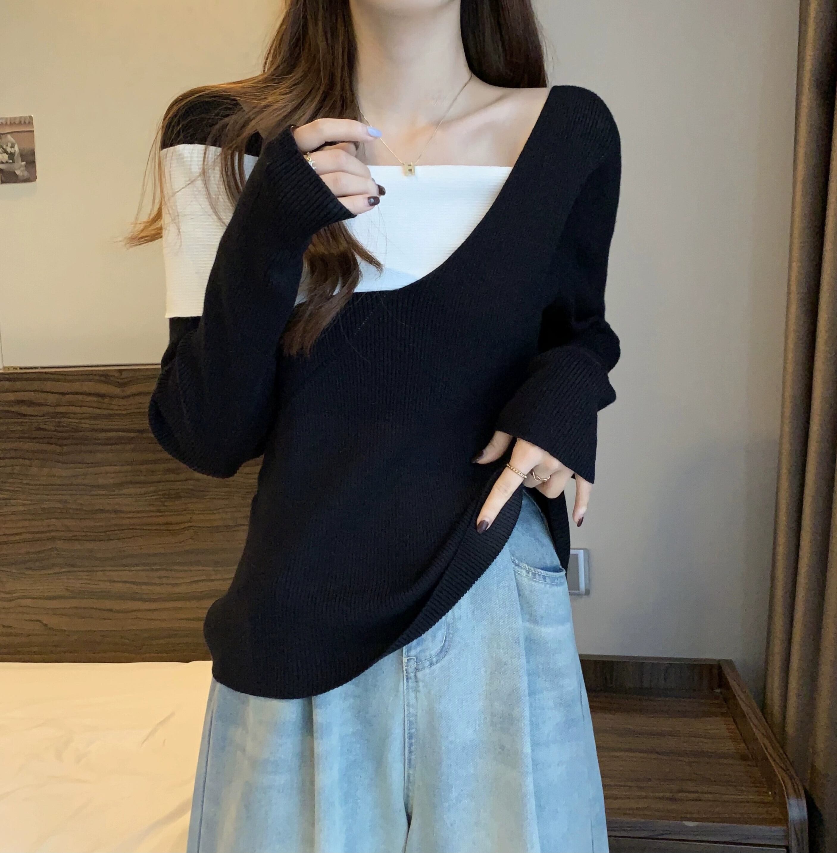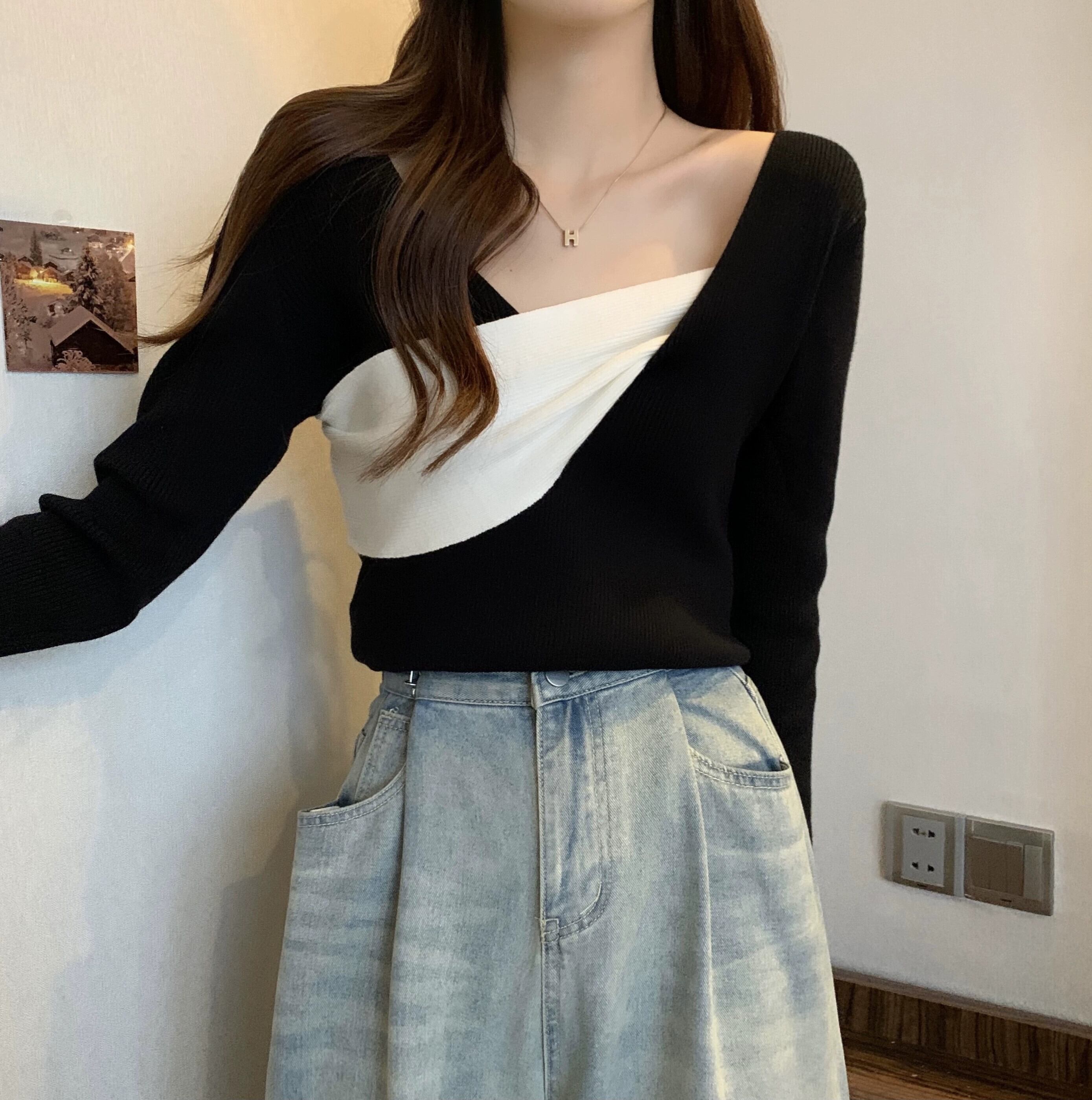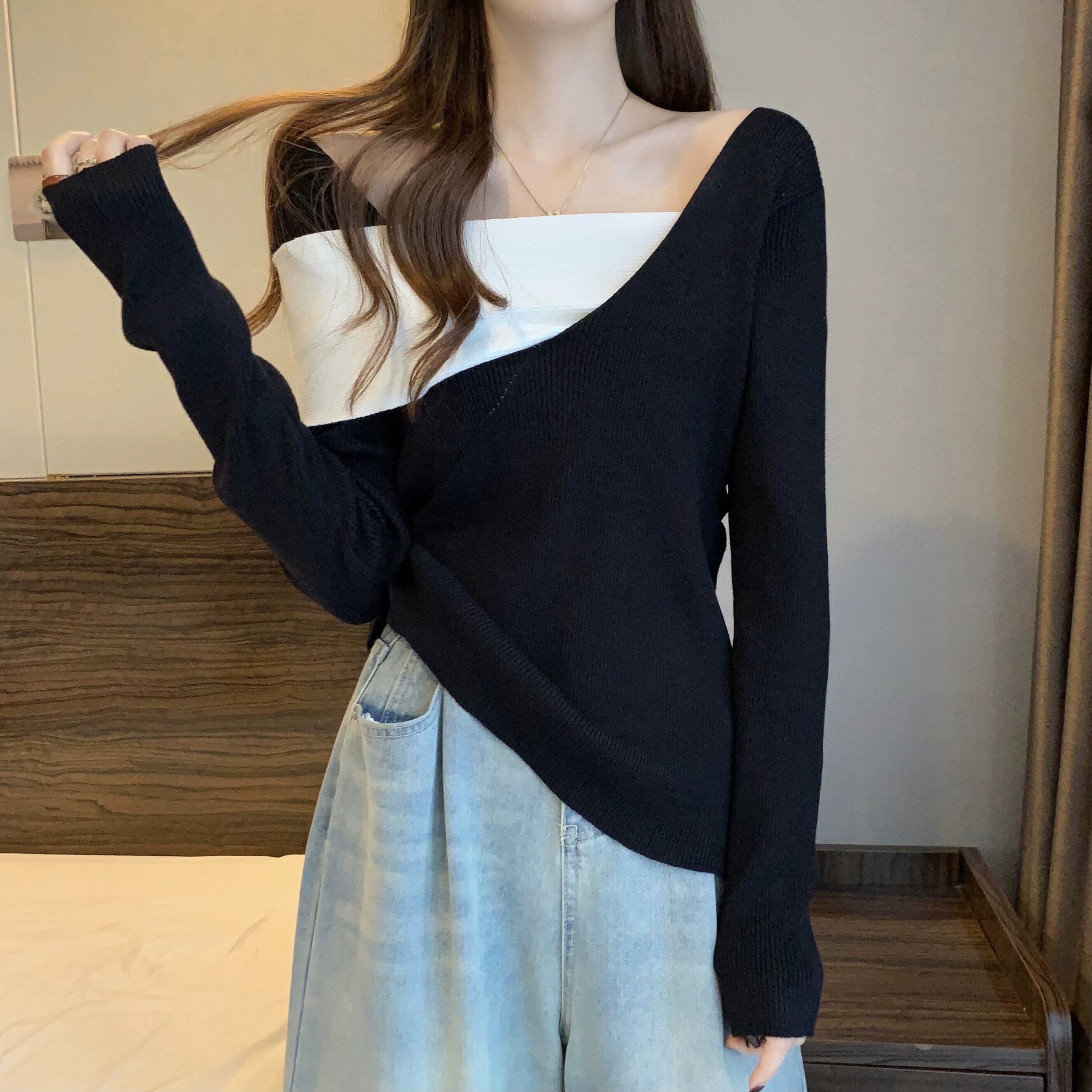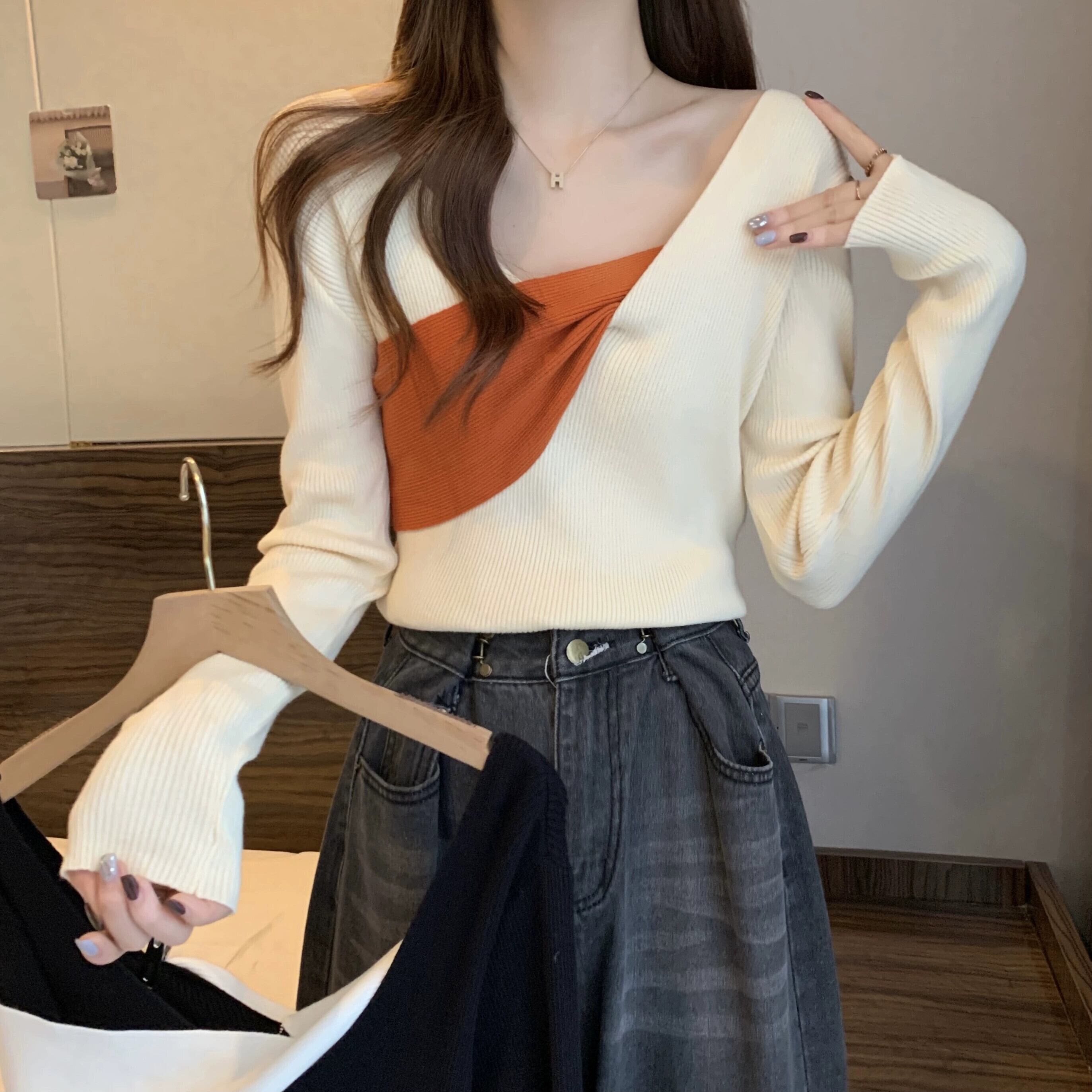 インナーアプリコットニットボトリングシャツ2023新作レディース秋冬スリムスリムでスタイリッシュな万能スロープカラー長袖セーター ロング オータム 秋物 ウィンター 冬物 7460071994556552 | framboise21
