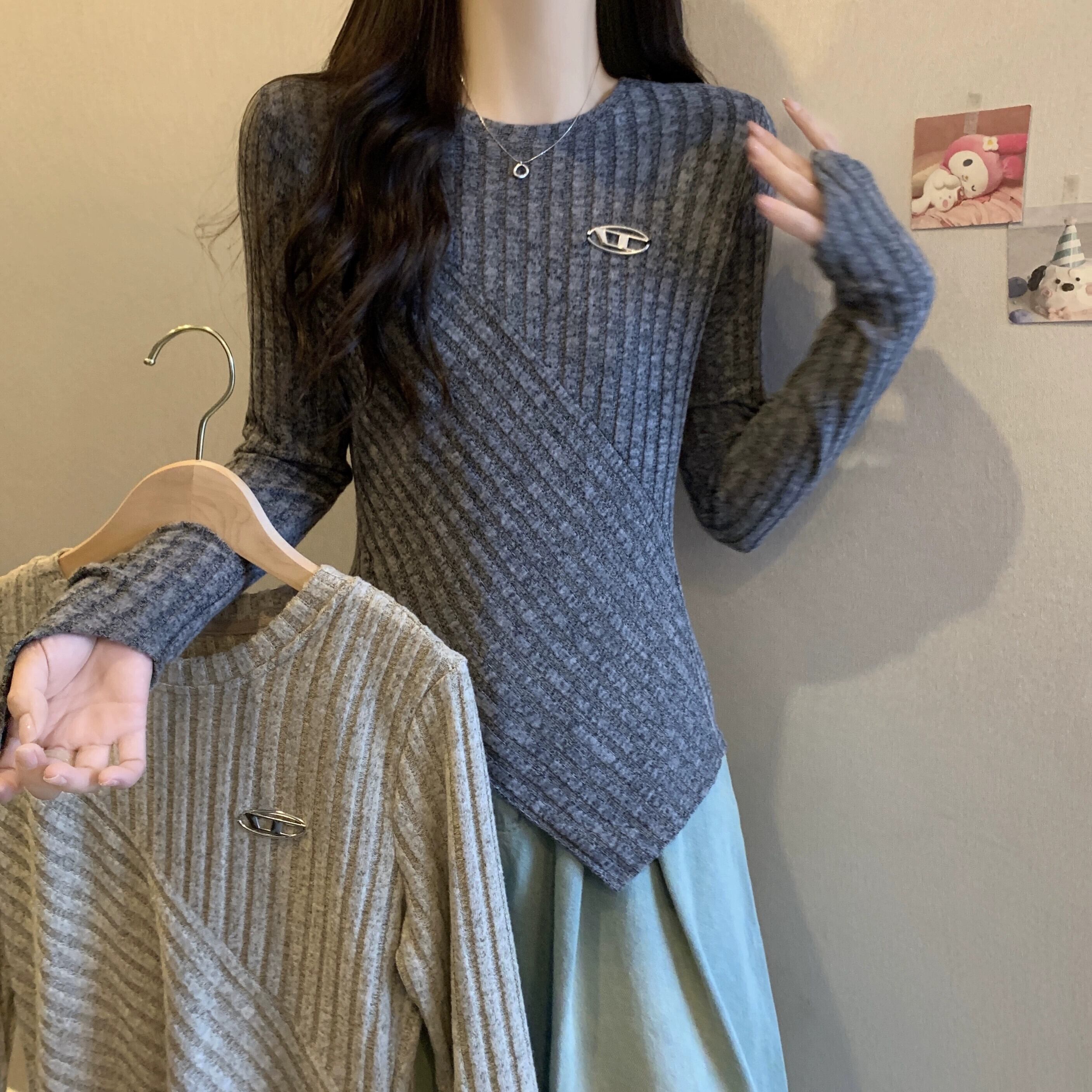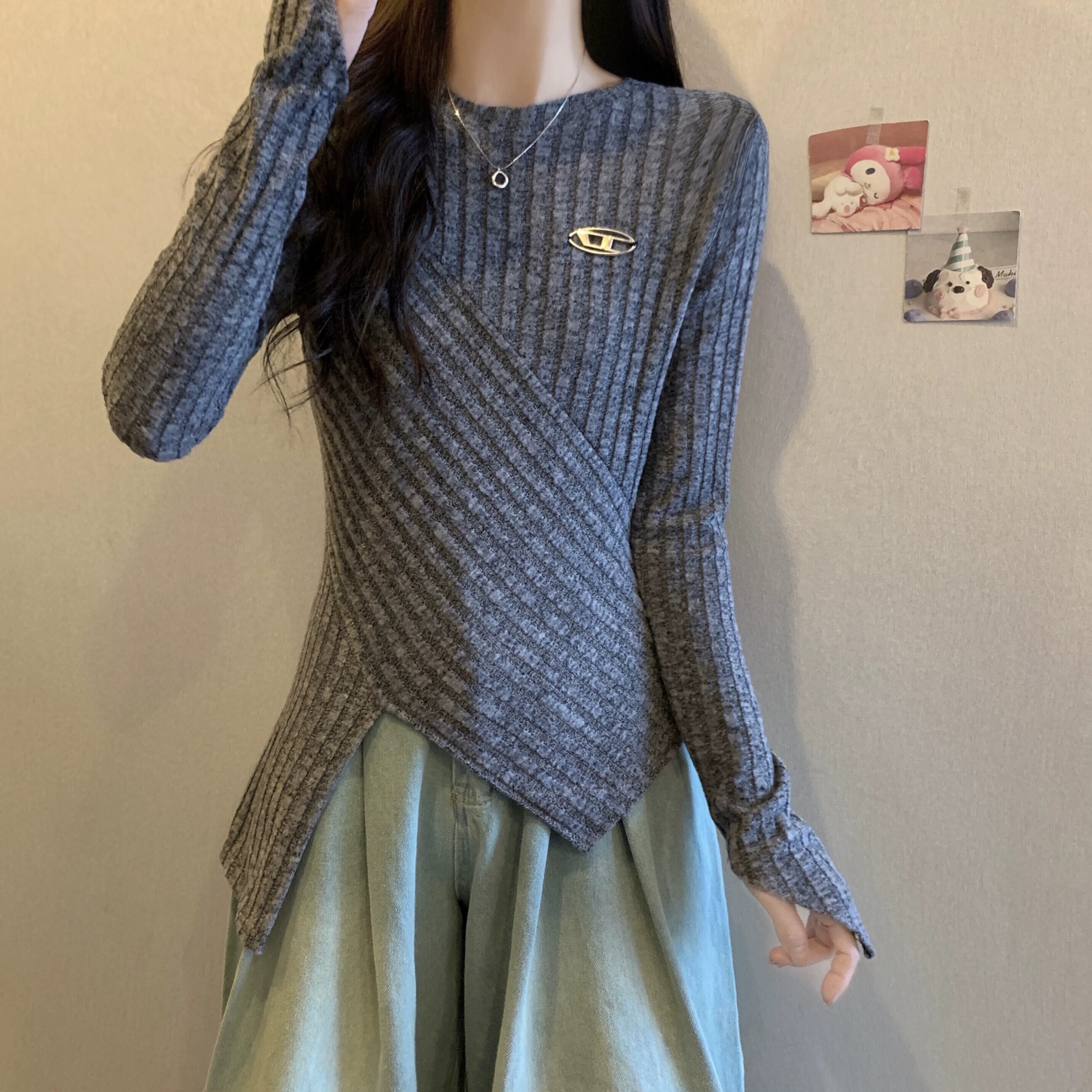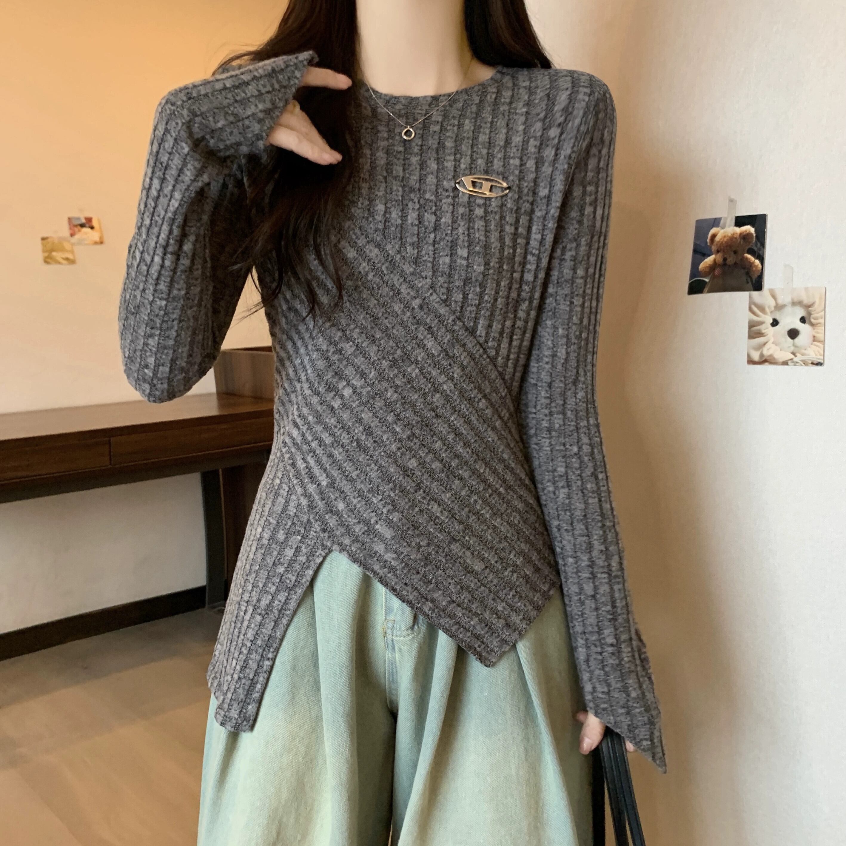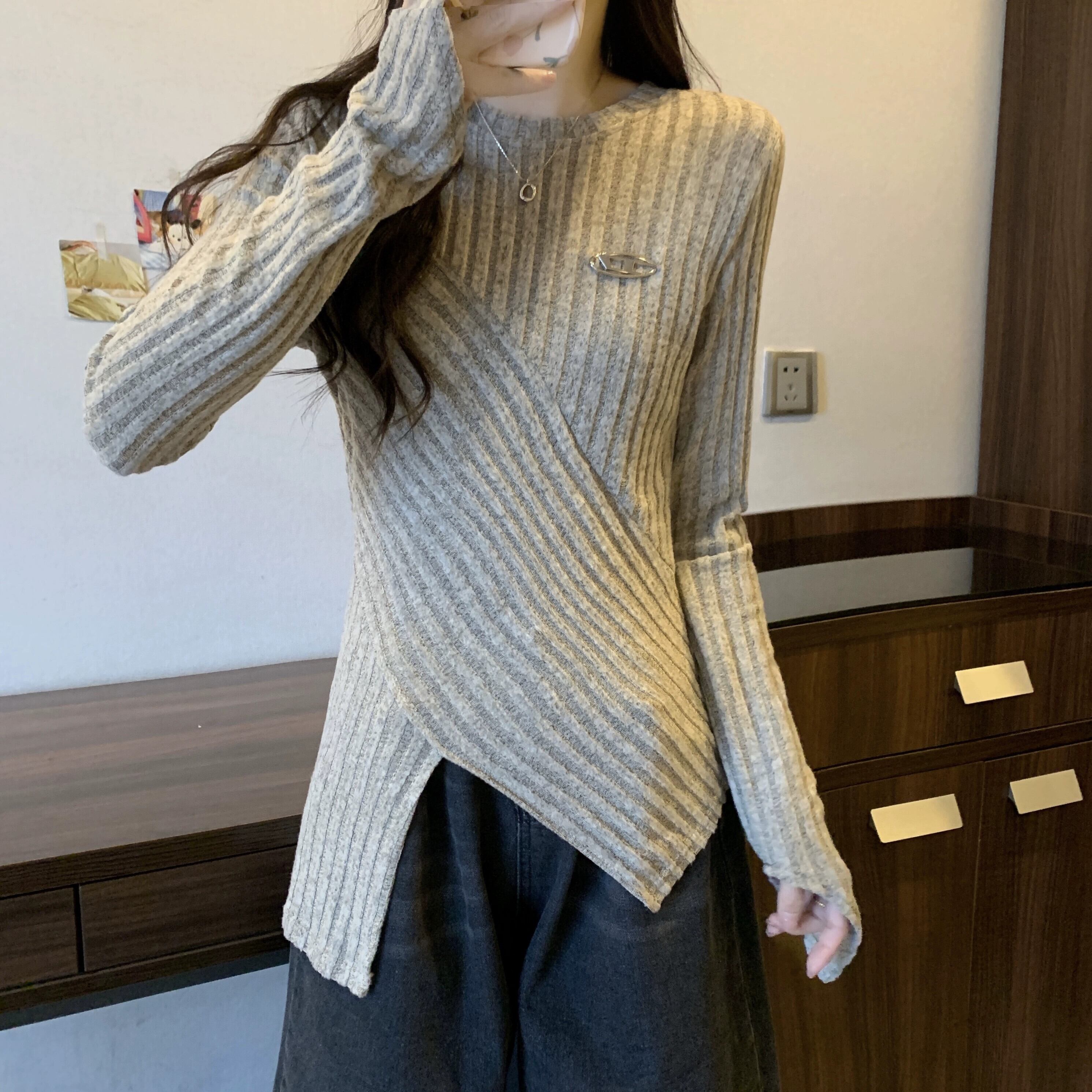 不規則なスリットニットボトムシャツレディース、秋冬デザイン、ファッショナブル、ウエスタンスタイル、内側にスリムフィット、厚みのある長袖セーター ロング オータム 秋物 ウィンター 冬物 7460010384340120 | framboise21