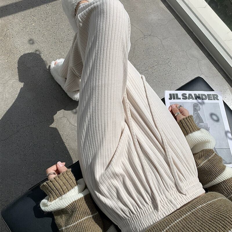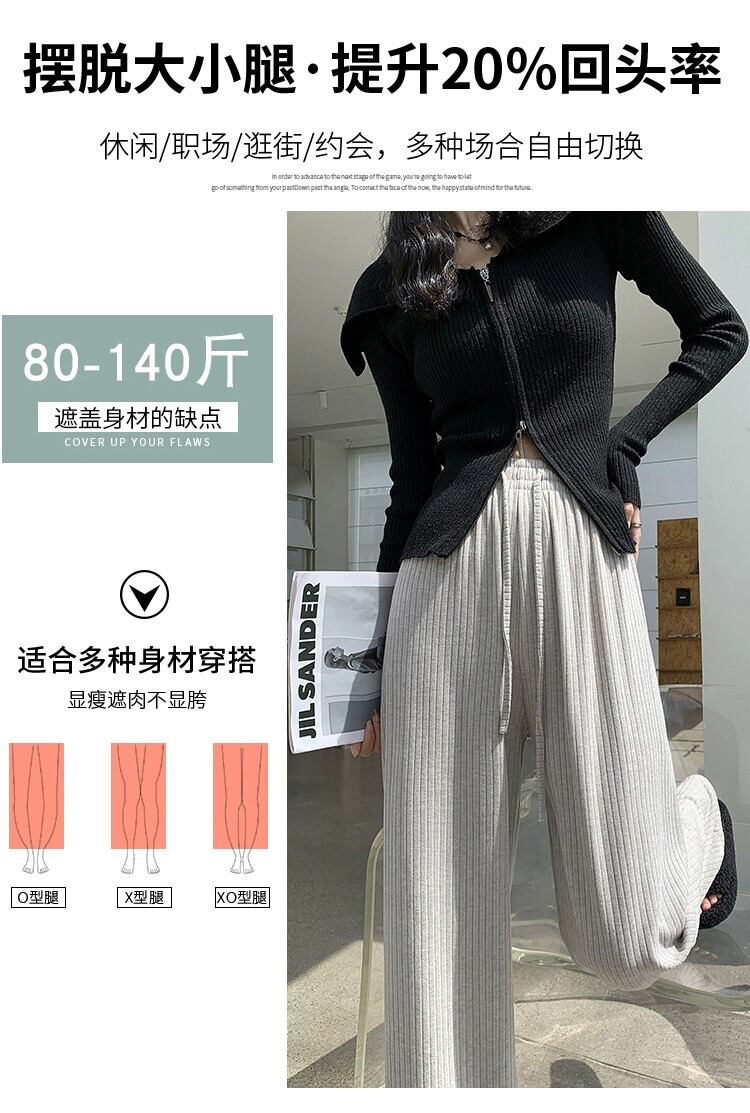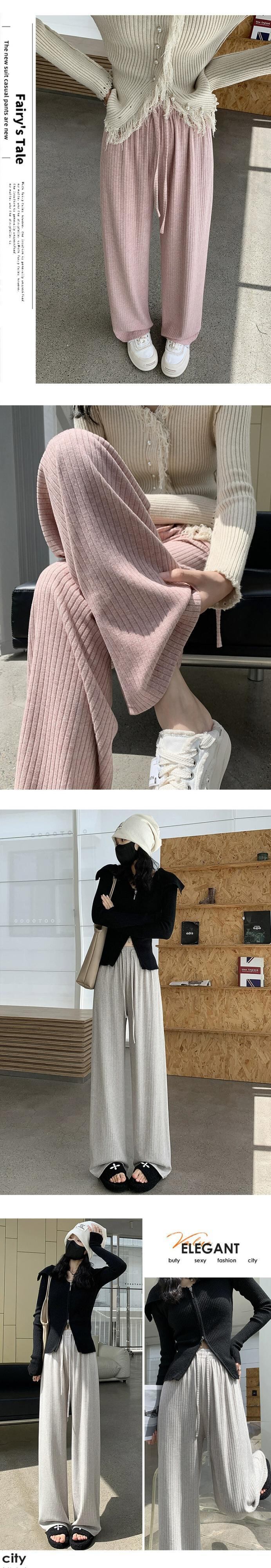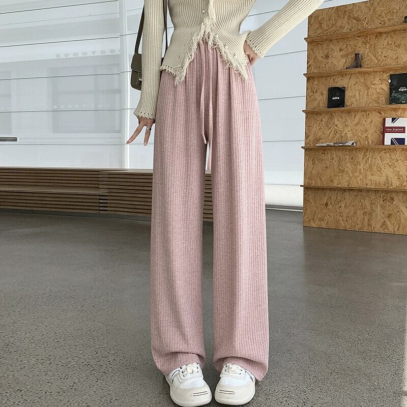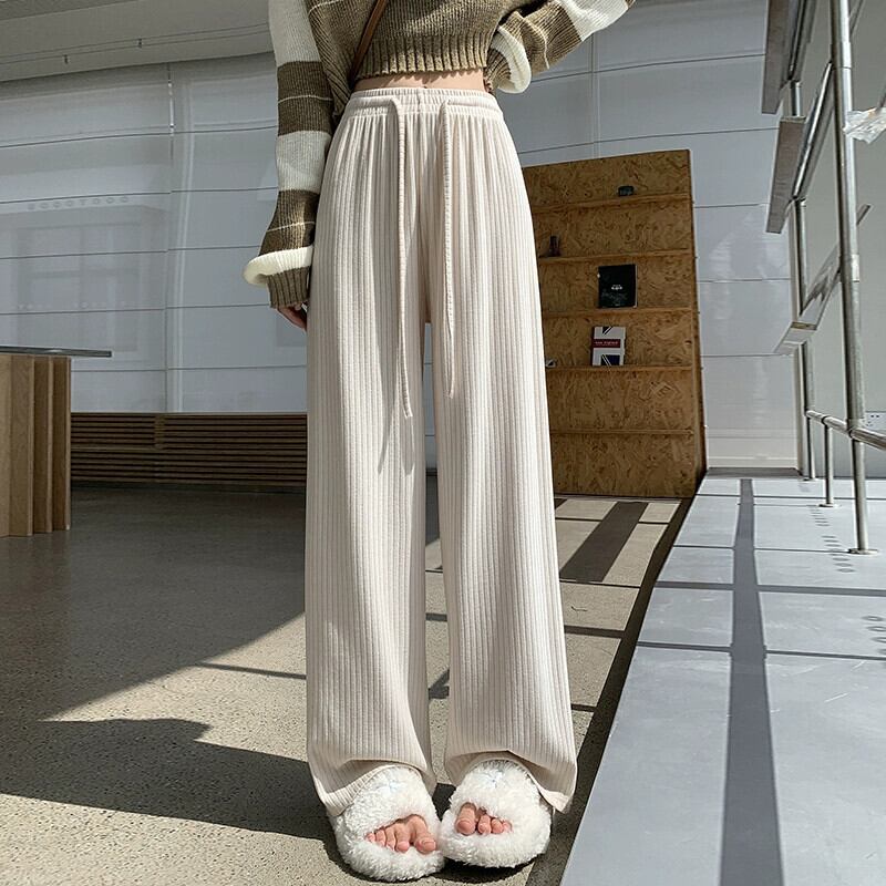 秋冬のカシミアニットワイドレッグパンツレディース、ハイウエスト、ナローカットもち米パンツ、ゆったりとスリム、ストレートレッグカジュアルフロアレングスパンツ ウィンター 冬物 7460033189373853 | framboise21