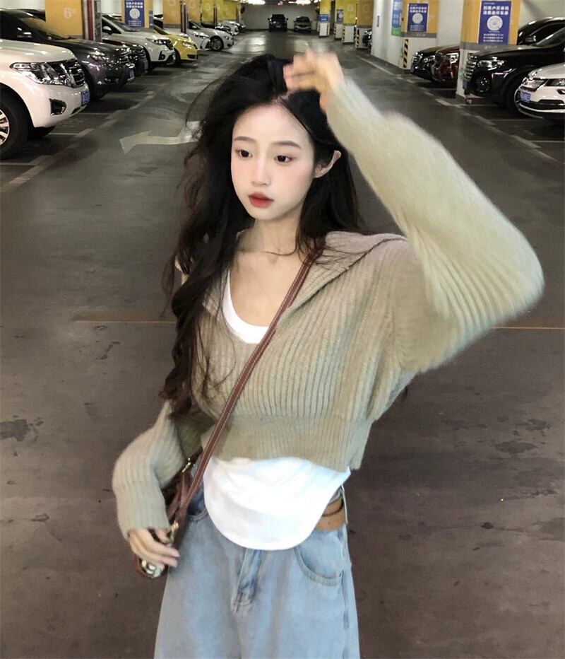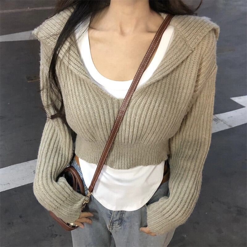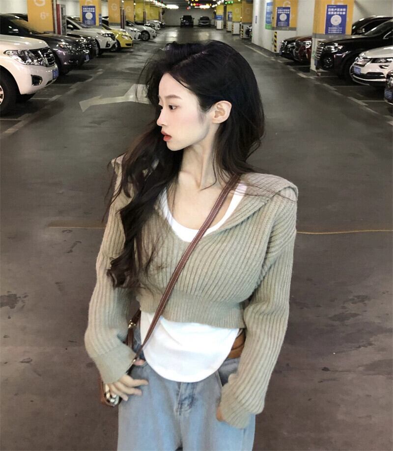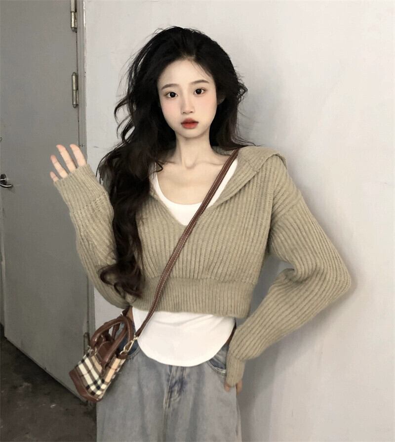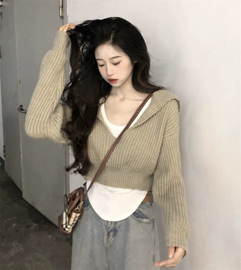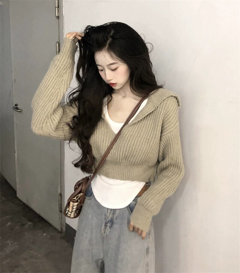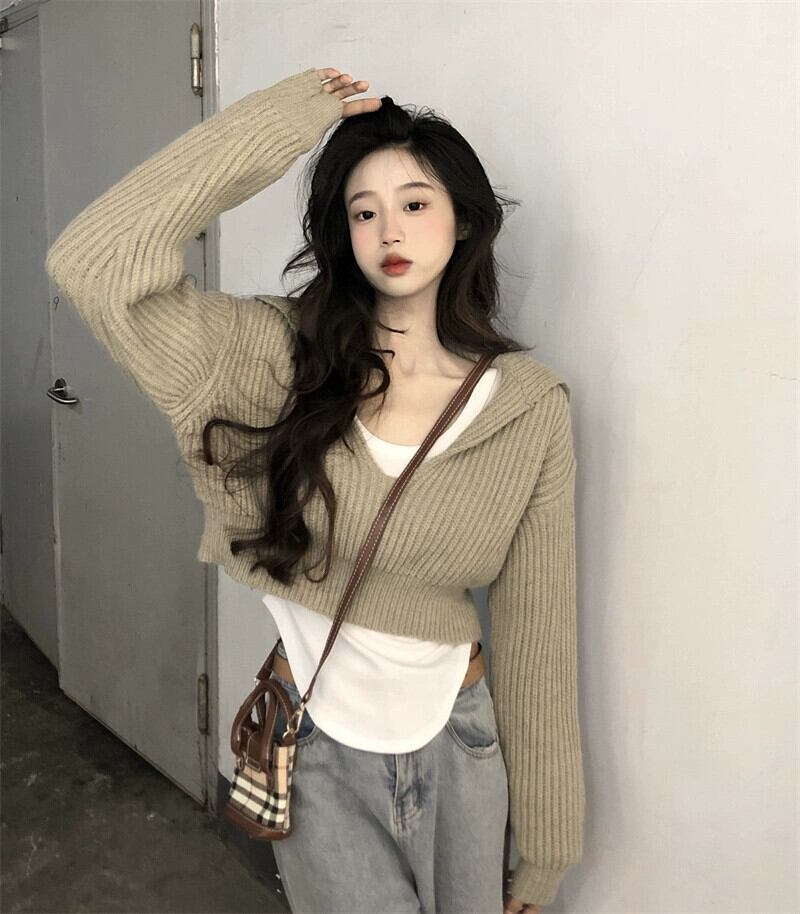 太いライン v ネックショートセーター女性秋冬 2023 新スタイル小人アウタープルオーバー長袖ニットトップ ロング オータム 秋物 ウィンター 冬物 Vネック 7460081191626207 | framboise21