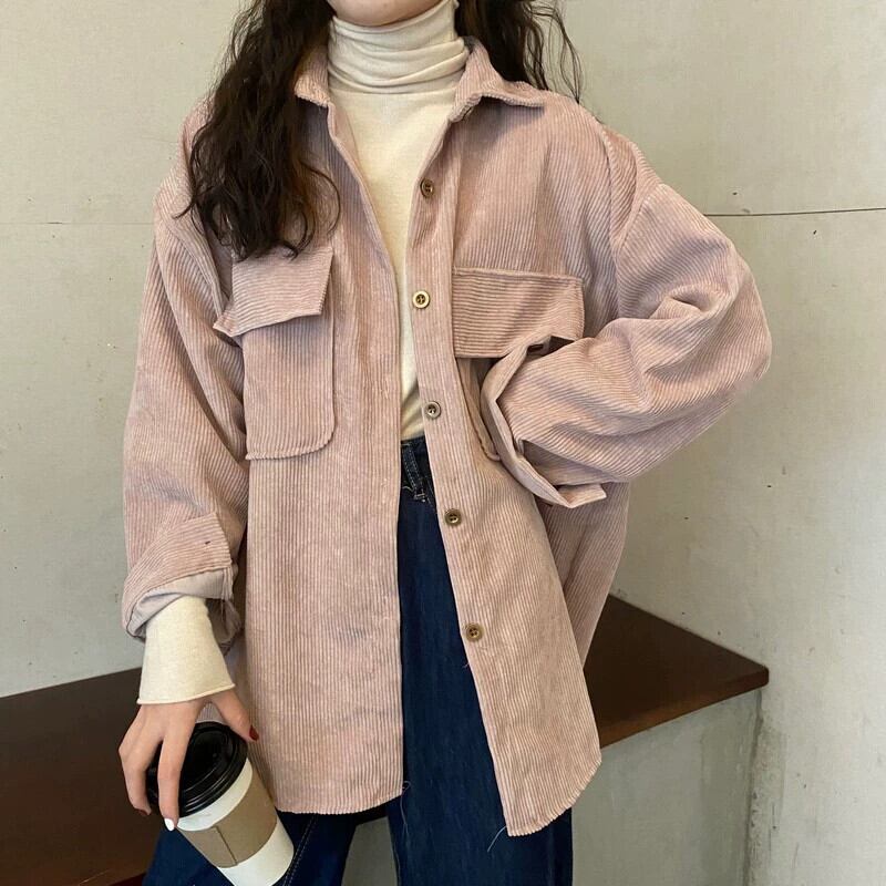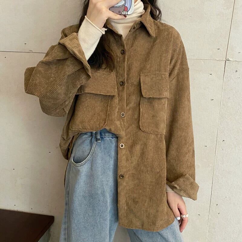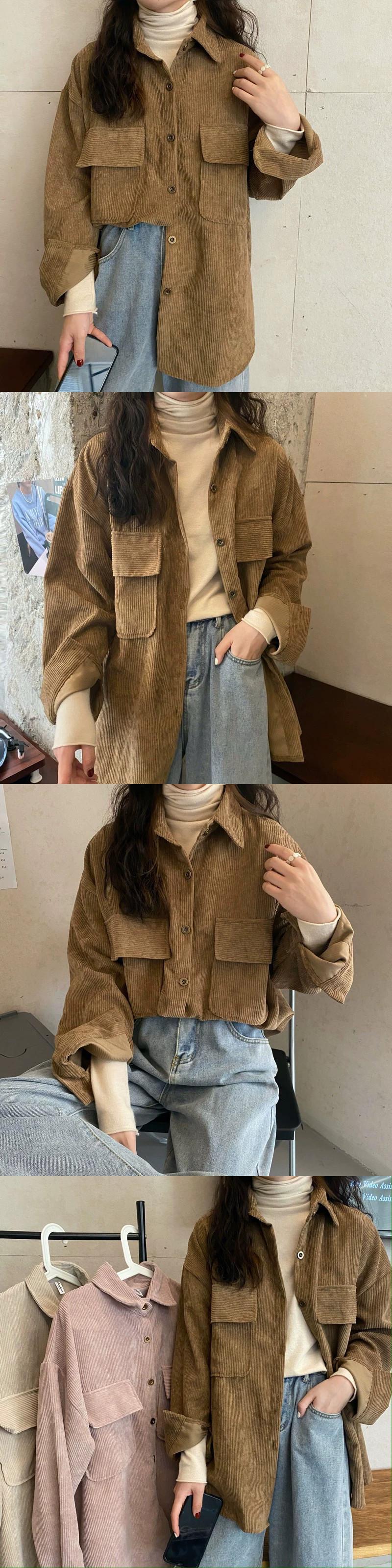 ミッドレングスのコーデュロイシャツジャケットレディース、秋冬レトロデザイン、ルーズでスリムなアウターウェア、レイヤード長袖シャツ ロング レッド オータム 秋物 ウィンター 冬物 7460019326039455 | framboise21