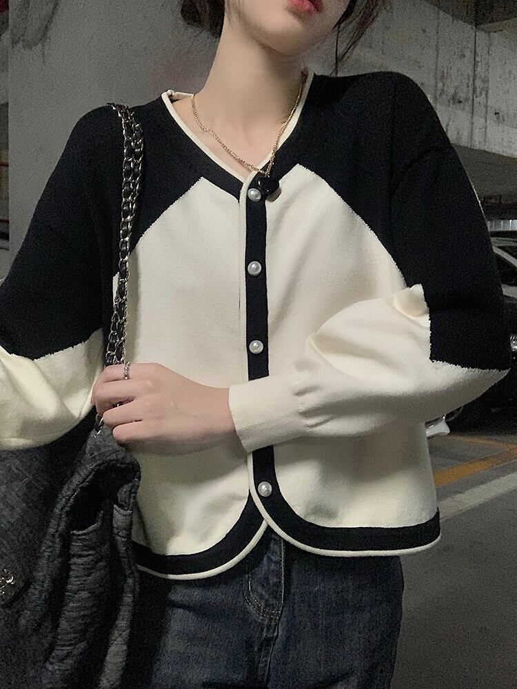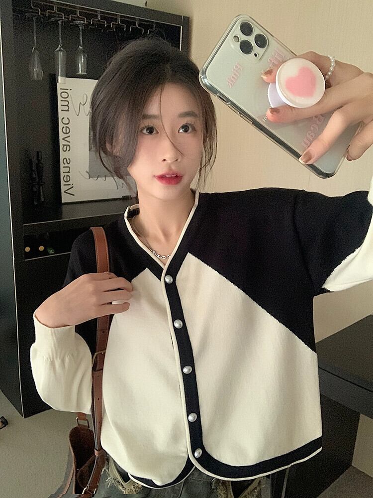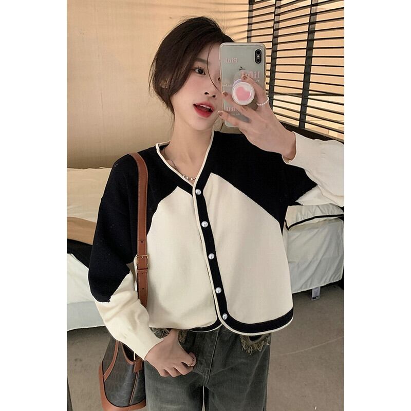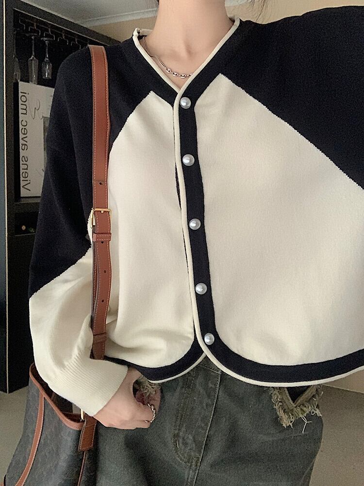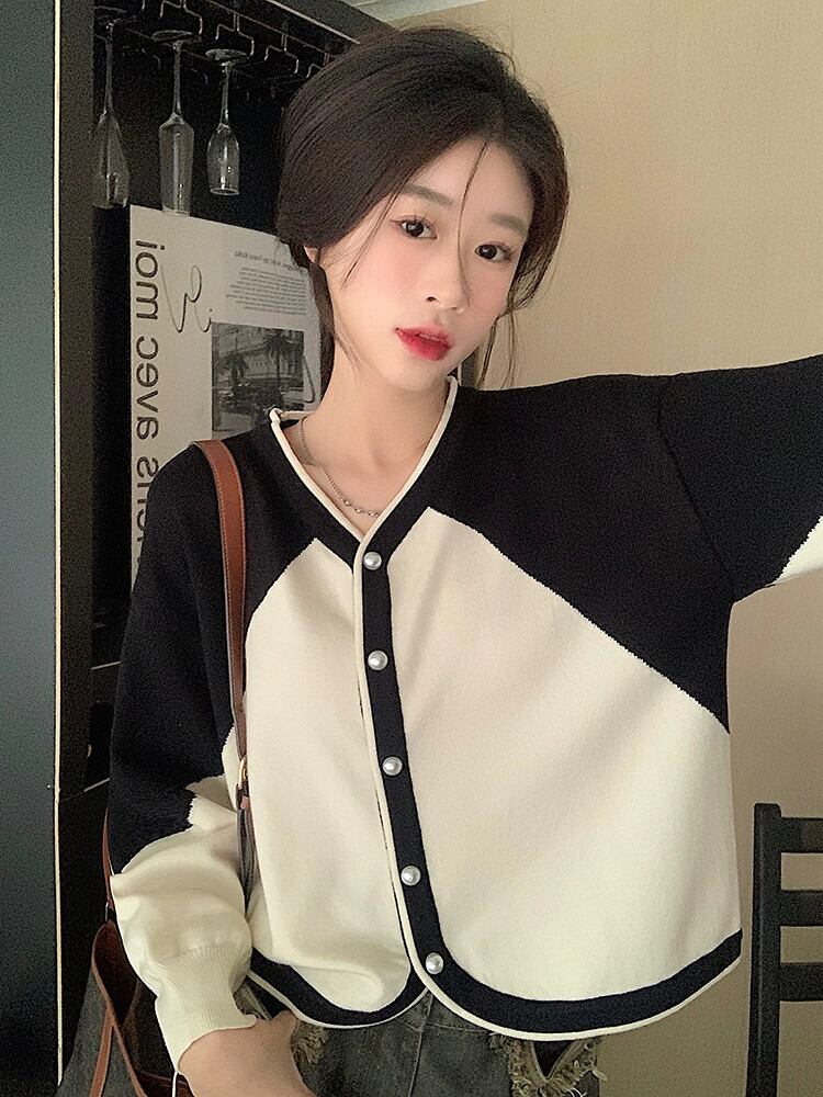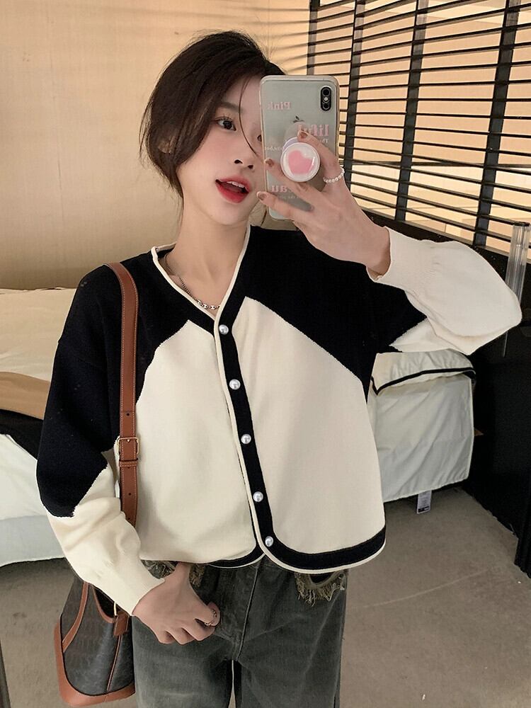 Vネックショートセータージャケットレディース、2023年秋冬新スタイル、ゆったりとしたアウターウェア、万能な長袖ニットカーディガン ロング オータム 秋物 ウィンター 冬物 7460098648807055 | framboise21