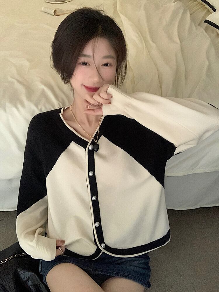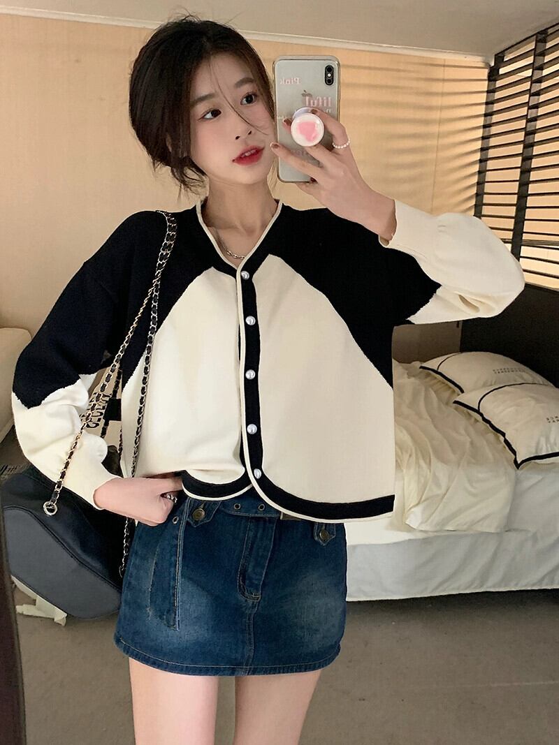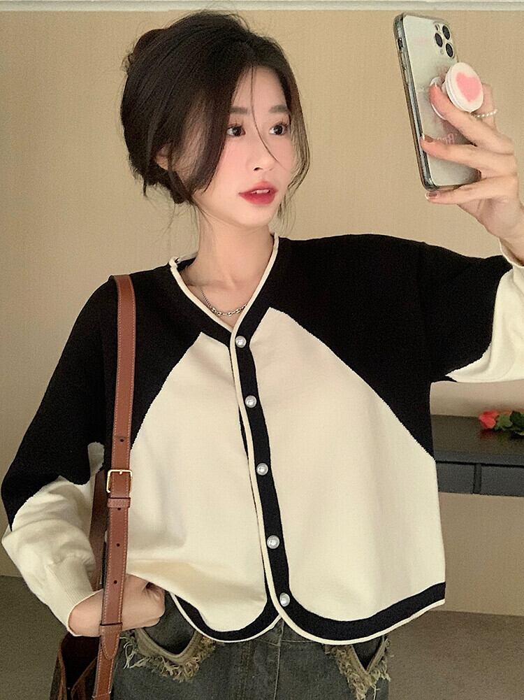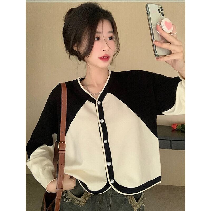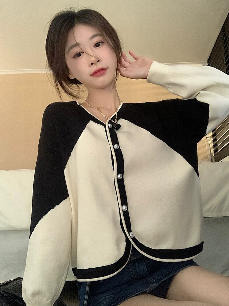 Vネックショートセータージャケットレディース、2023年秋冬新スタイル、ゆったりとしたアウターウェア、万能な長袖ニットカーディガン ロング オータム 秋物 ウィンター 冬物 7460098648807055 | framboise21