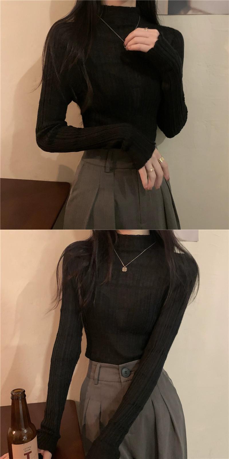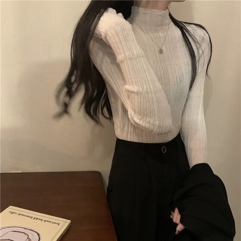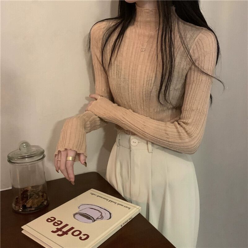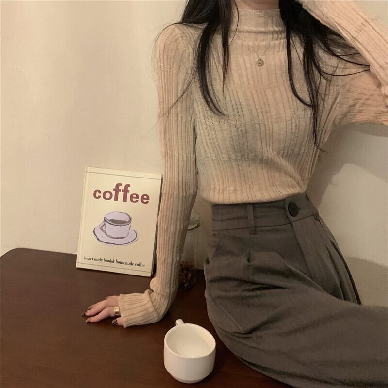 ハーフタートルネックニットボトミングシャツ 2023 新しい女性の秋冬フレンチスリムフィット長袖ミッドカラーセーターグレー ロング オータム 秋物 ウィンター 冬物 7460017609997311 | framboise21