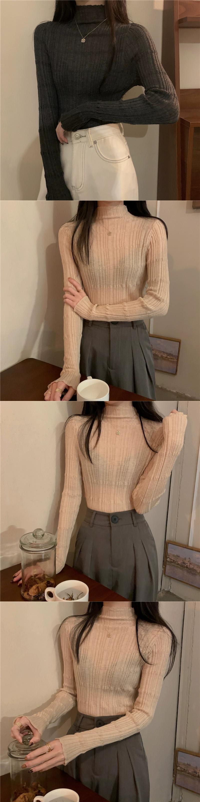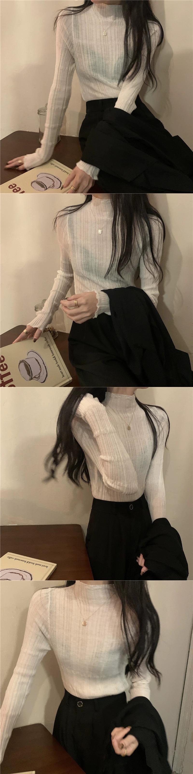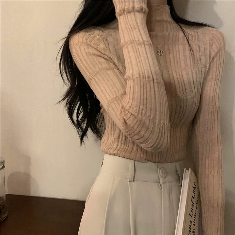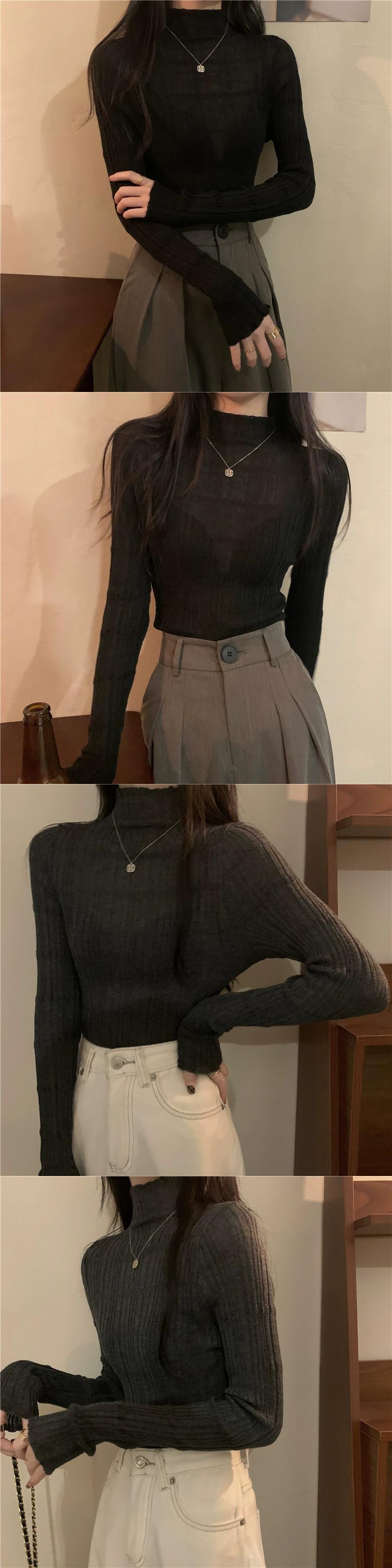 ハーフタートルネックニットボトミングシャツ 2023 新しい女性の秋冬フレンチスリムフィット長袖ミッドカラーセーターグレー ロング オータム 秋物 ウィンター 冬物 7460017609997311 | framboise21