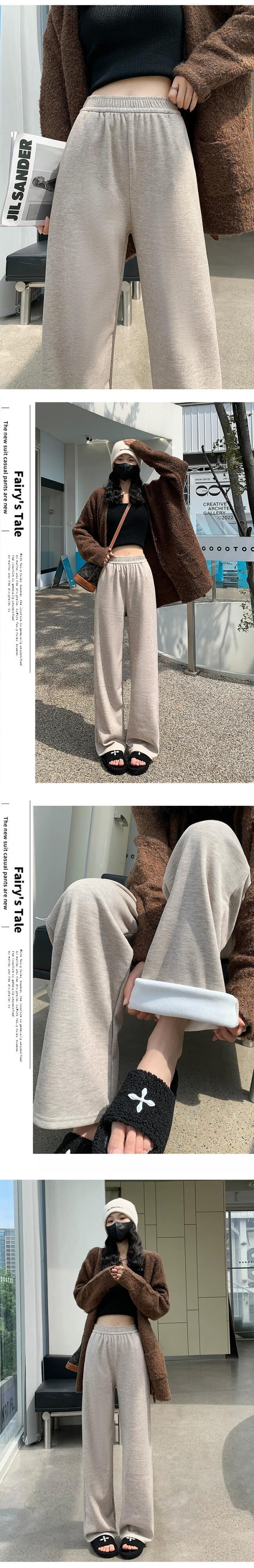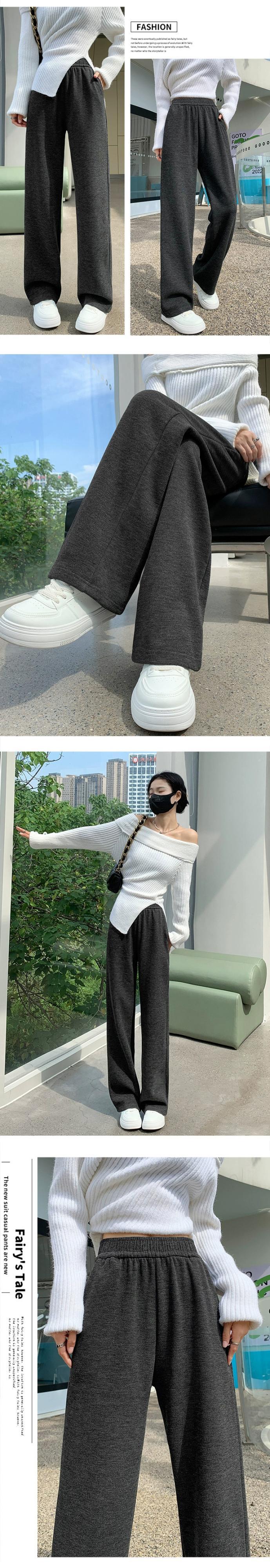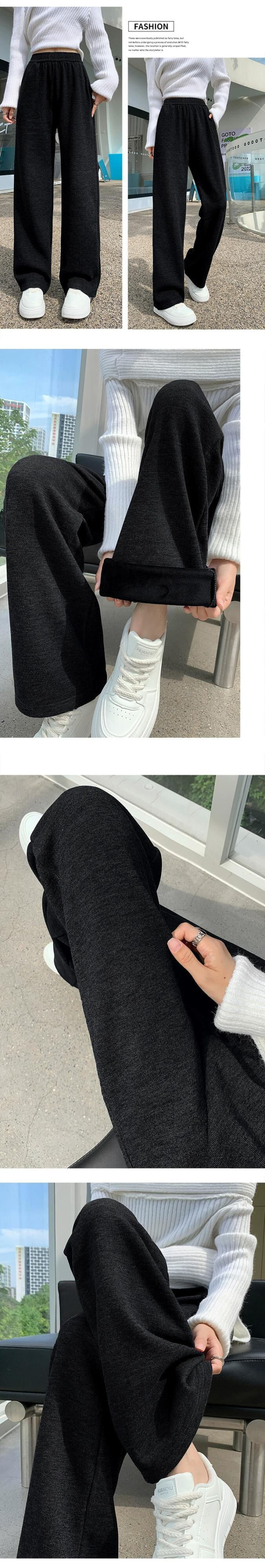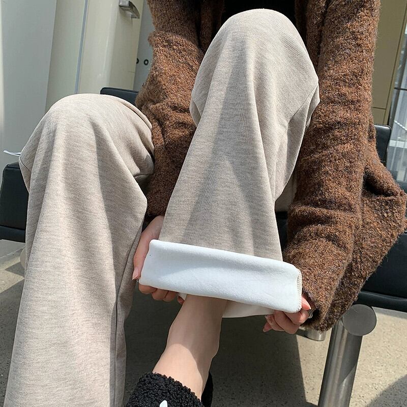 秋と冬の細いニットワイドレッグパンツの女性、ルーズ、ストレート、スリム、ハイウエスト、フロアレングス、ベルベットと厚みのあるカジュアルパンツ ウィンター 冬物 7460015434799147 | framboise21