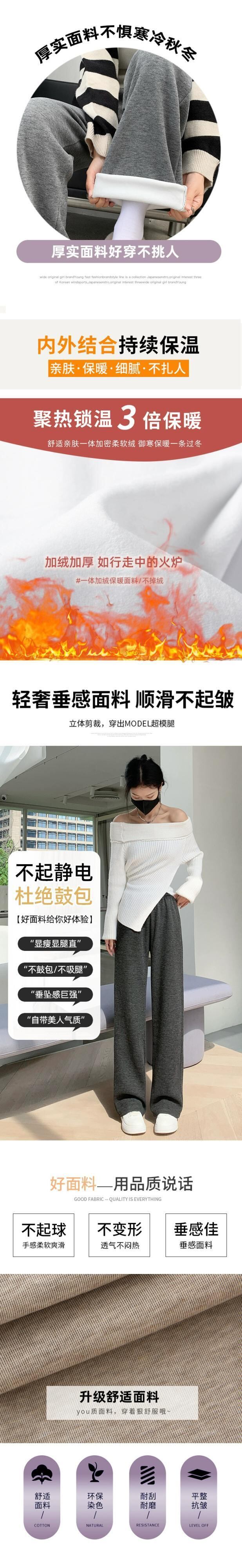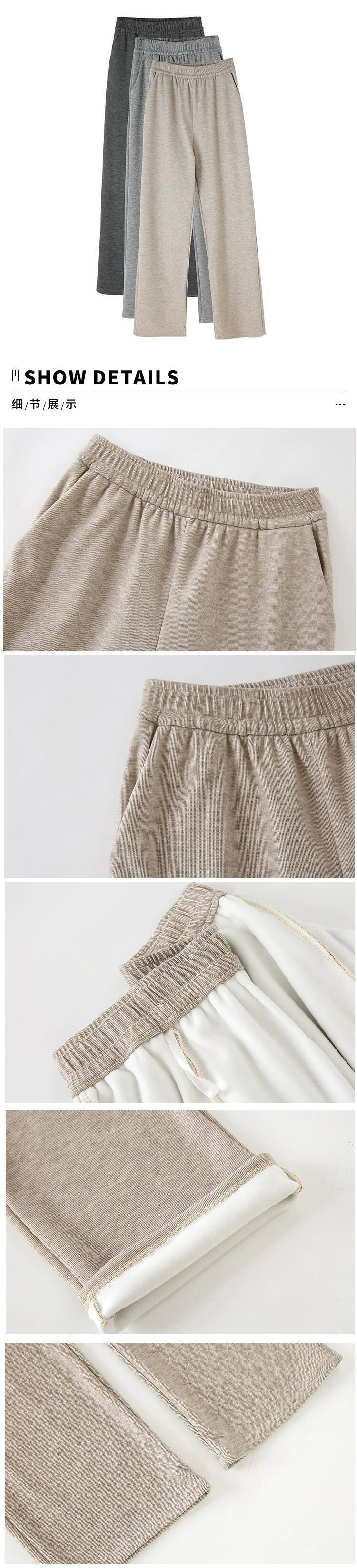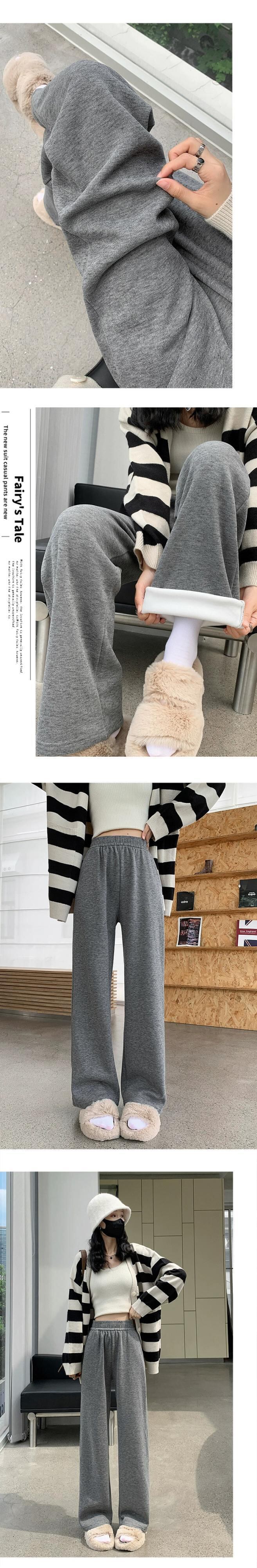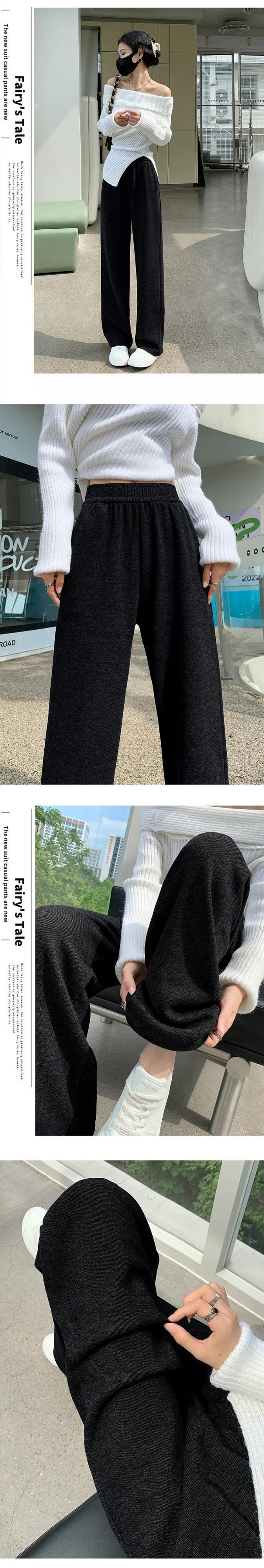 秋と冬の細いニットワイドレッグパンツの女性、ルーズ、ストレート、スリム、ハイウエスト、フロアレングス、ベルベットと厚みのあるカジュアルパンツ ウィンター 冬物 7460015434799147 | framboise21
