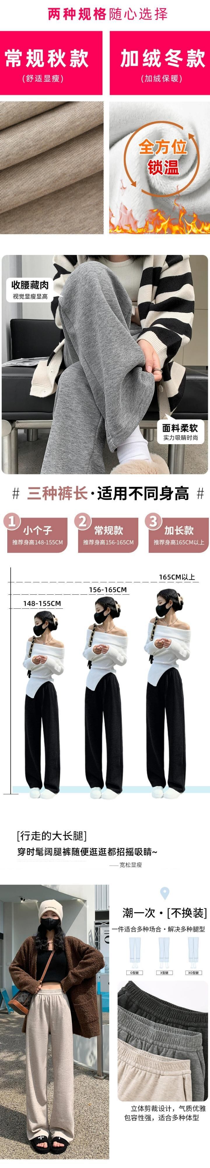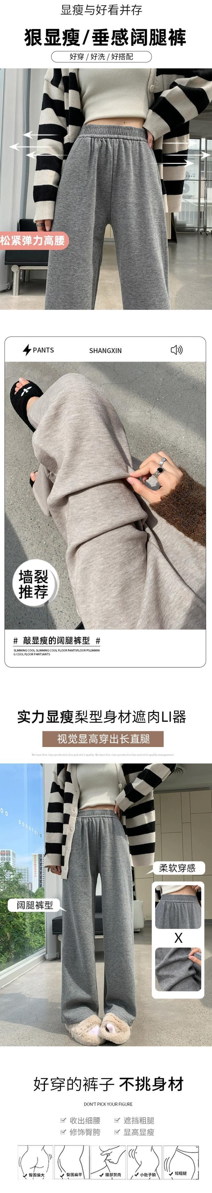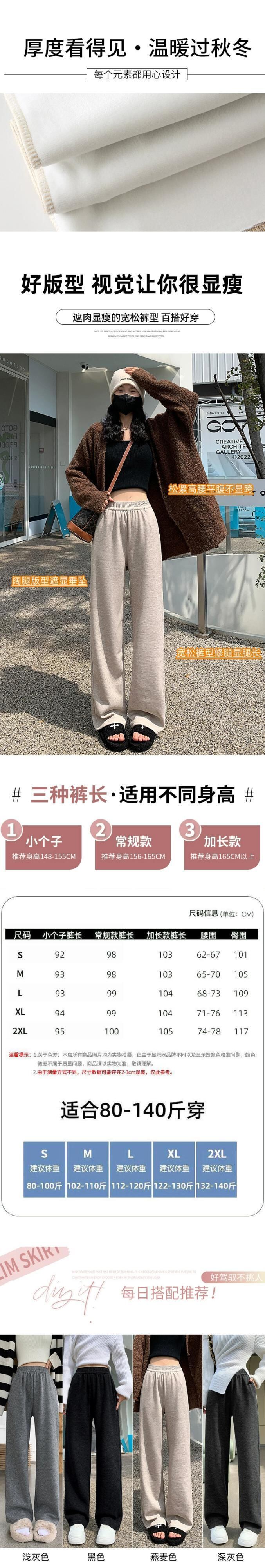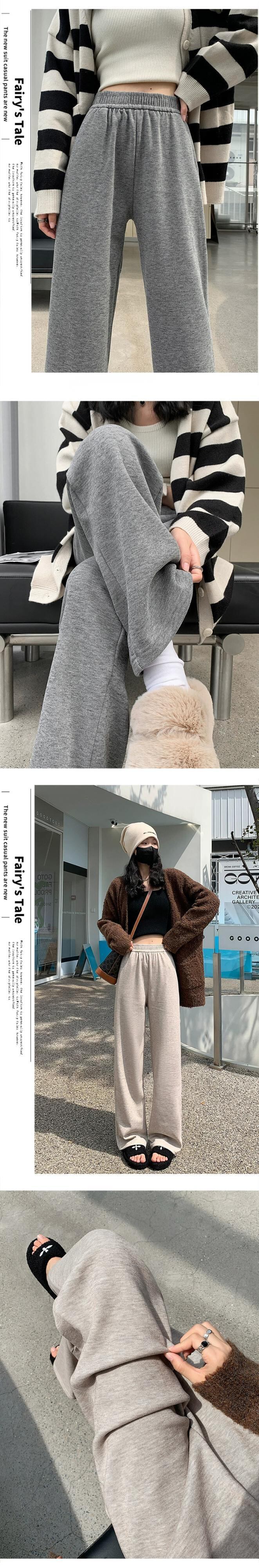 秋と冬の細いニットワイドレッグパンツの女性、ルーズ、ストレート、スリム、ハイウエスト、フロアレングス、ベルベットと厚みのあるカジュアルパンツ ウィンター 冬物 7460015434799147 | framboise21