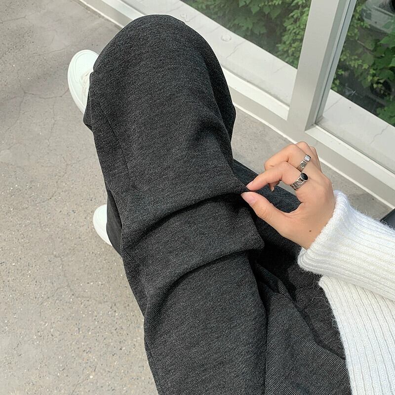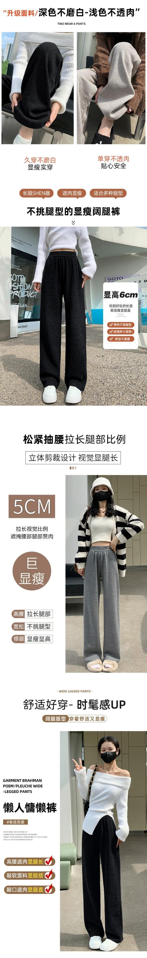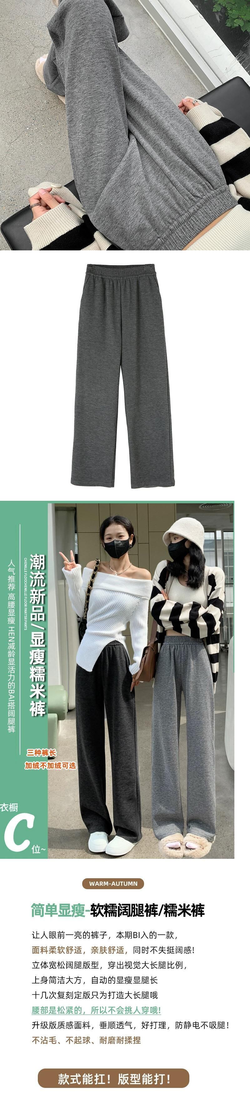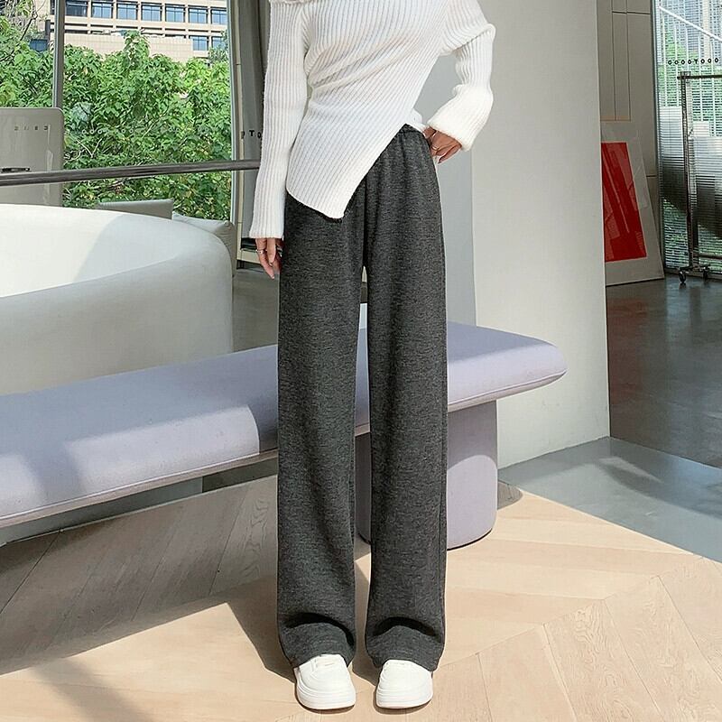 黒のニットワイドレッグパンツの女性、秋と冬のハイウエストカジュアルパンツ、怠惰なスタイルのルーズストレートレッグフロアレングスのもち米パンツ ブラック オータム 秋物 ウィンター 冬物 7460047547107823 | framboise21