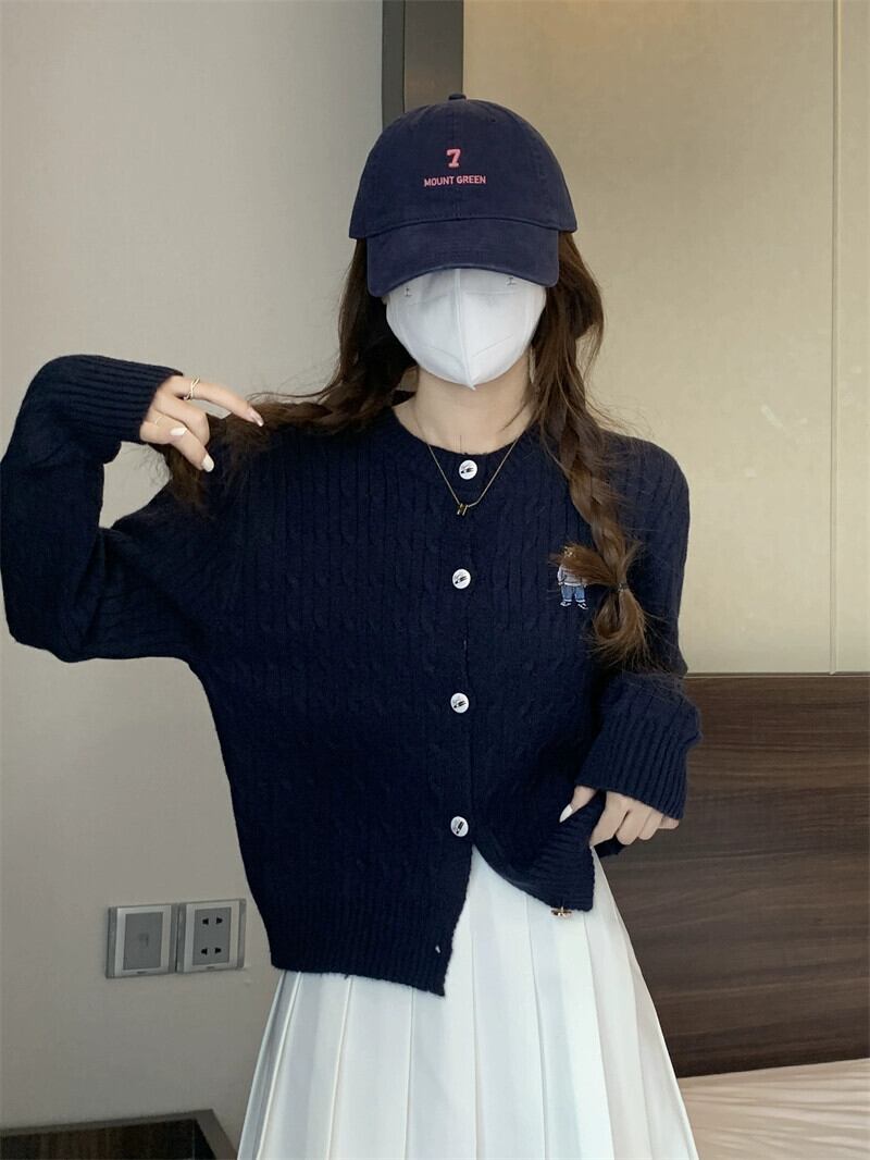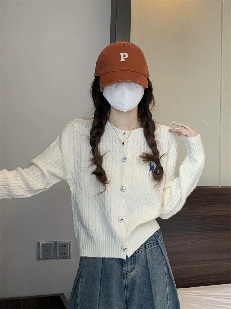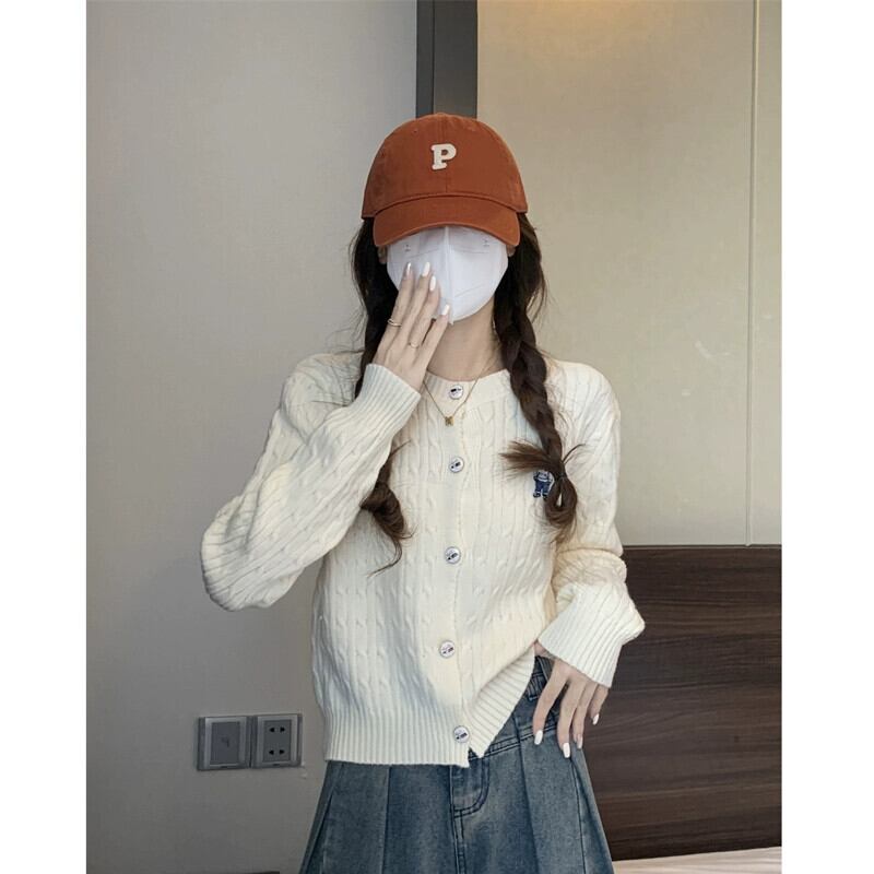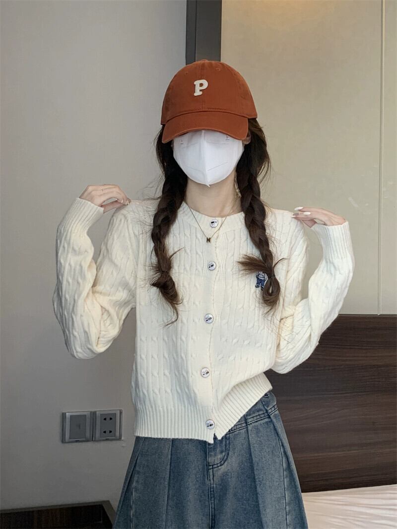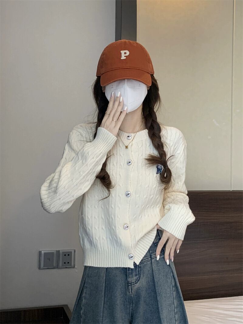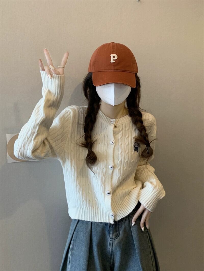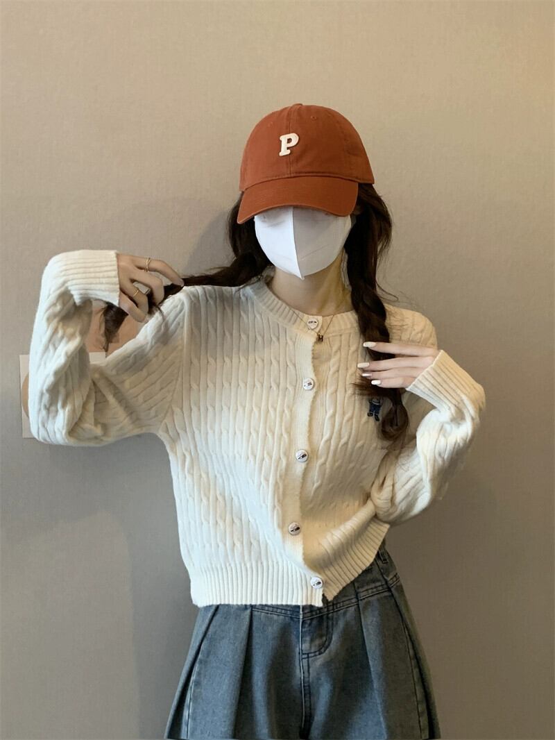 太い糸ツイストカーディガンセータージャケット女性小さな秋と冬スタイルルーズアウターショート長袖セーターアプリコット ロング オータム 秋物 ウィンター 冬物 7460049603562333 | framboise21