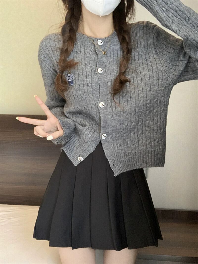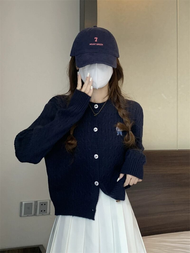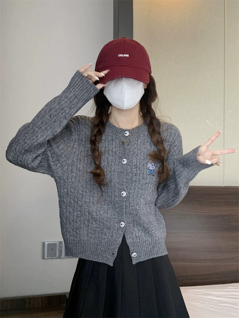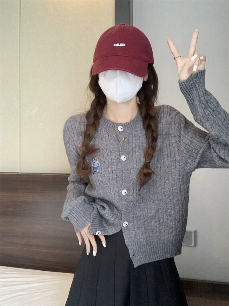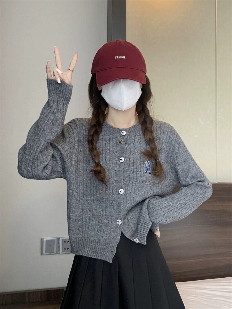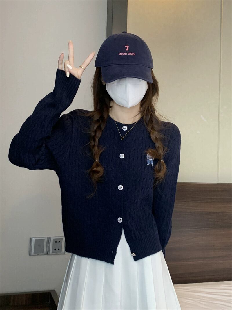 太い糸ツイストカーディガンセータージャケット女性小さな秋と冬スタイルルーズアウターショート長袖セーターアプリコット ロング オータム 秋物 ウィンター 冬物 7460049603562333 | framboise21