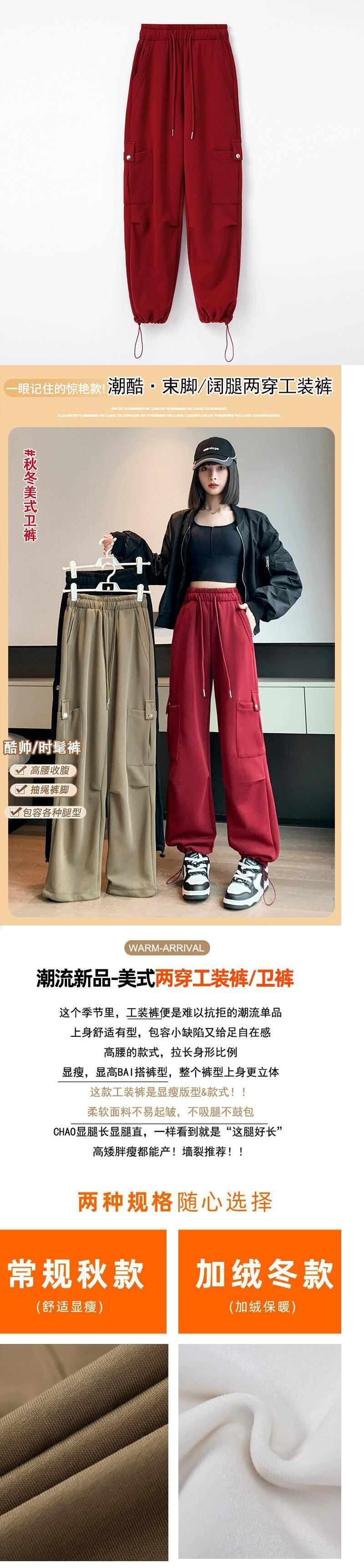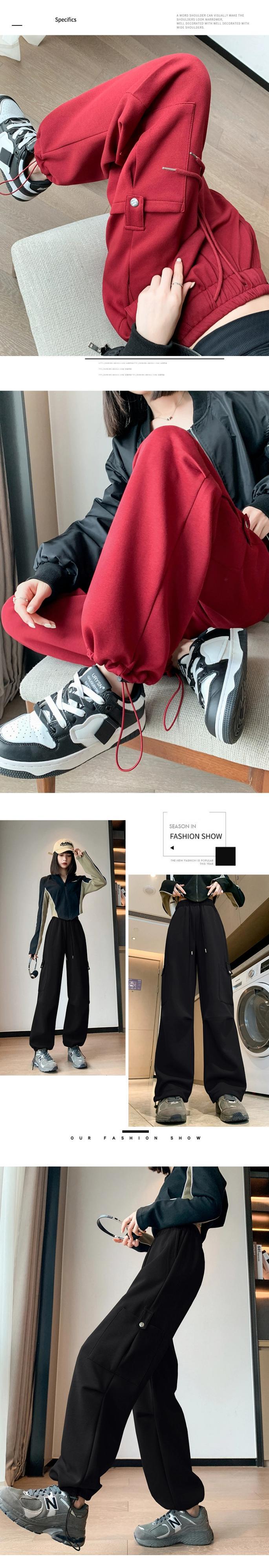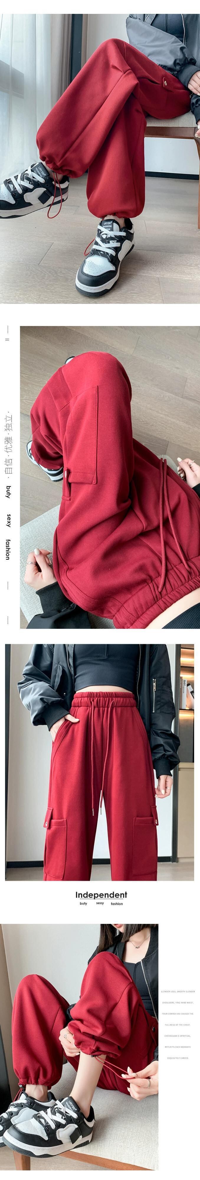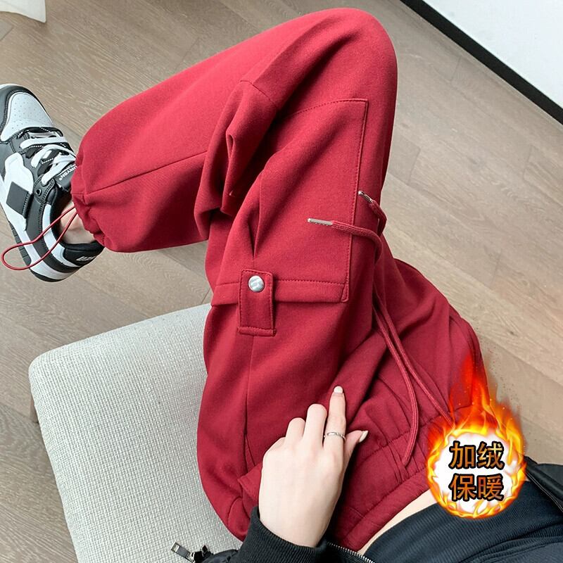 バーガンディストレートオーバーオールレディース、秋と冬のアメリカンスタイルベルベット肥厚パンツ、ルーズレッグタイハイウエストカジュアルスポーツパンツ オータム 秋物 ウィンター 冬物 7460031660285819 | framboise21