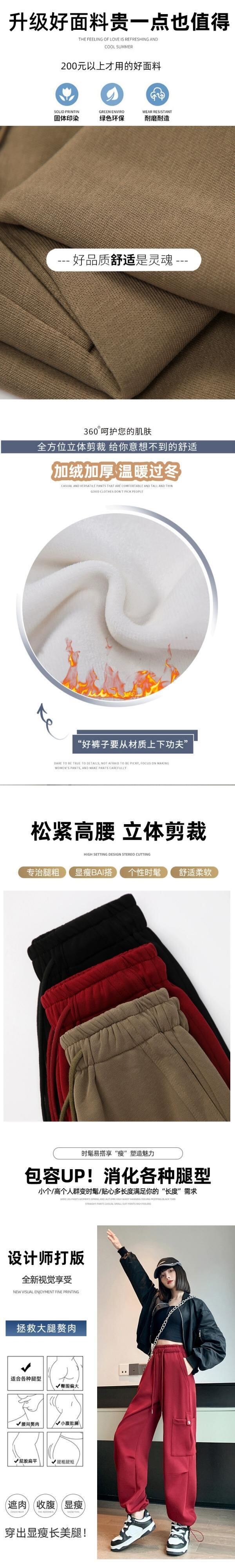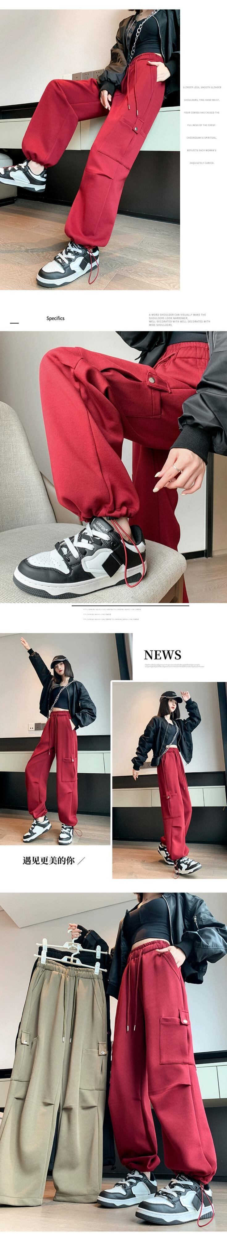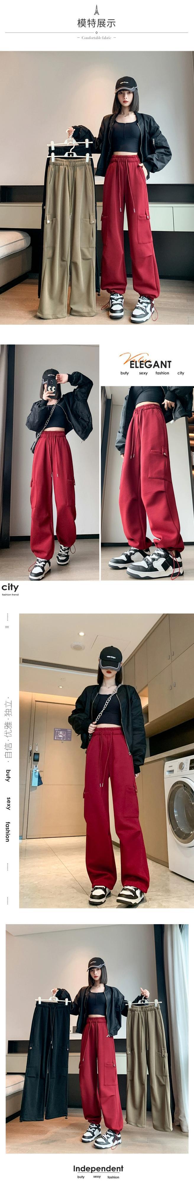 バーガンディストレートオーバーオールレディース、秋と冬のアメリカンスタイルベルベット肥厚パンツ、ルーズレッグタイハイウエストカジュアルスポーツパンツ オータム 秋物 ウィンター 冬物 7460031660285819 | framboise21