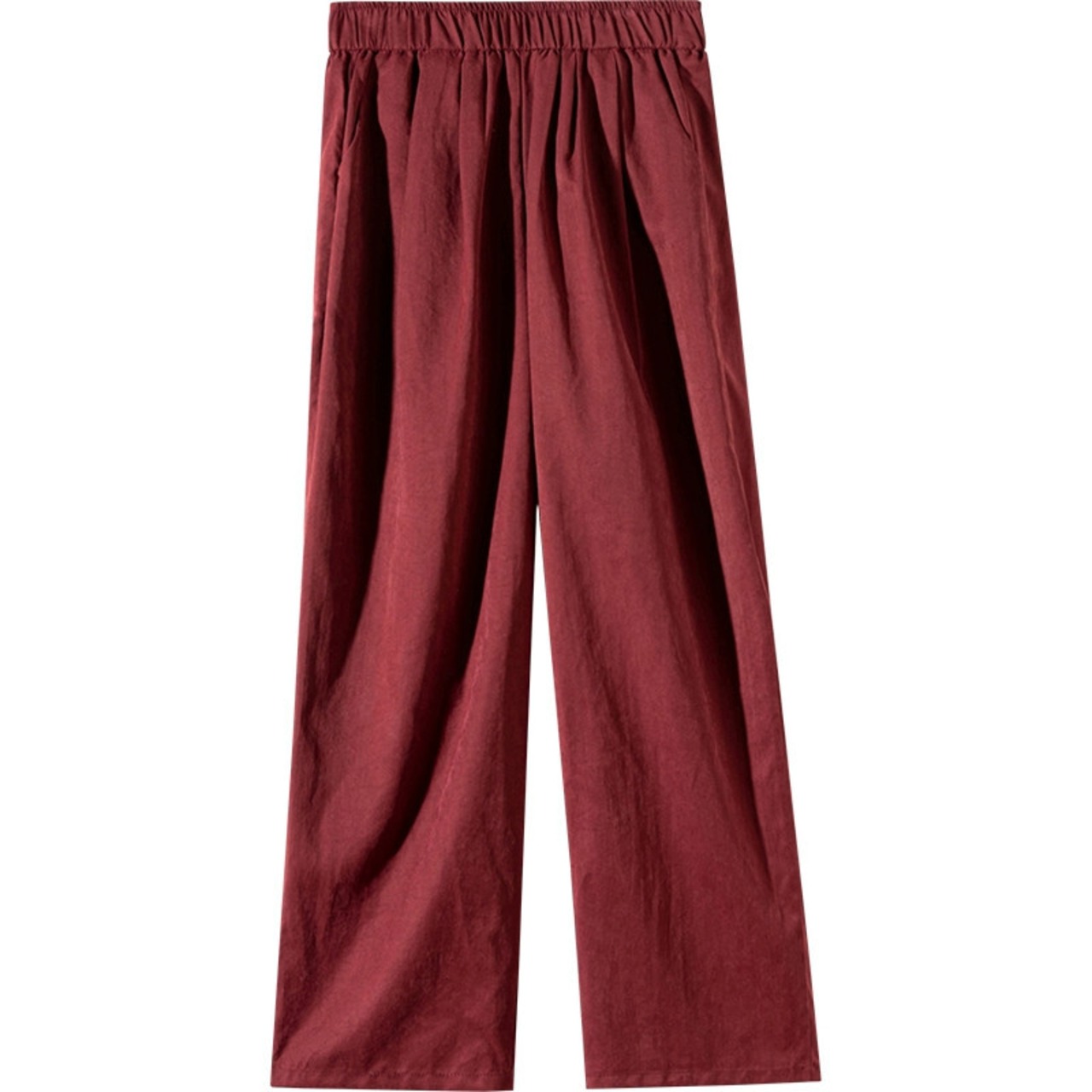 春と秋のレイジースタイルバーガンディナローワイドレッグパンツレディース、ハイウエスト、スリムでドレープ、多用途のルーズストレートカジュアルパンツ スプリング 春物 オータム 秋物 7460078783661451