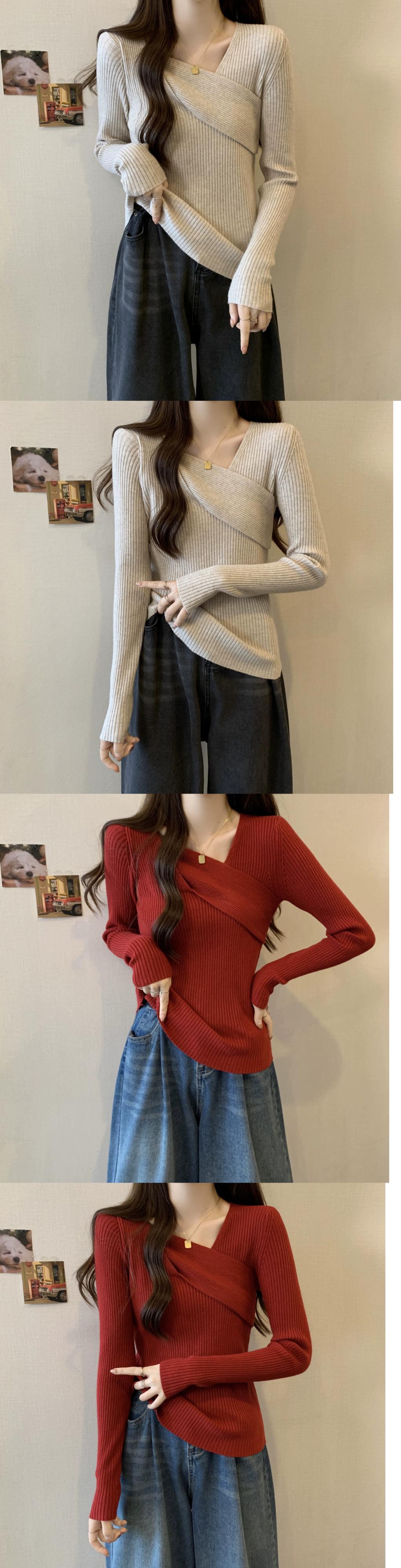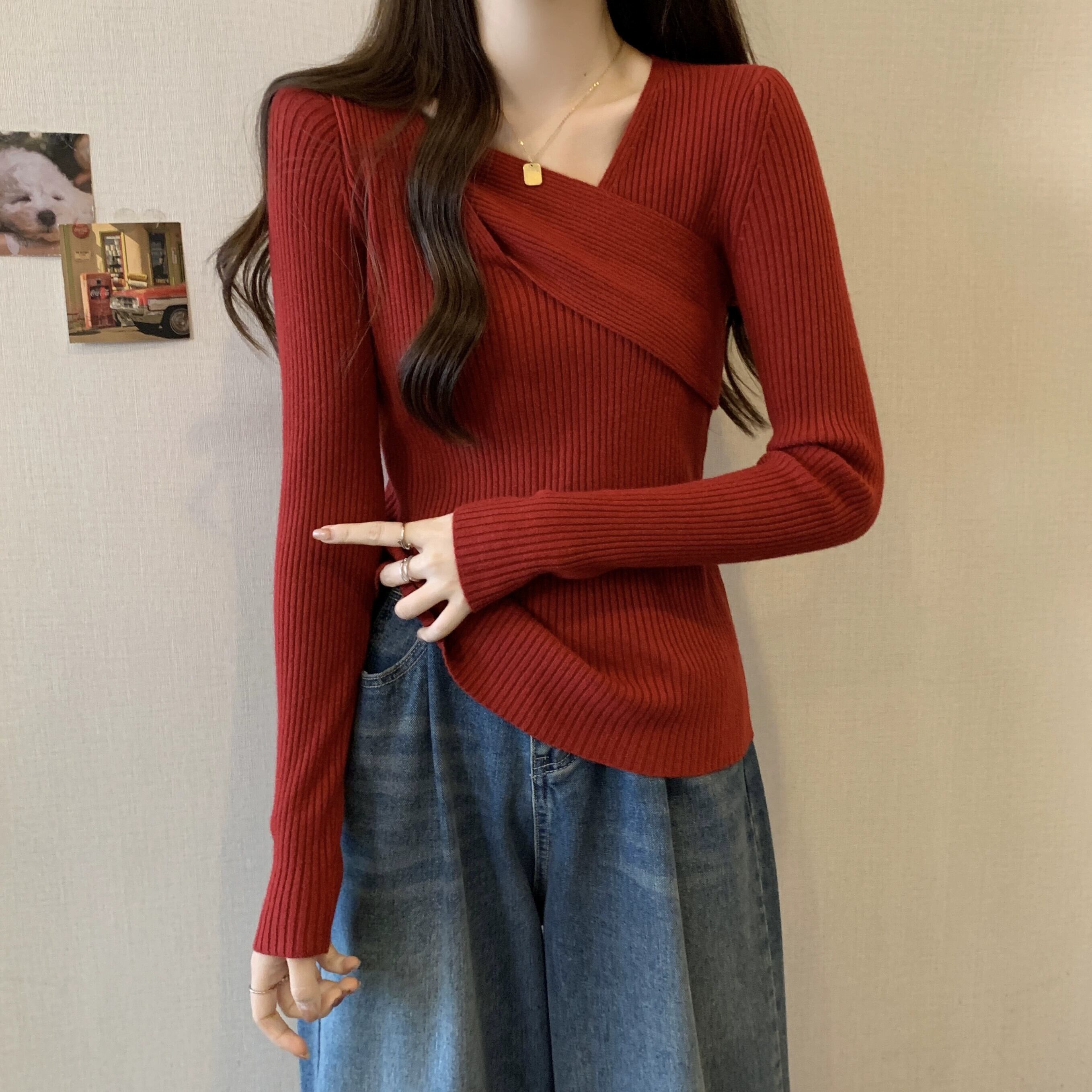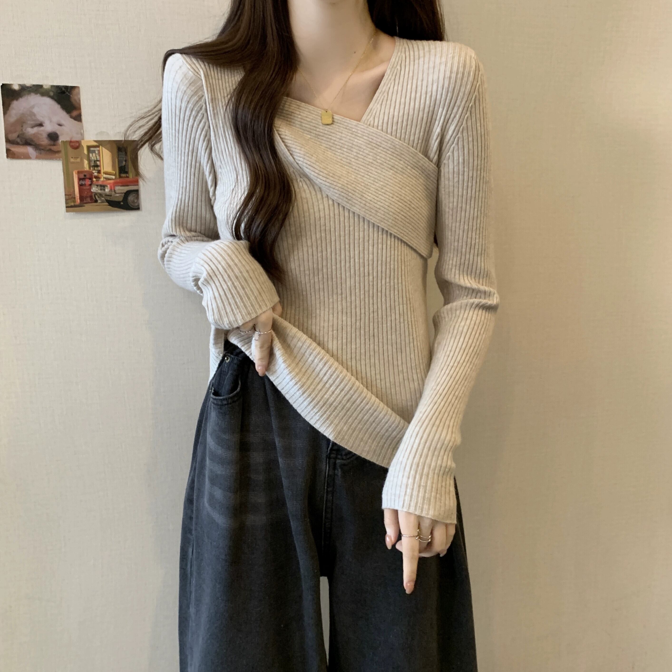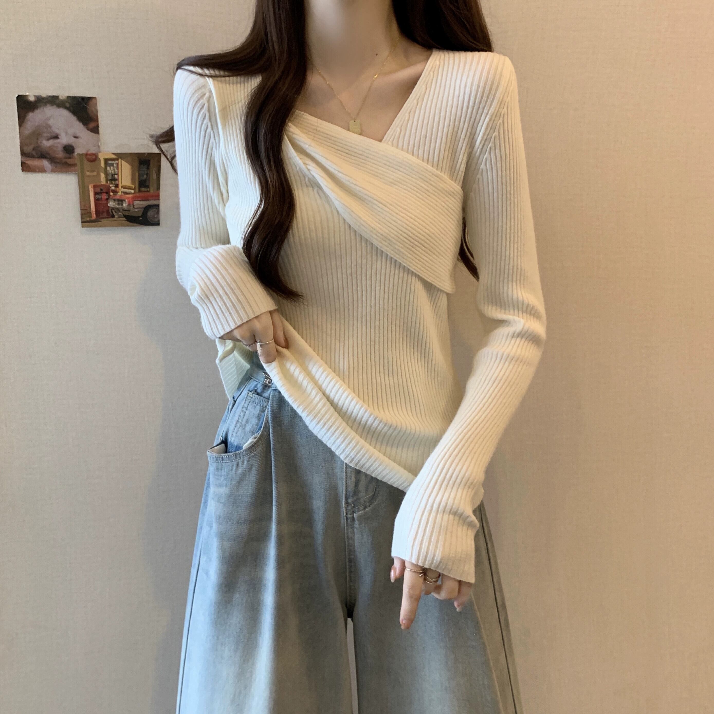白いニットボトムシャツ 2023 新しいレディース秋冬ファッショナブルでスタイリッシュなスリムフィットインナースラントカラー長袖セーター ロング ホワイト オータム 秋物 ウィンター 冬物 7460080864376087 | framboise21