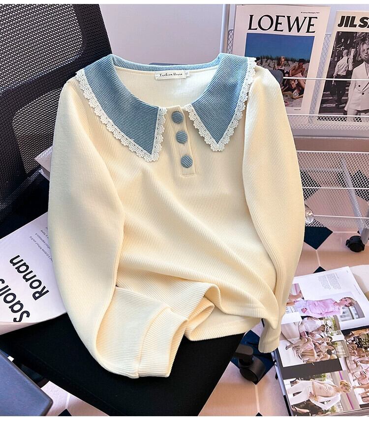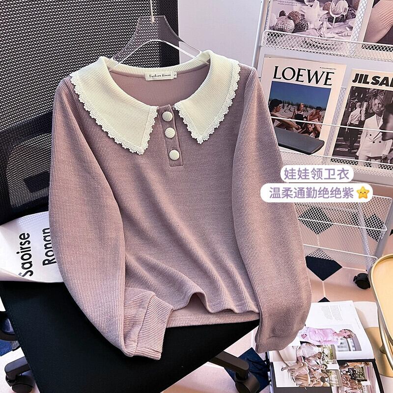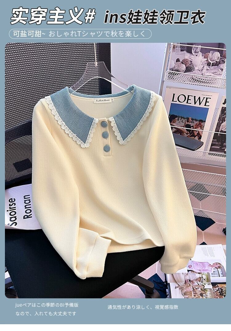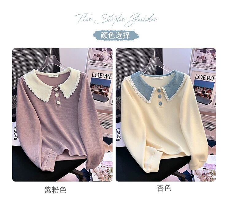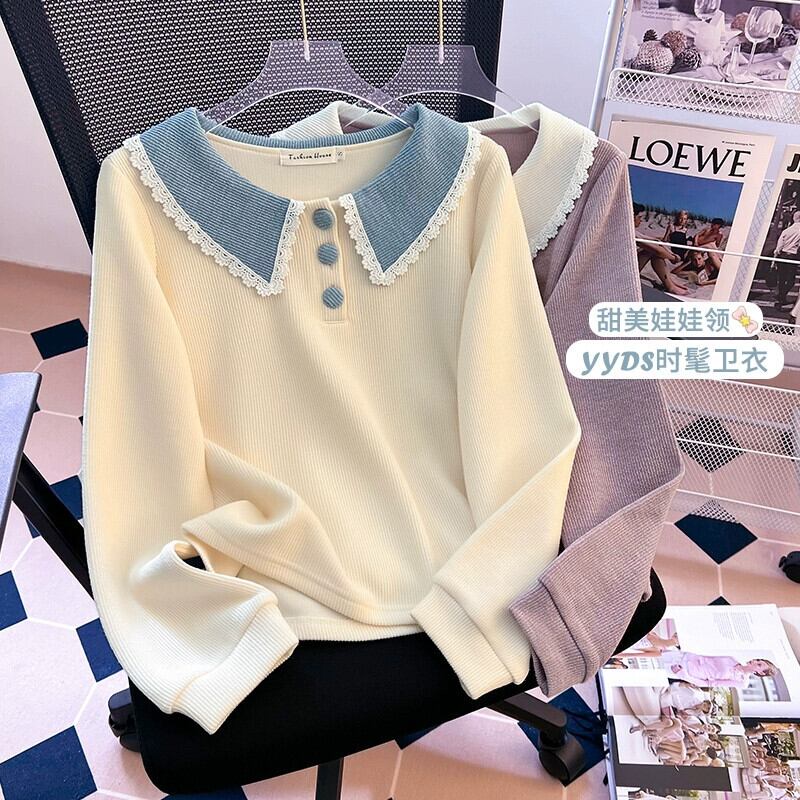コントラストカラーのプルオーバー人形襟スウェットシャツ女性の春と秋の 2023 新しいスタイルファッショナブルで年齢を軽減するデザイン長袖トップ ロング スプリング 春物 オータム 秋物 7460077874584354 | framboise21