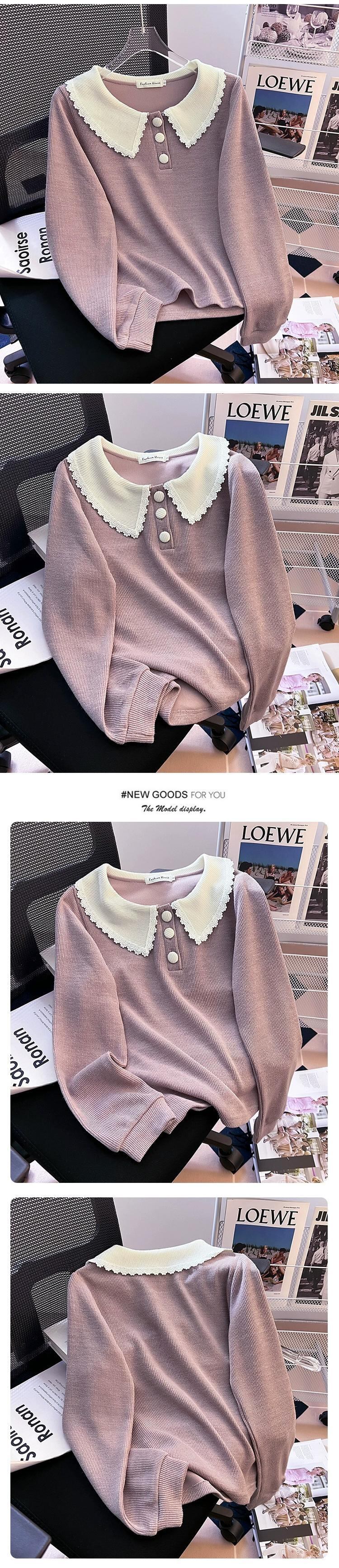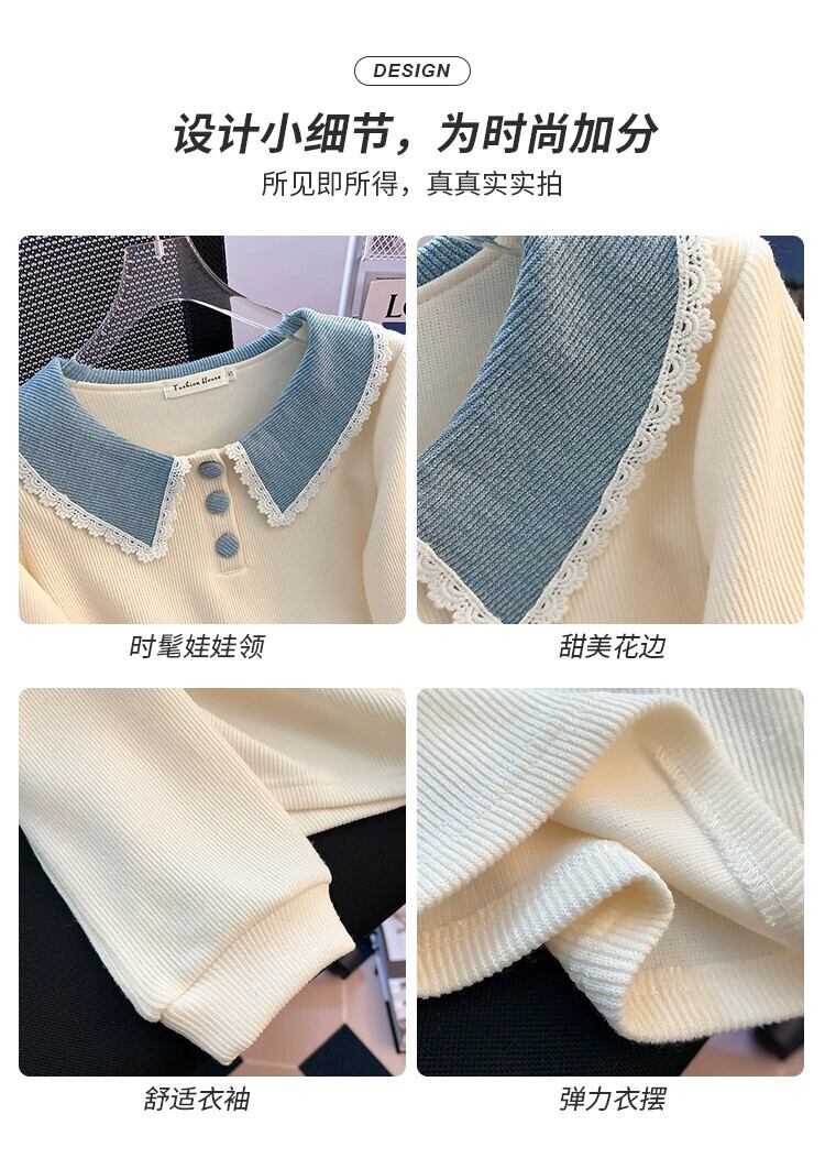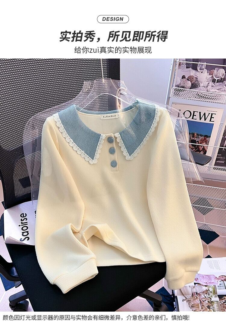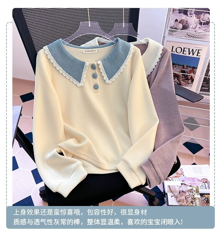 コントラストカラーのプルオーバー人形襟スウェットシャツ女性の春と秋の 2023 新しいスタイルファッショナブルで年齢を軽減するデザイン長袖トップ ロング スプリング 春物 オータム 秋物 7460077874584354 | framboise21