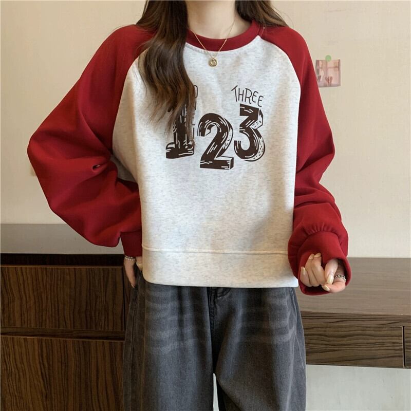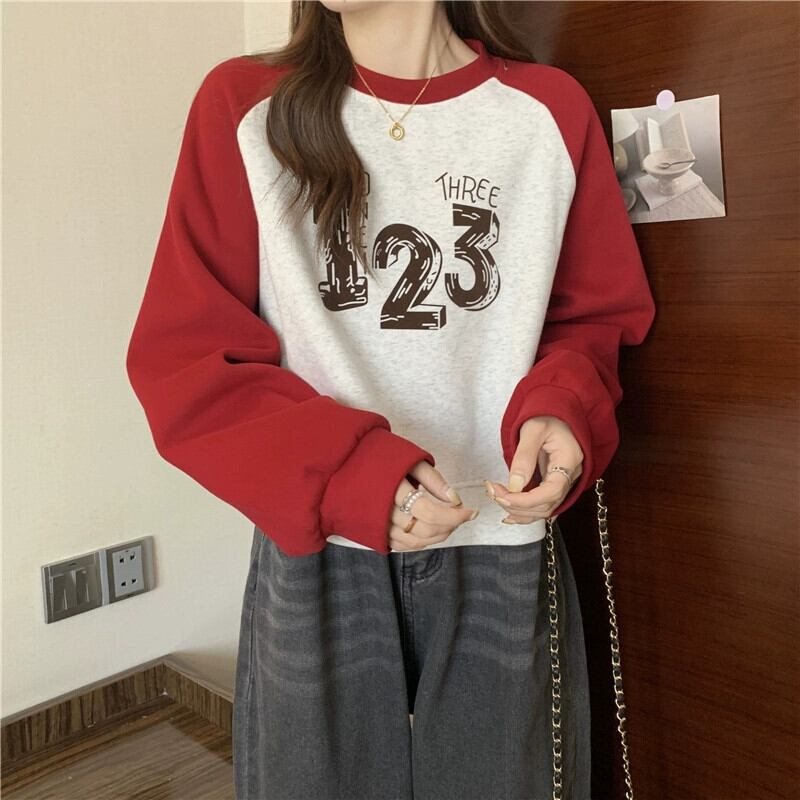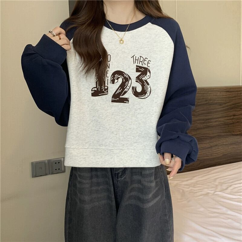 アメリカンショートラグラン長袖スウェットシャツの女性の春と秋2023新しいスタイルのルーズデザインプリントトップ ロング スプリング 春物 オータム 秋物 7460051494688948 | framboise21