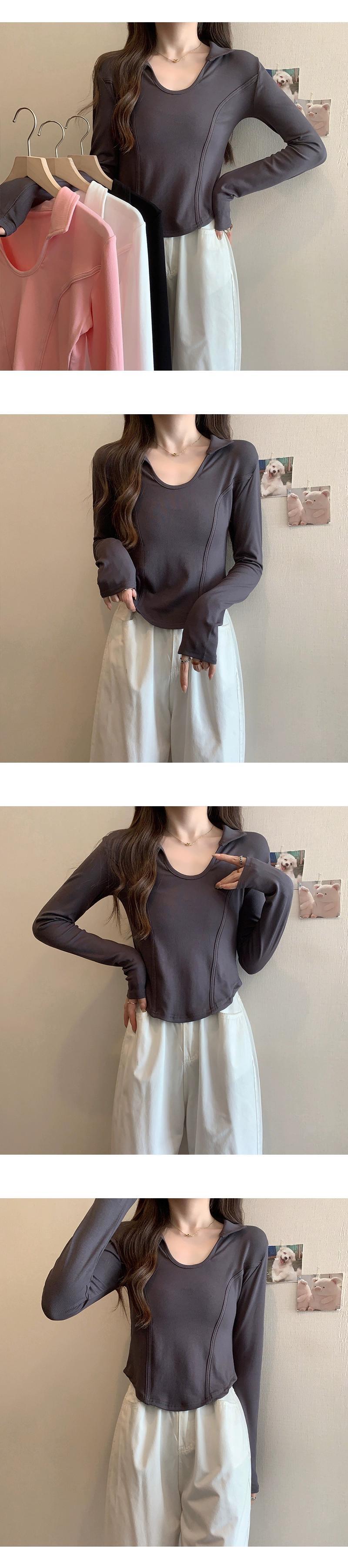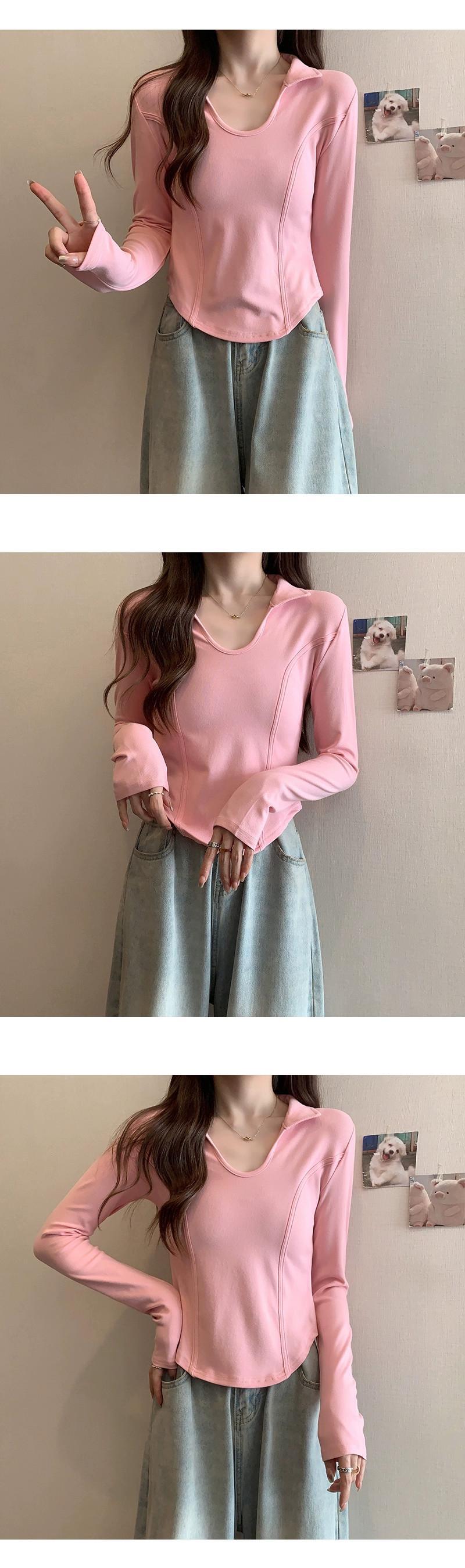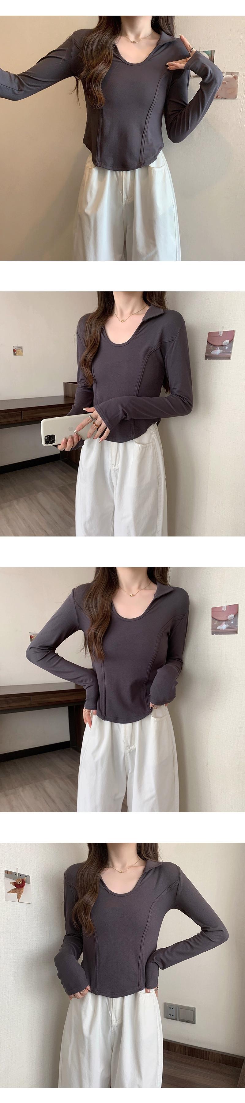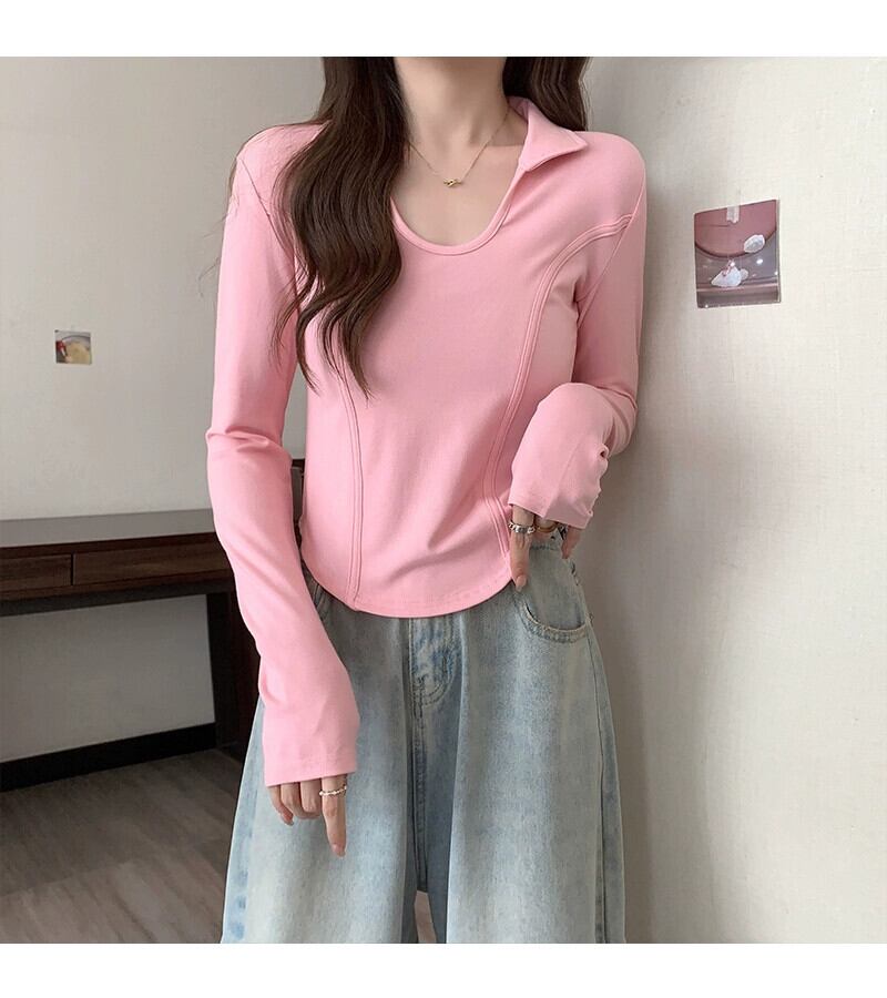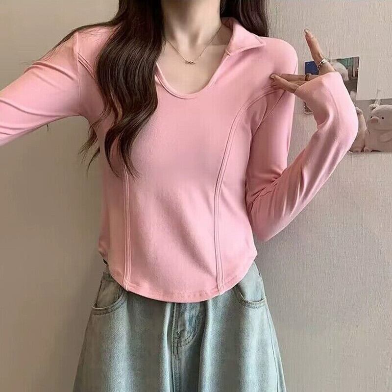 ピュアコットンポロカラー長袖 tシャツ女性の春と秋 2023 新しいファッションと eign スタイル不規則なショートフィッシュボーントップ ロング スプリング 春物 オータム 秋物 7460098289216688 | framboise21