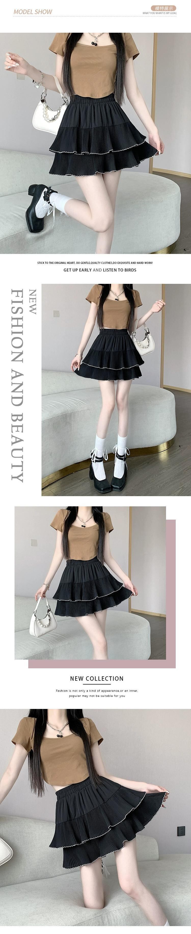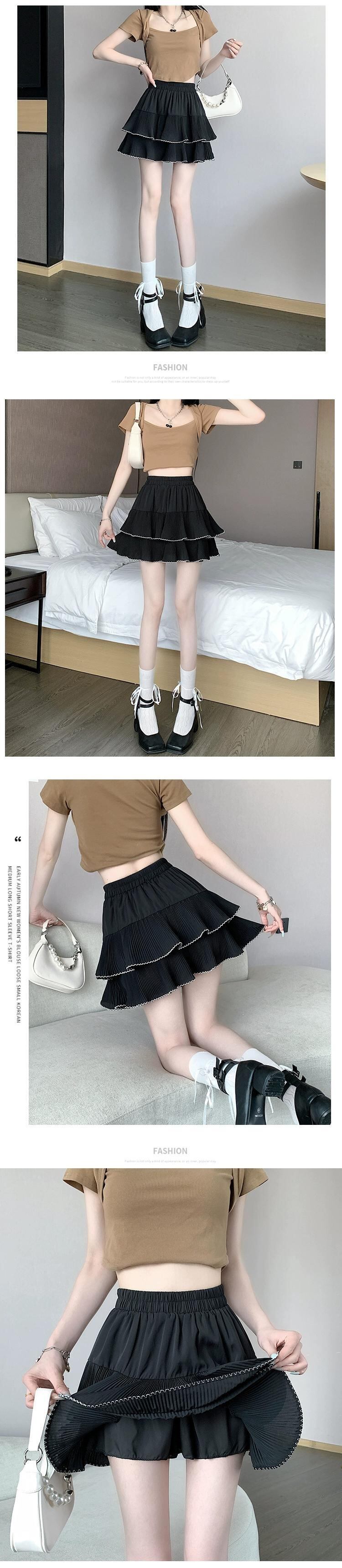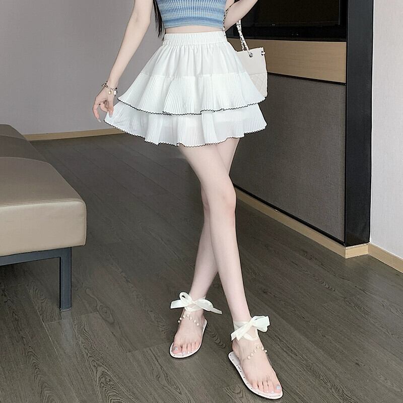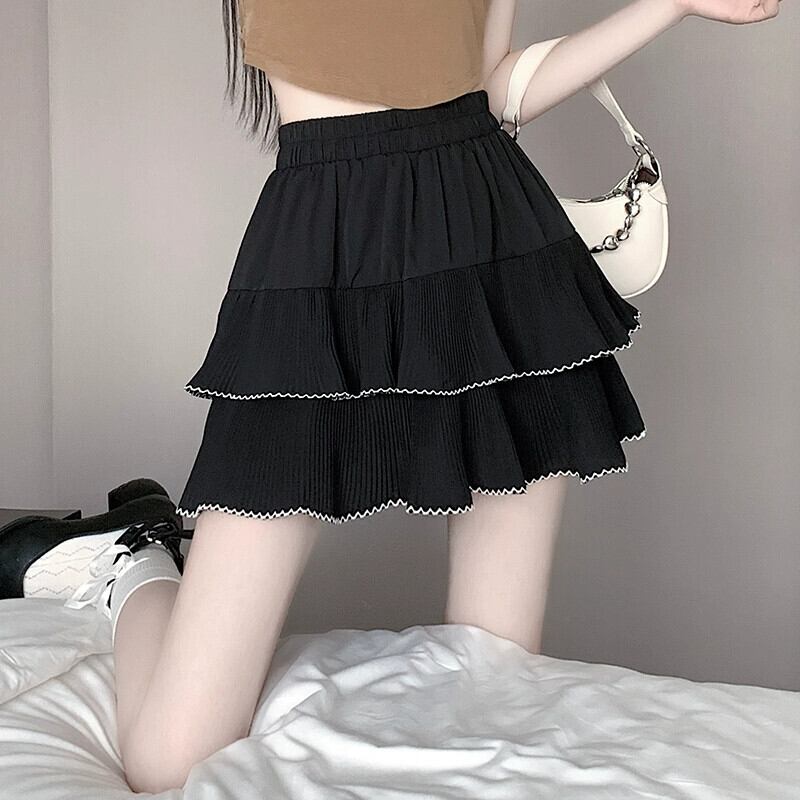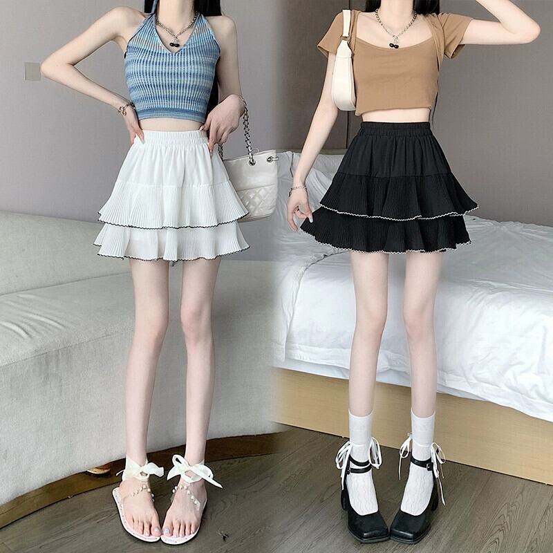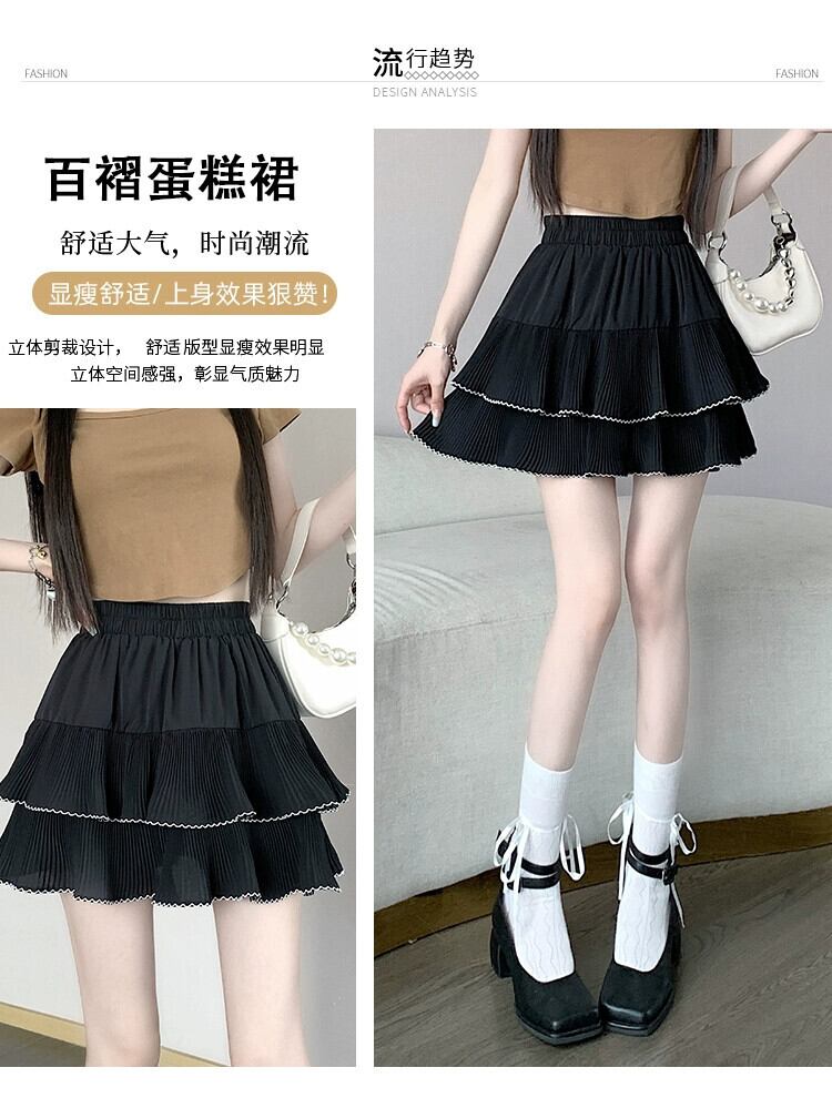 ふわふわケーキスカート夏の女性の 2023 新しいスリムハイウエスト A ラインスカート露出防止黒プリーツスカート ブラック サマー 夏物 Aライン 7460010139118308 | framboise21