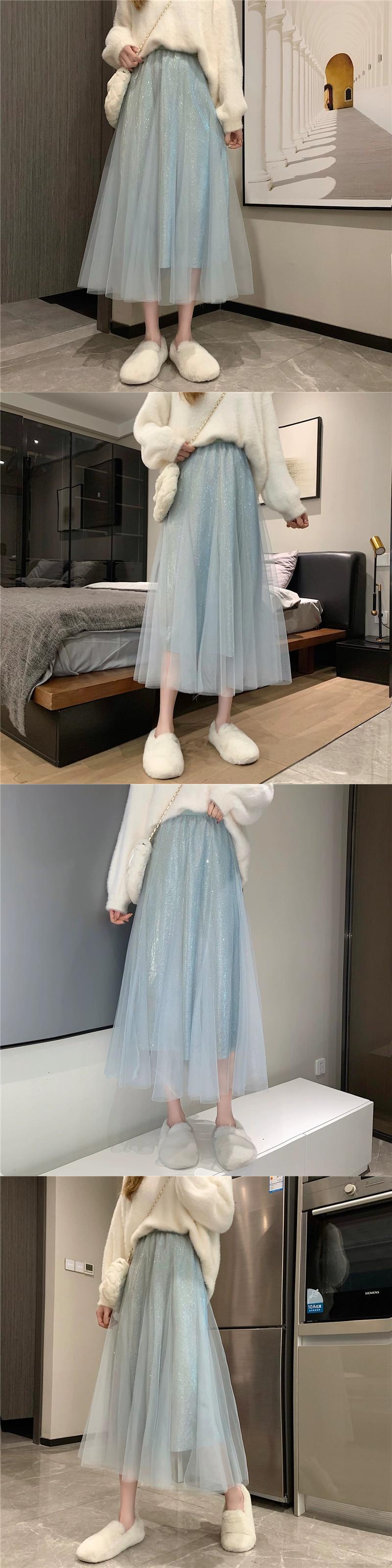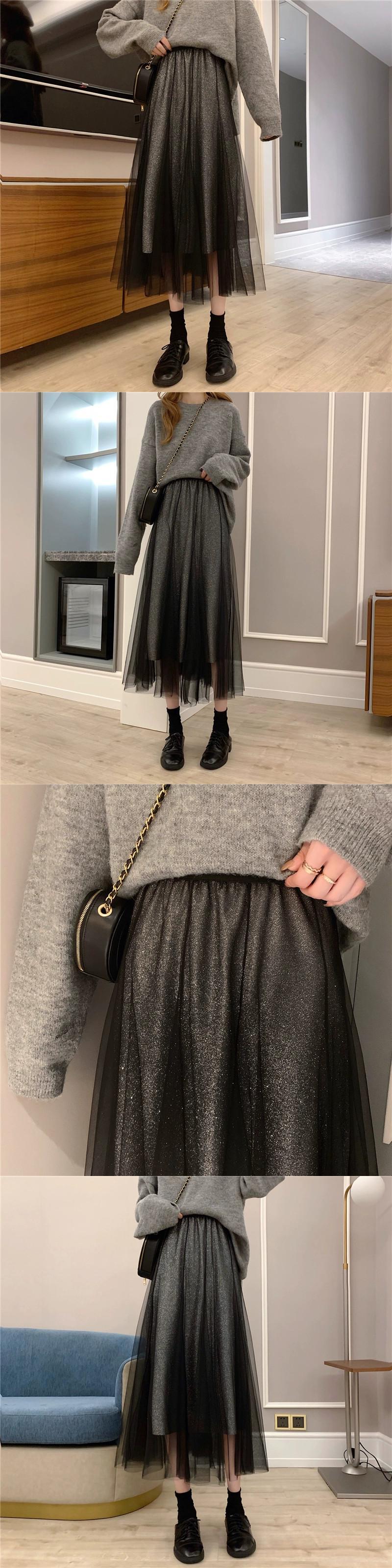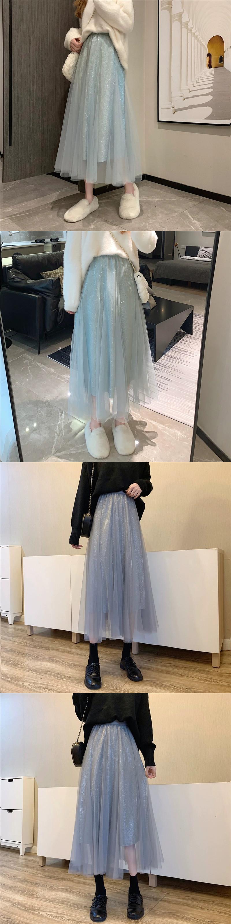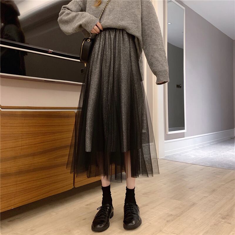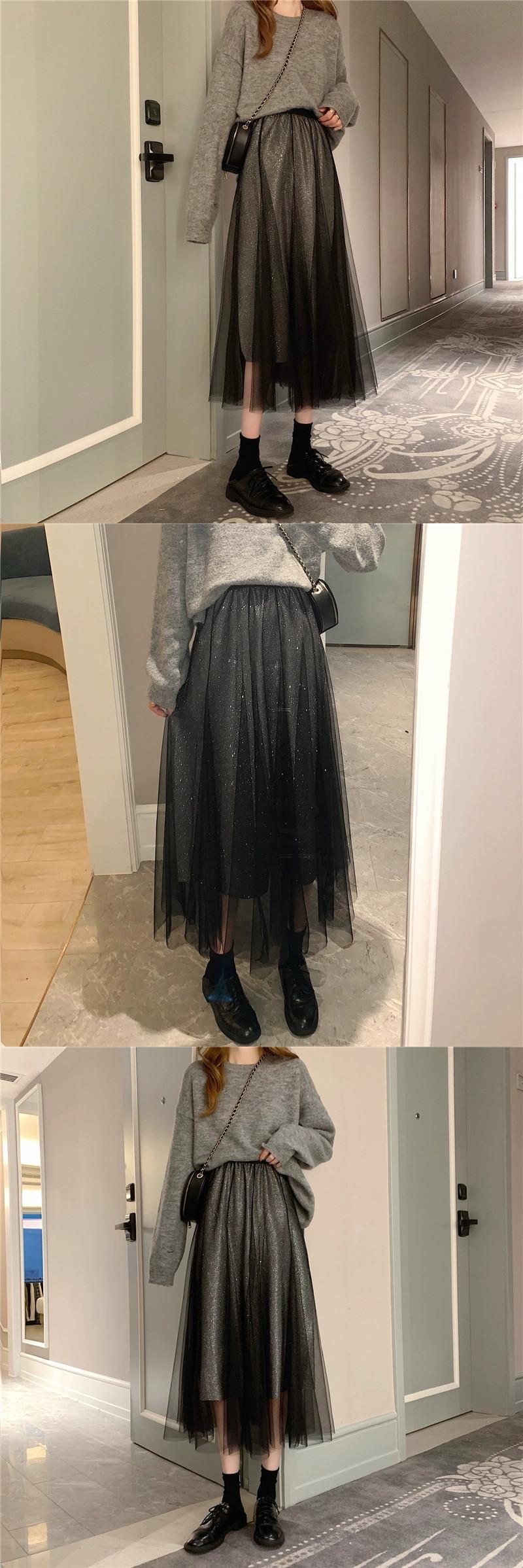 グリッターメッシュスカートレディース、春と秋のハイウエストAラインスカート、ミッドレングスの冬のセータースカート、ガーゼスカート スプリング 春物 オータム 秋物 ウィンター 冬物 7460035703126779 | framboise21