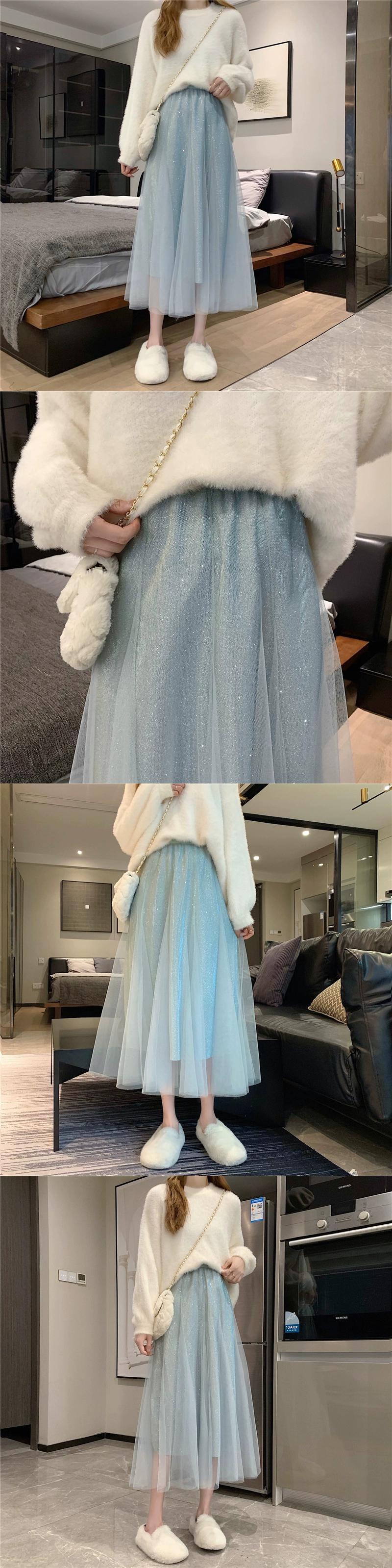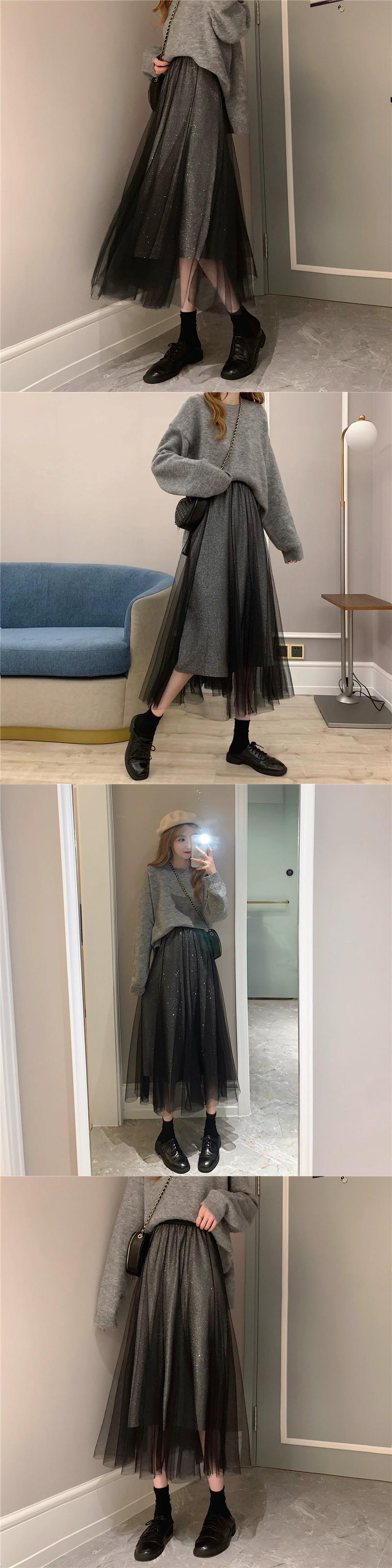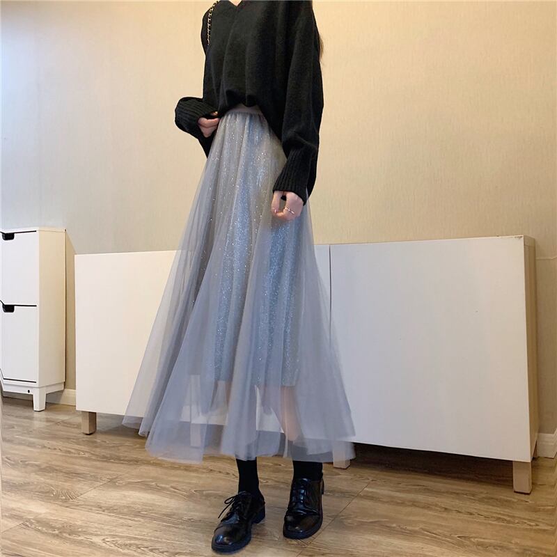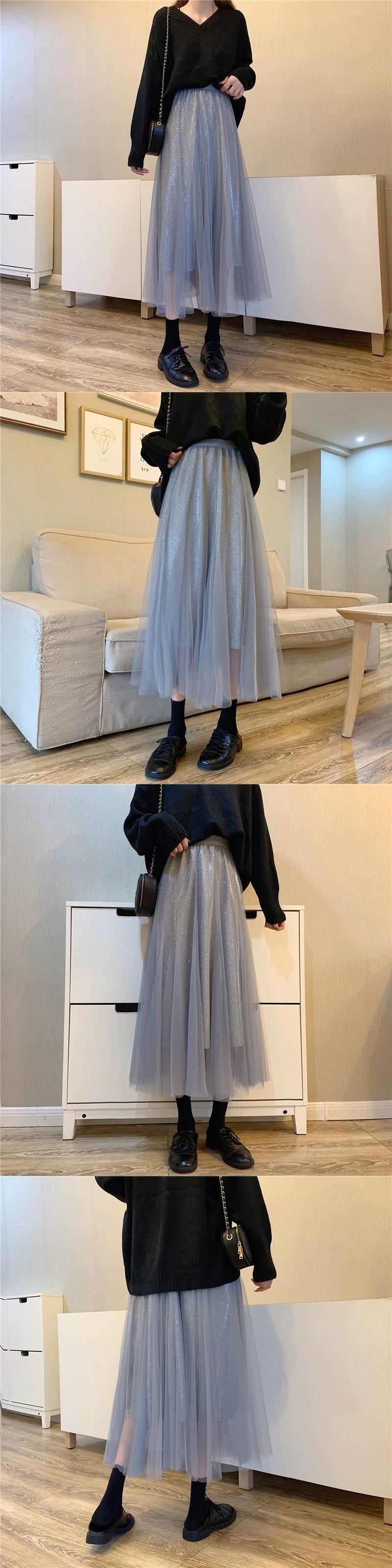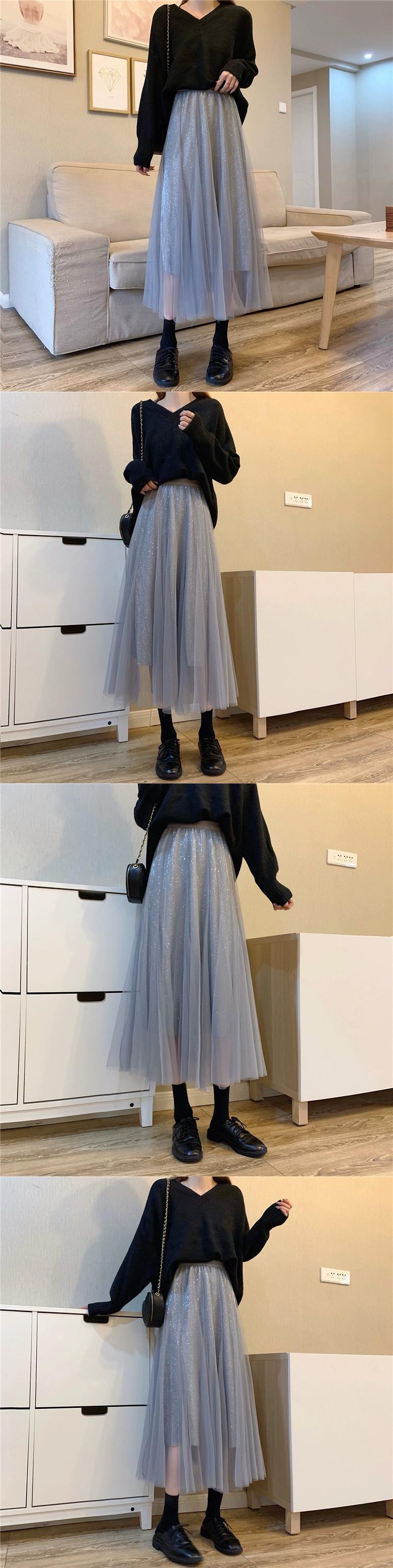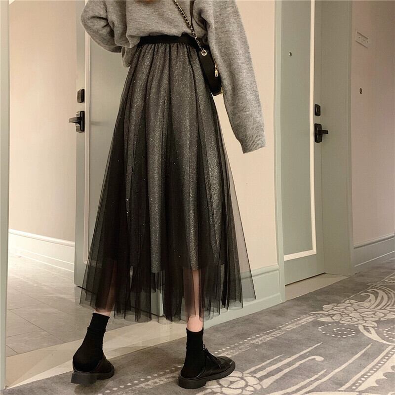 グリッターメッシュスカートレディース、春と秋のハイウエストAラインスカート、ミッドレングスの冬のセータースカート、ガーゼスカート スプリング 春物 オータム 秋物 ウィンター 冬物 7460035703126779 | framboise21