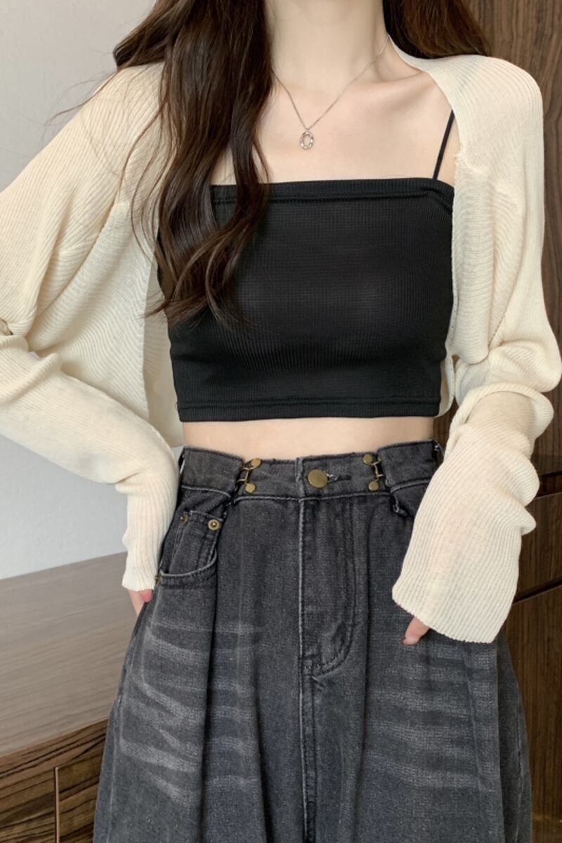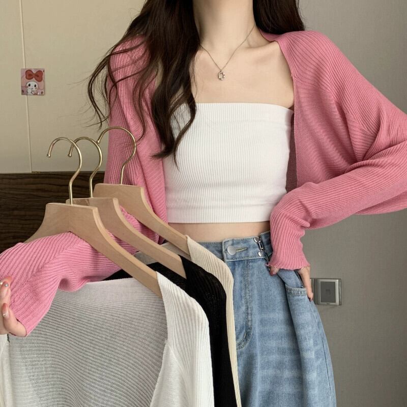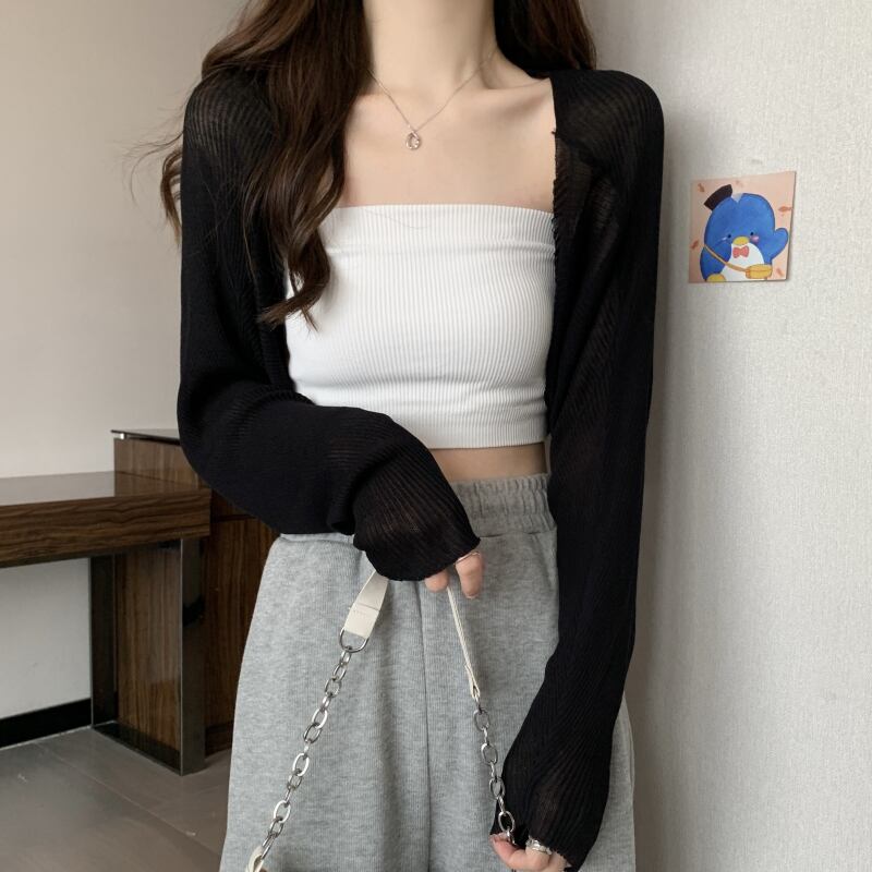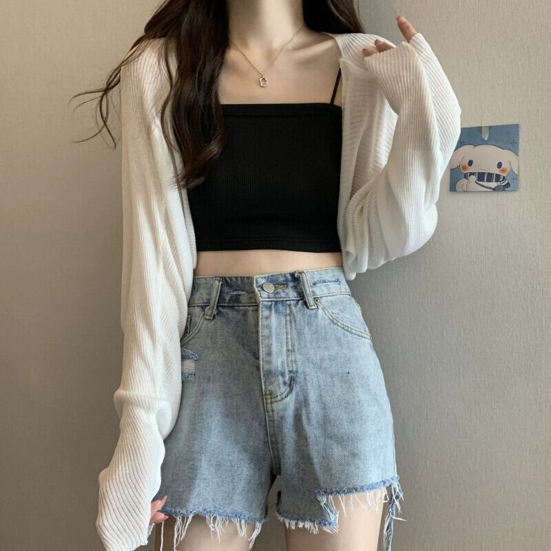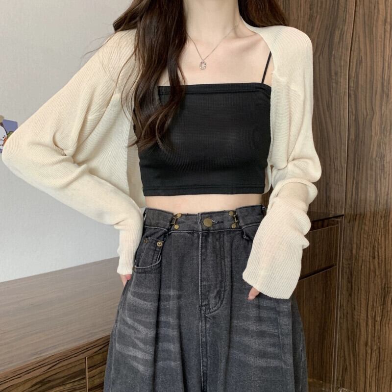 ショール小さなチョッキブラウス女性の夏のアイスシルク日焼け止めカーディガンとサスペンダースカートと薄いショート長袖トップ ロング サマー 夏物 7460015204309186 | framboise21