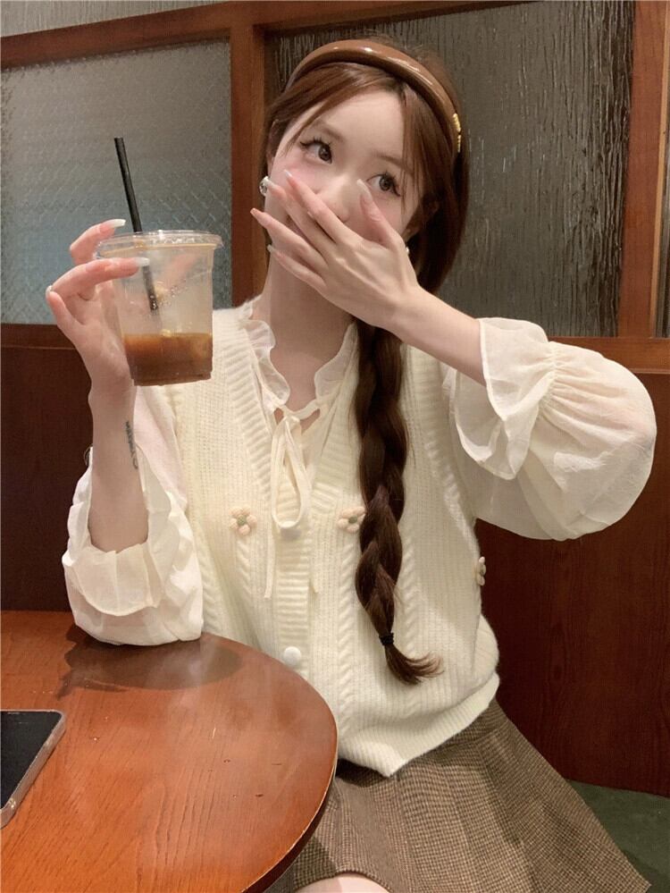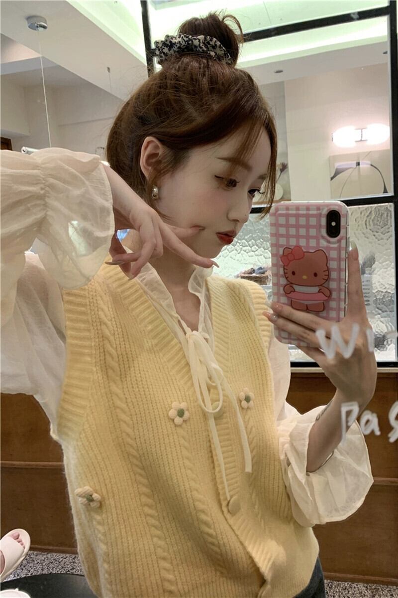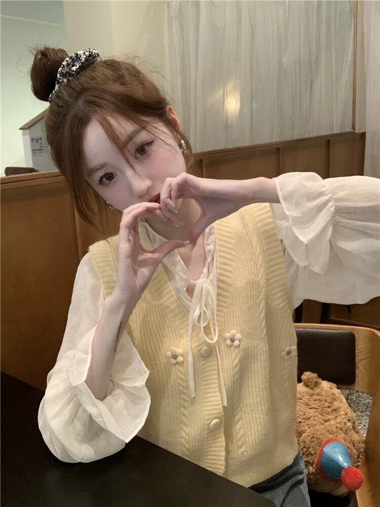 色:白いベスト,黄色のベスト,ピンクのベスト,シフォンブラウス