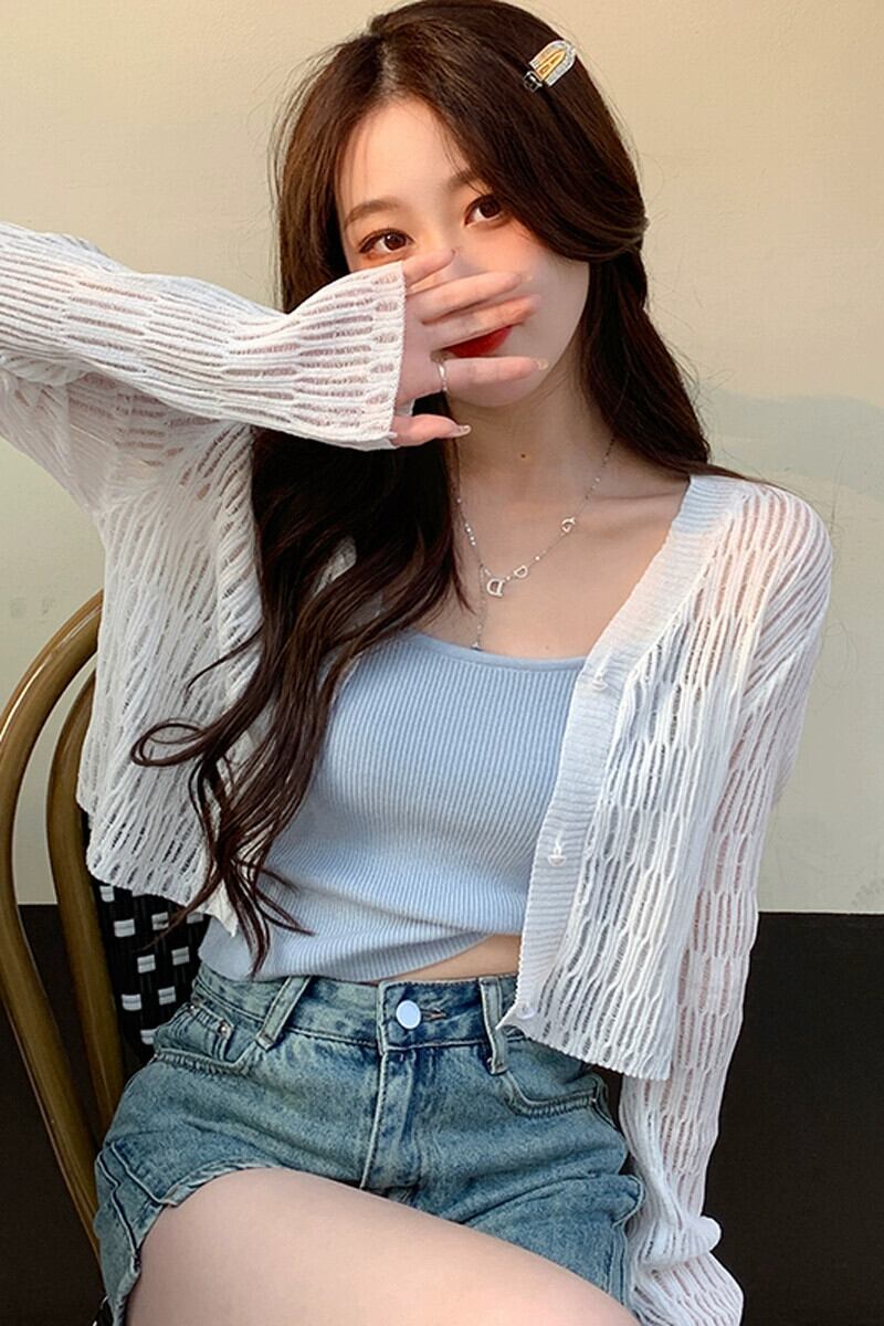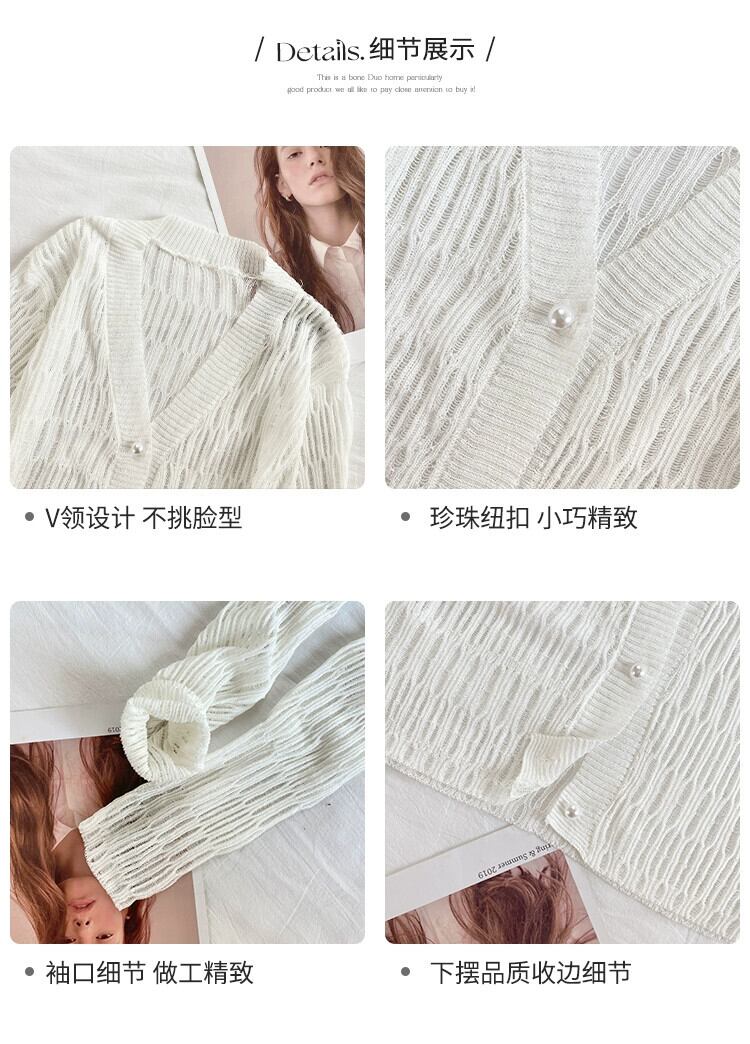 夏の白い中空ニット日焼け止めカーディガン女性サスペンダーと薄いショール ブラウス アイス シルク エアコン シャツ ホワイト サマー 夏物 7460040247164512 | framboise21