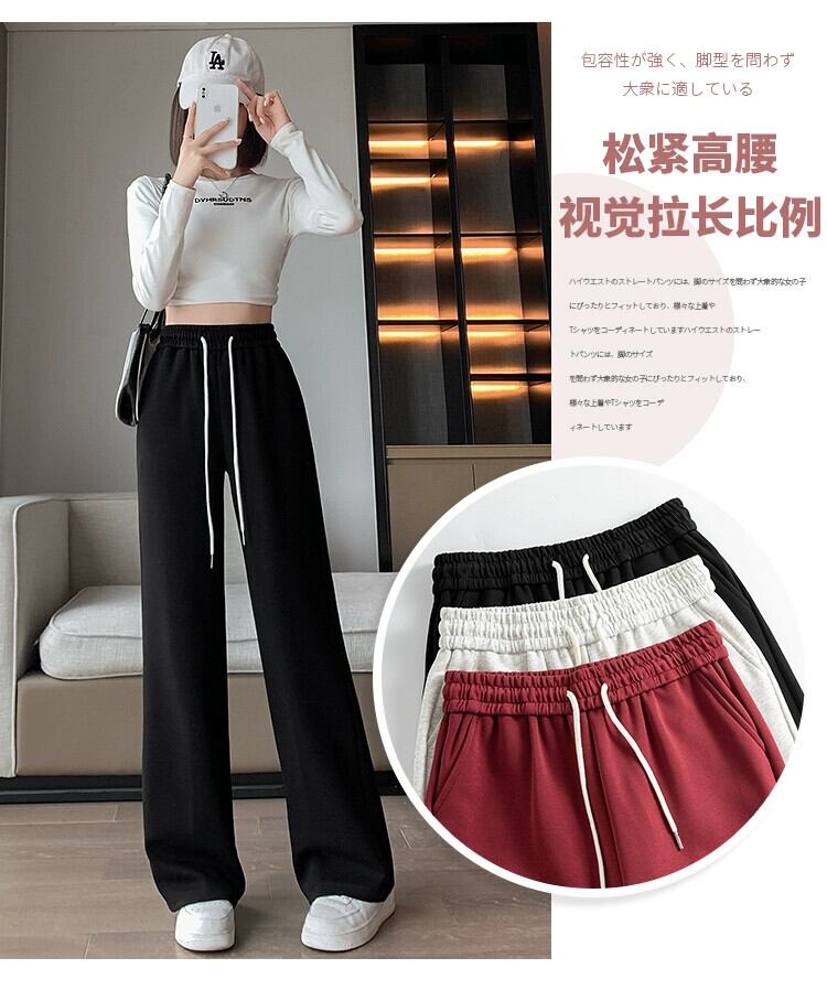 ストレートパンツ女性 2023 春と秋の新しいナローバージョンスリムでドレープのあるワイドレッグパンツルーズで多目的なスポーツパンツ スプリング 春物 オータム 秋物 7460047311690203 | framboise21