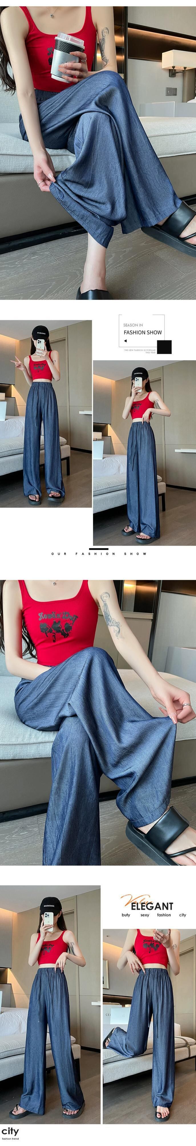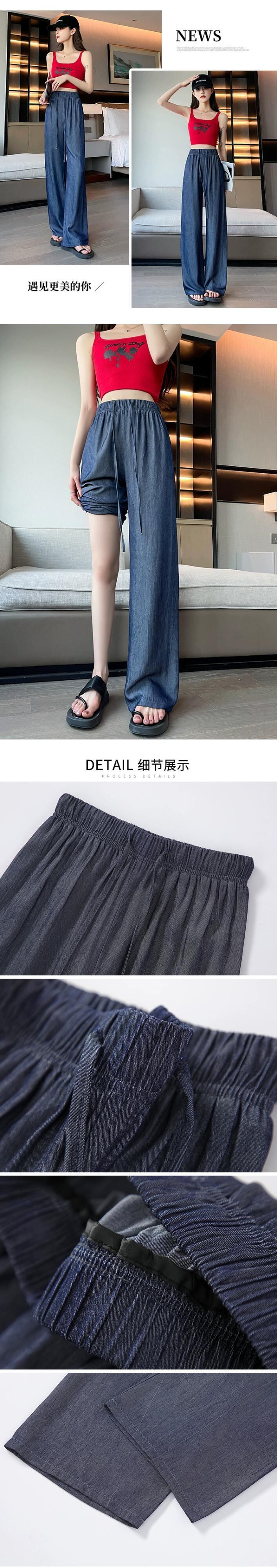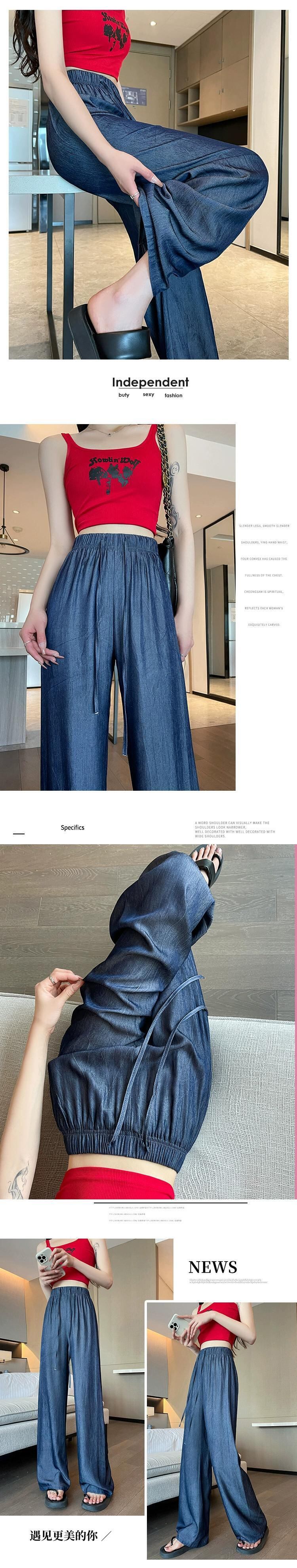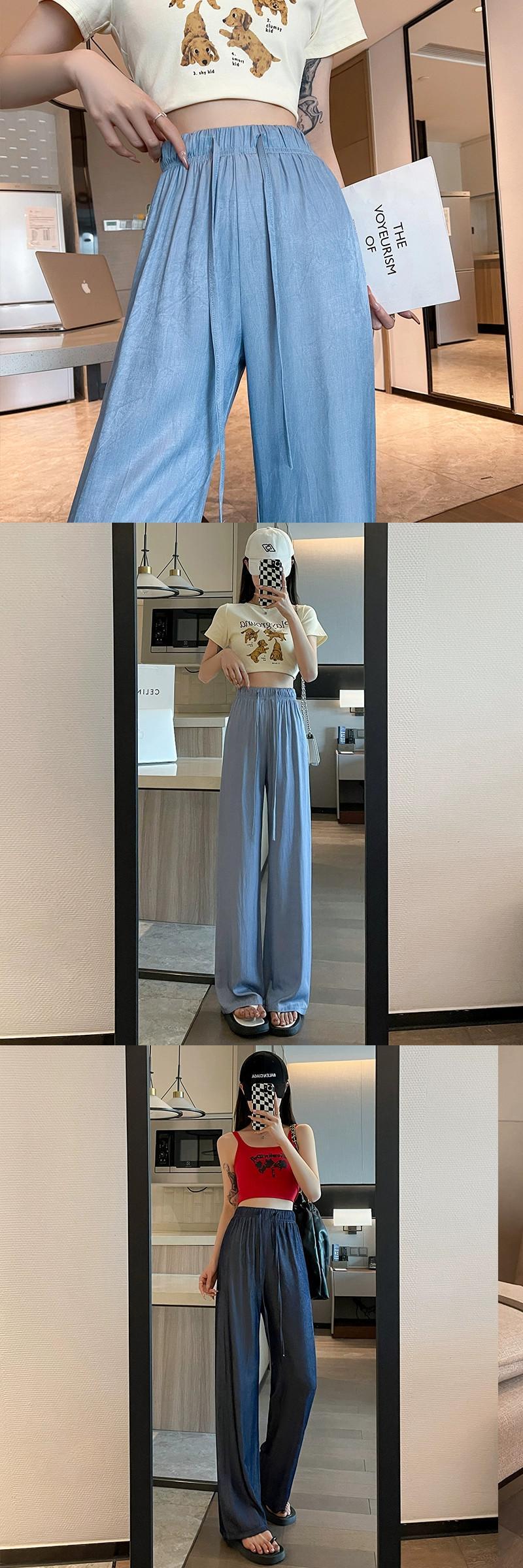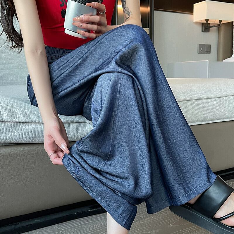 夏用テンセルワイドレッグジーンズレディース、薄いアイスシルクパンツ、ハイウエスト、痩身、涼しくドレープ性のある日焼け止めパンツ、小柄な人向け ハイウェスト サマー 夏物 7460075525488071 | framboise21