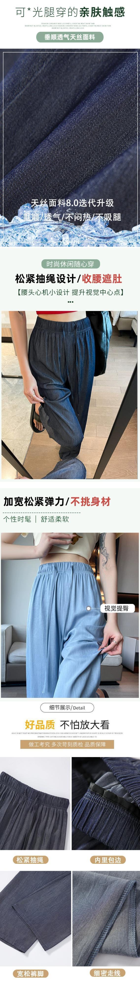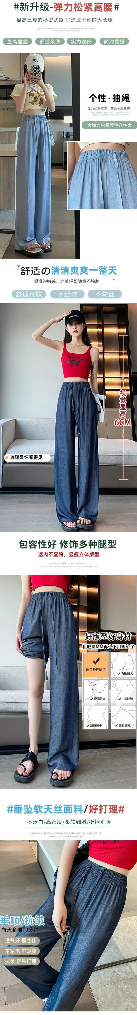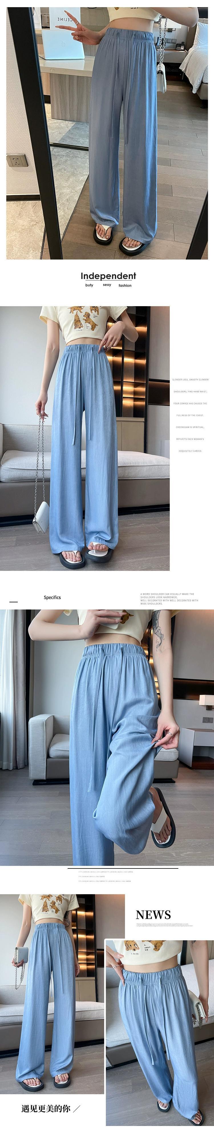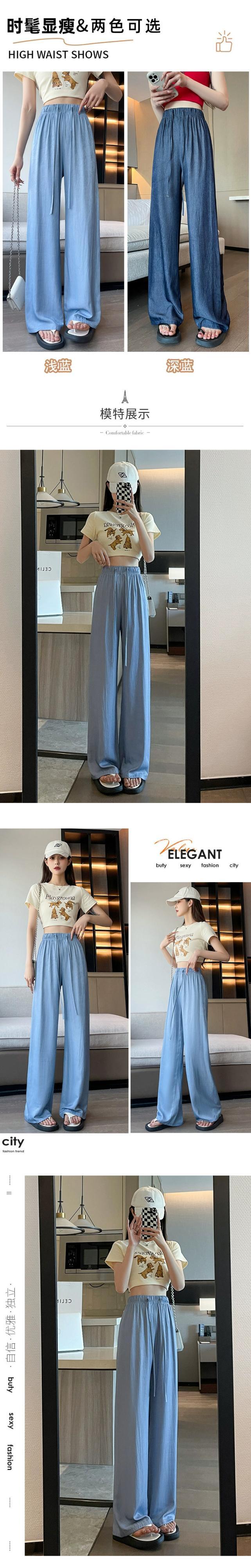 夏用テンセルワイドレッグジーンズレディース、薄いアイスシルクパンツ、ハイウエスト、痩身、涼しくドレープ性のある日焼け止めパンツ、小柄な人向け ハイウェスト サマー 夏物 7460075525488071 | framboise21