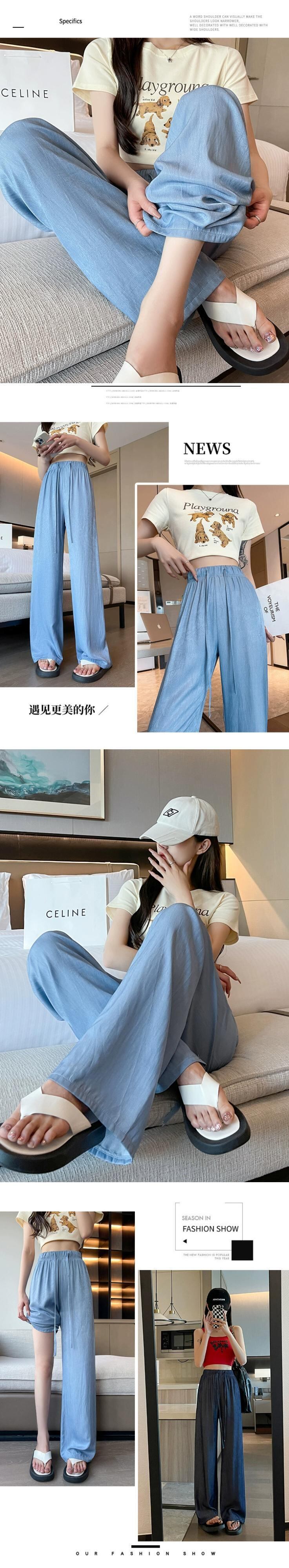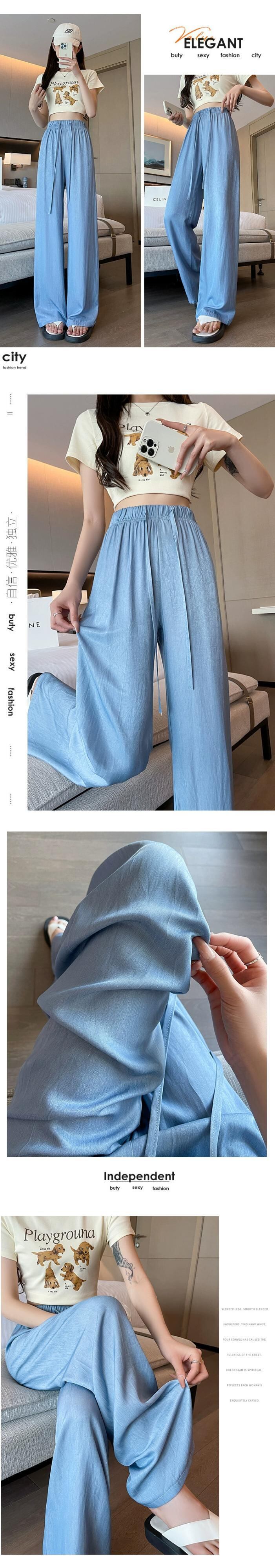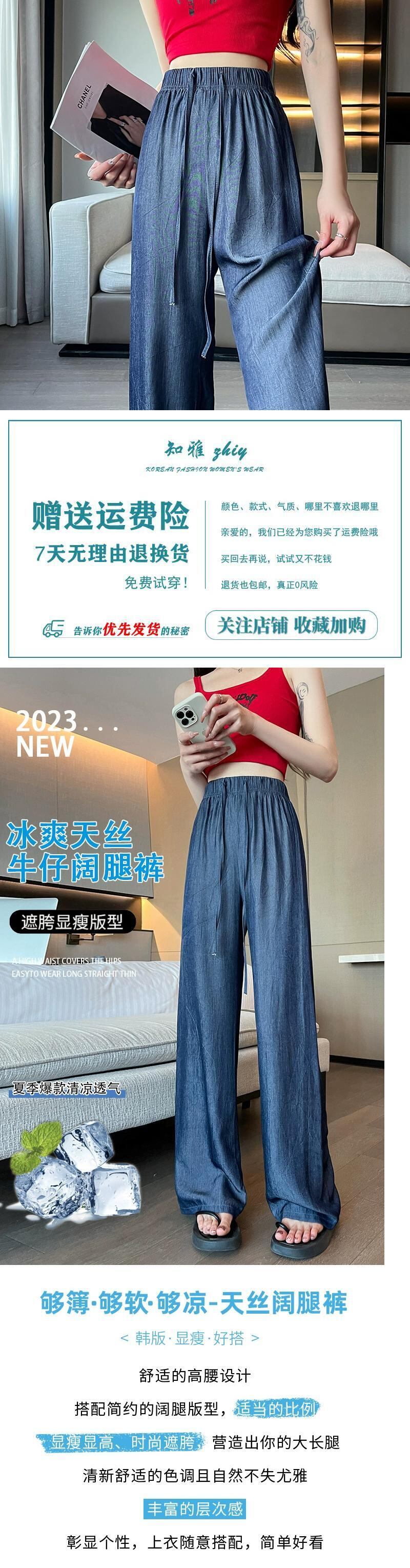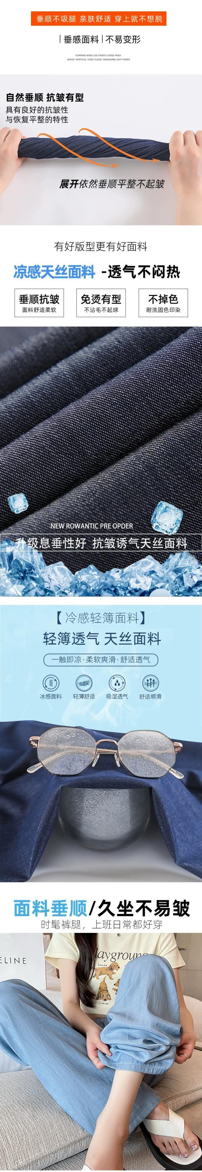 夏用テンセルワイドレッグジーンズレディース、薄いアイスシルクパンツ、ハイウエスト、痩身、涼しくドレープ性のある日焼け止めパンツ、小柄な人向け ハイウェスト サマー 夏物 7460075525488071 | framboise21