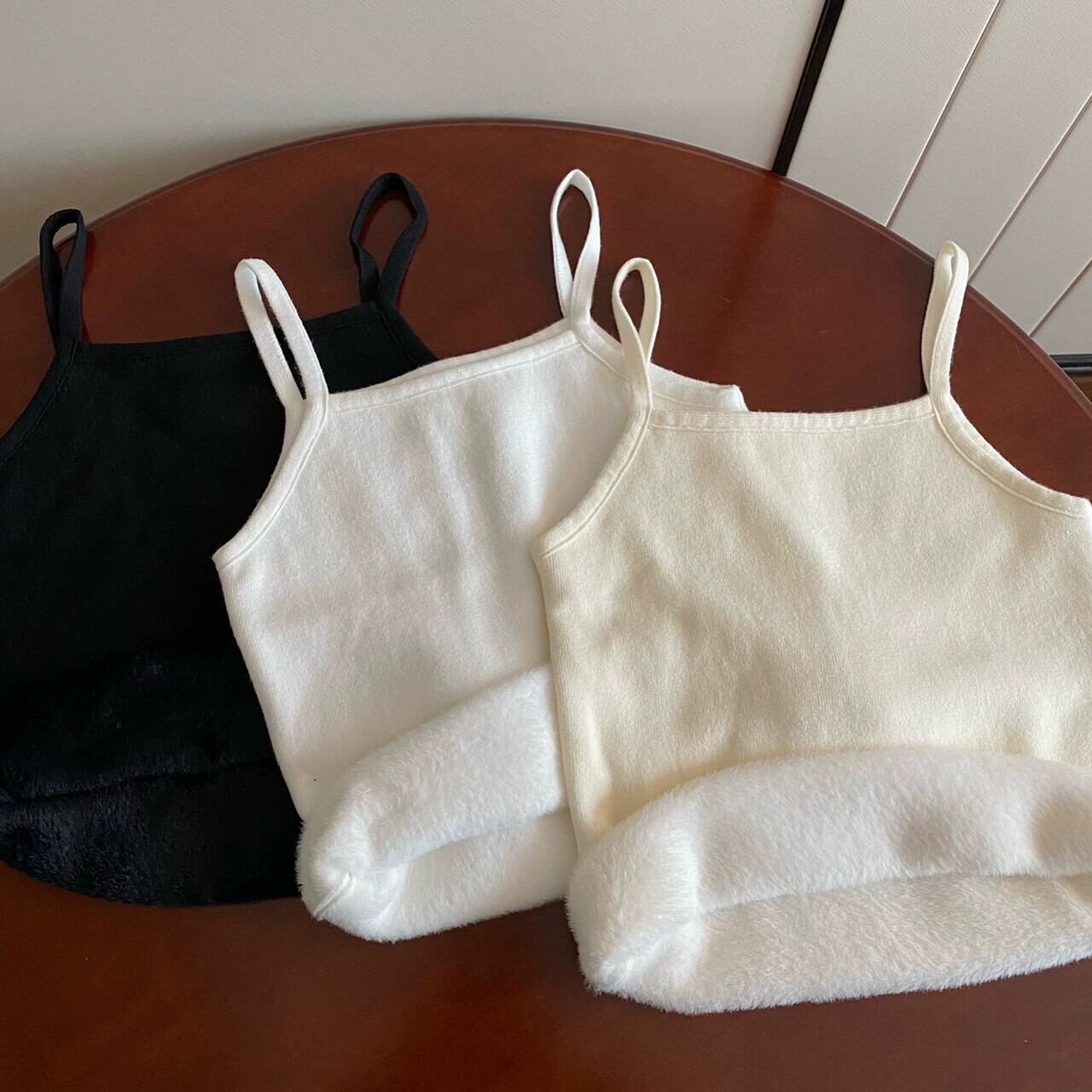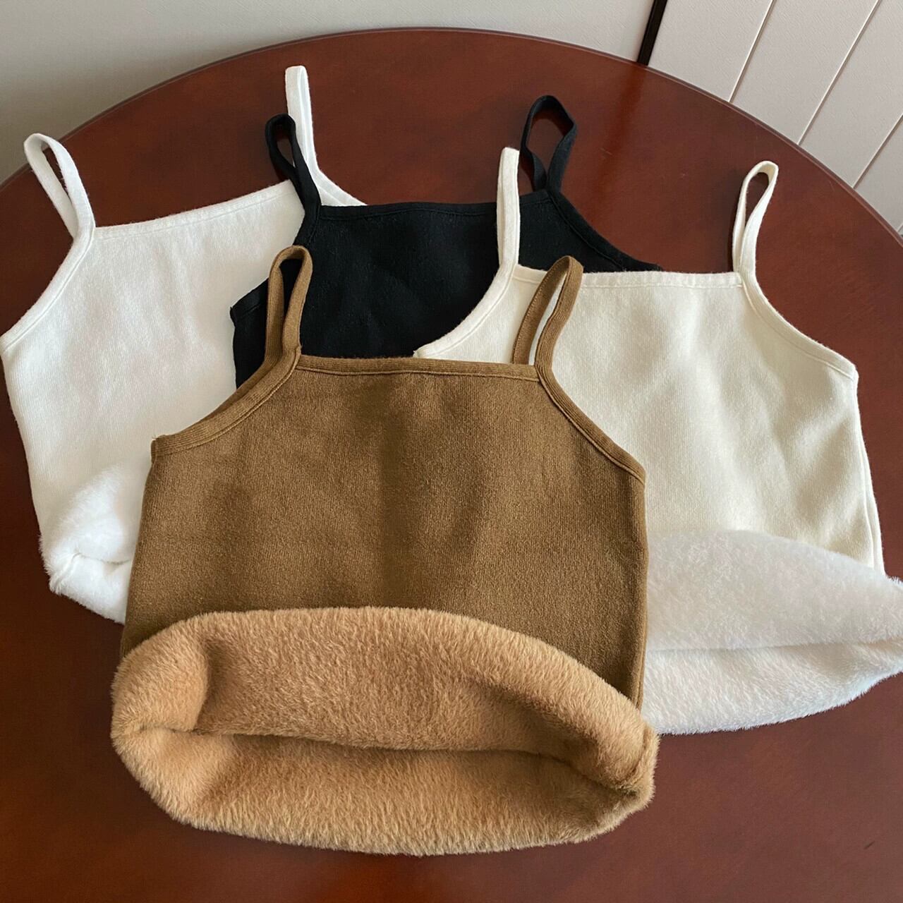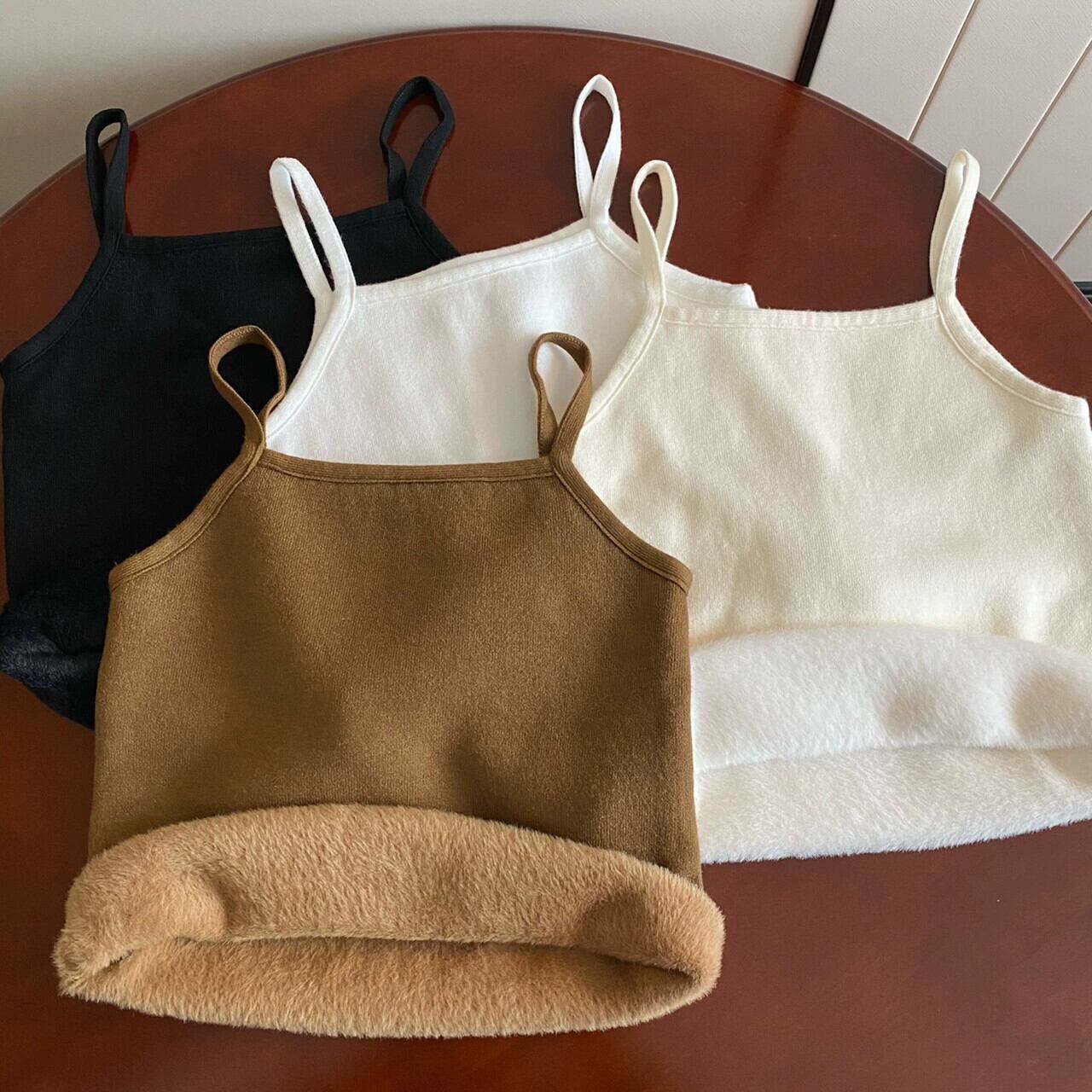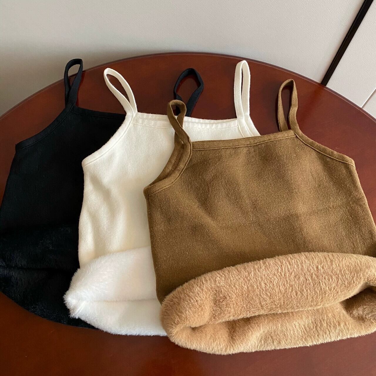女性の秋と冬のスリムフィット暖かいベスト、ベルベットと厚いニットサスペンダートップ、短い底付きチューブトップ付き ショート オータム 秋物 ウィンター 冬物 7460022619627141 | framboise21
