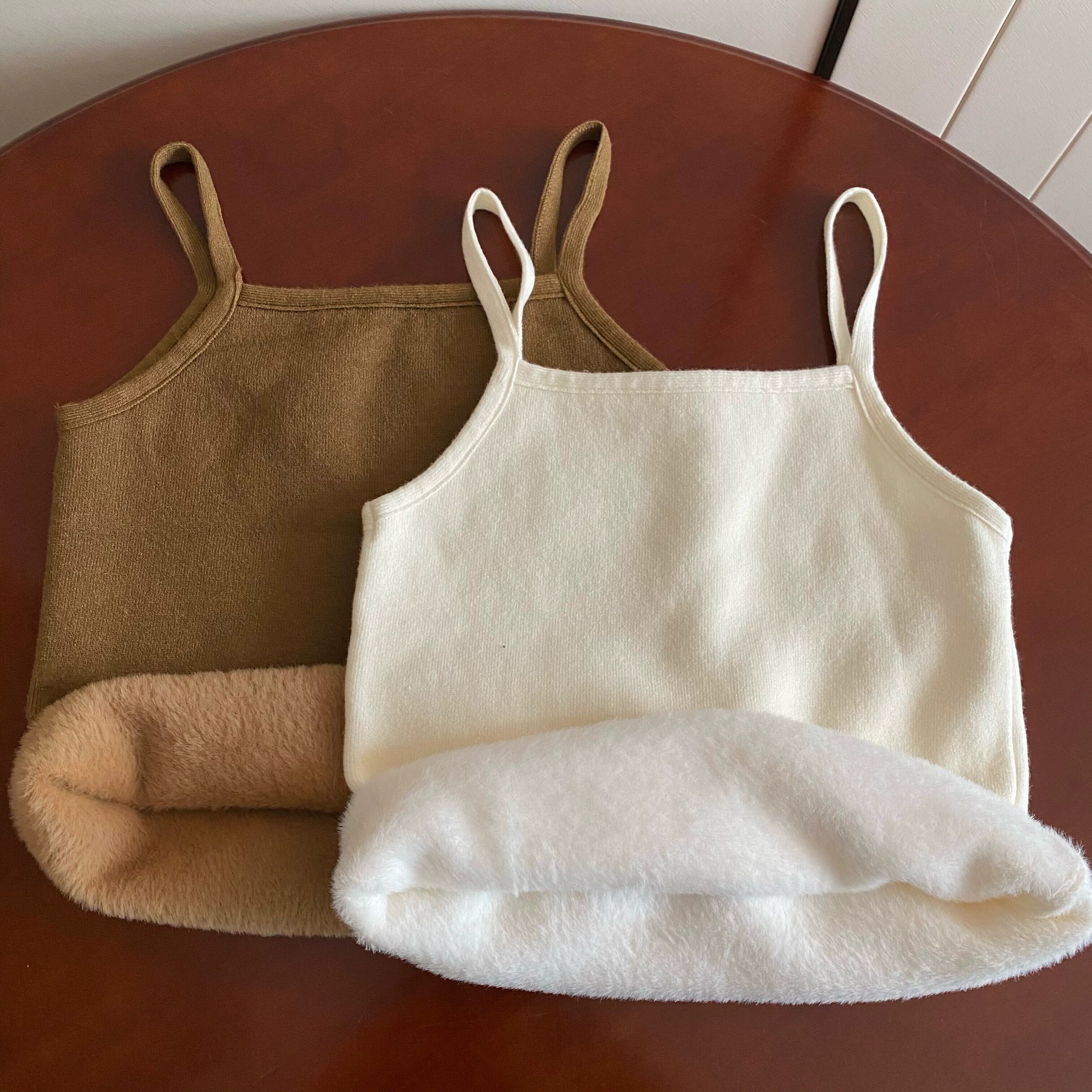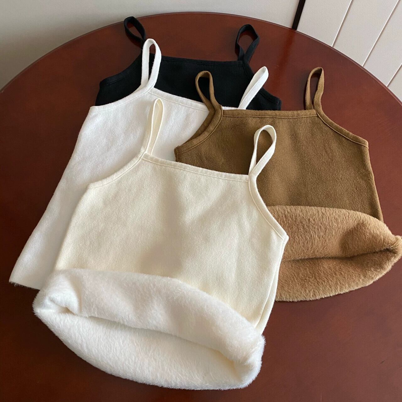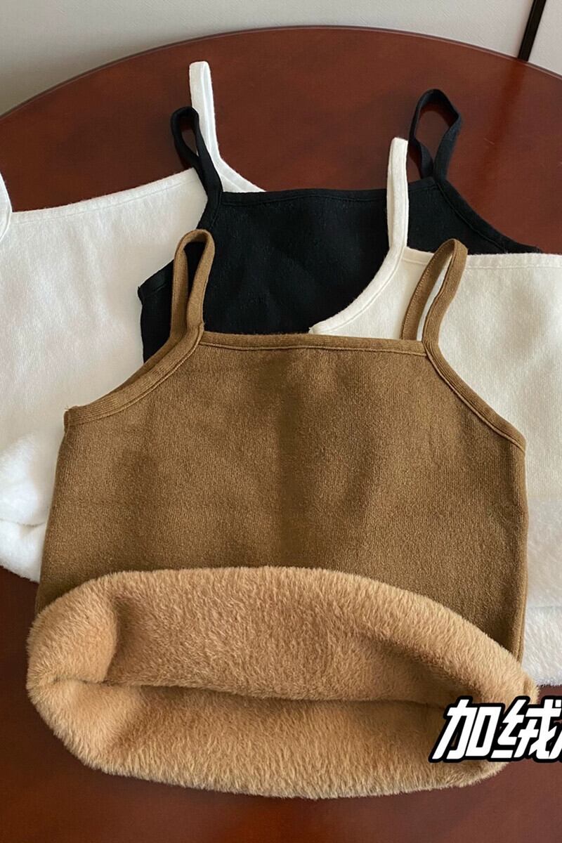 女性の秋と冬のスリムフィット暖かいベスト、ベルベットと厚いニットサスペンダートップ、短い底付きチューブトップ付き ショート オータム 秋物 ウィンター 冬物 7460022619627141 | framboise21