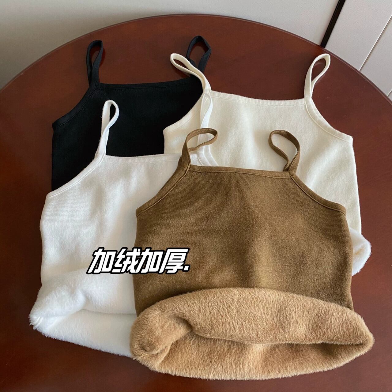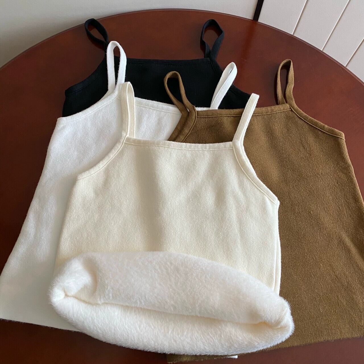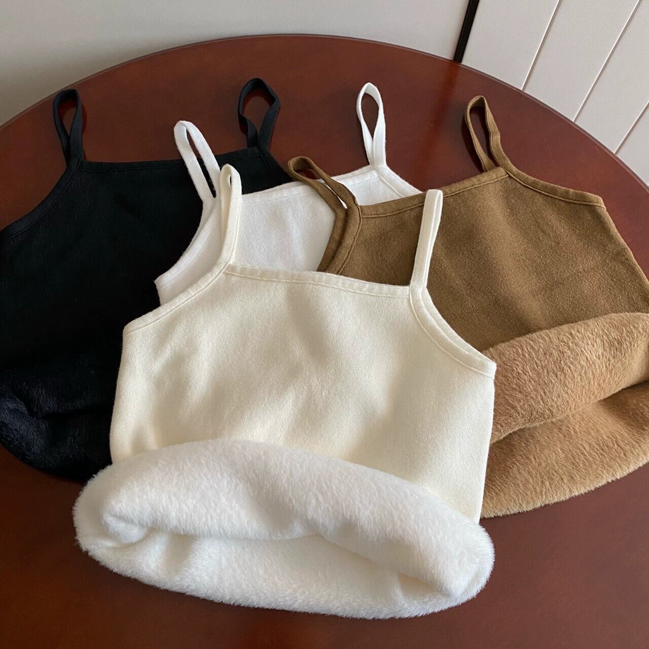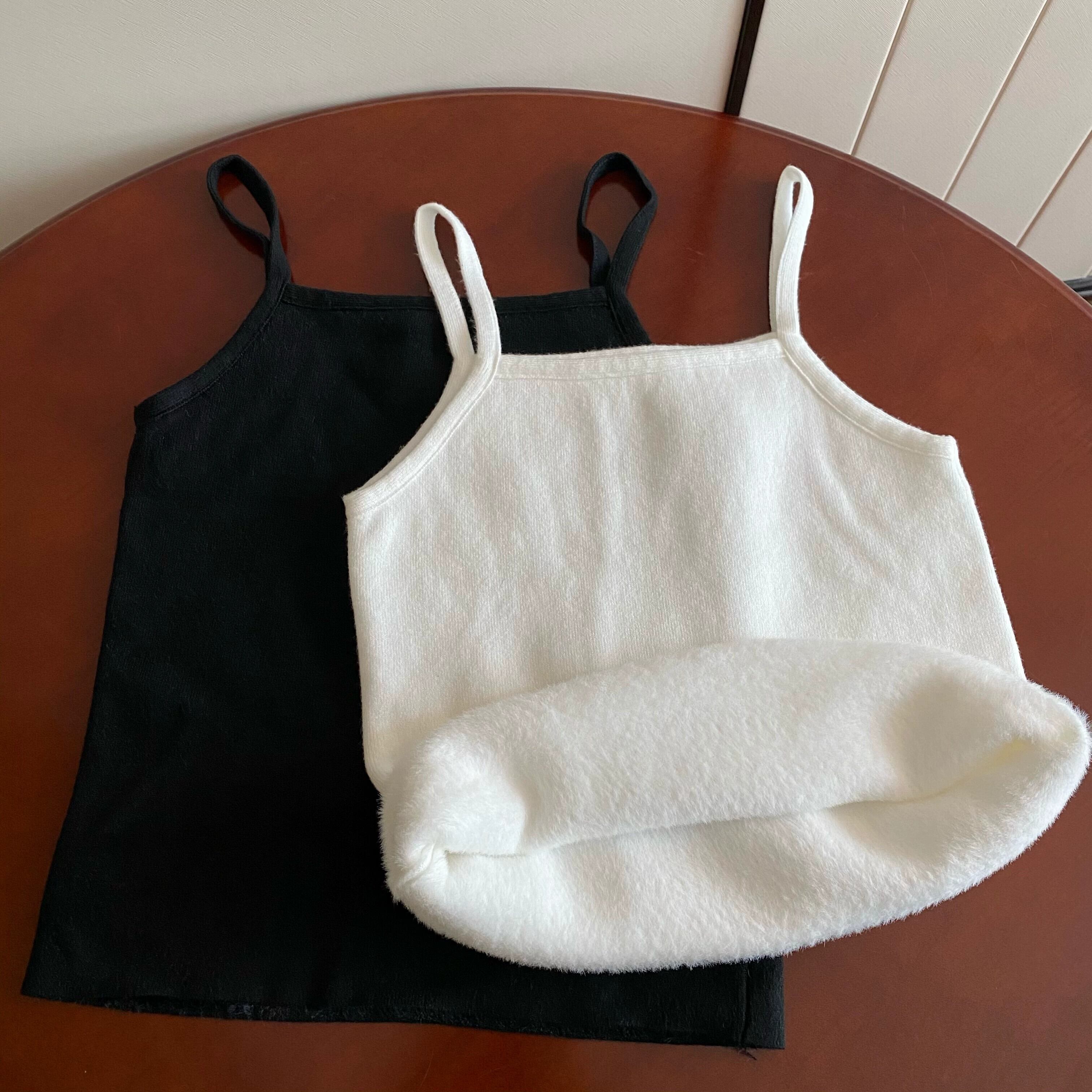 女性の秋と冬のスリムフィット暖かいベスト、ベルベットと厚いニットサスペンダートップ、短い底付きチューブトップ付き ショート オータム 秋物 ウィンター 冬物 7460022619627141 | framboise21
