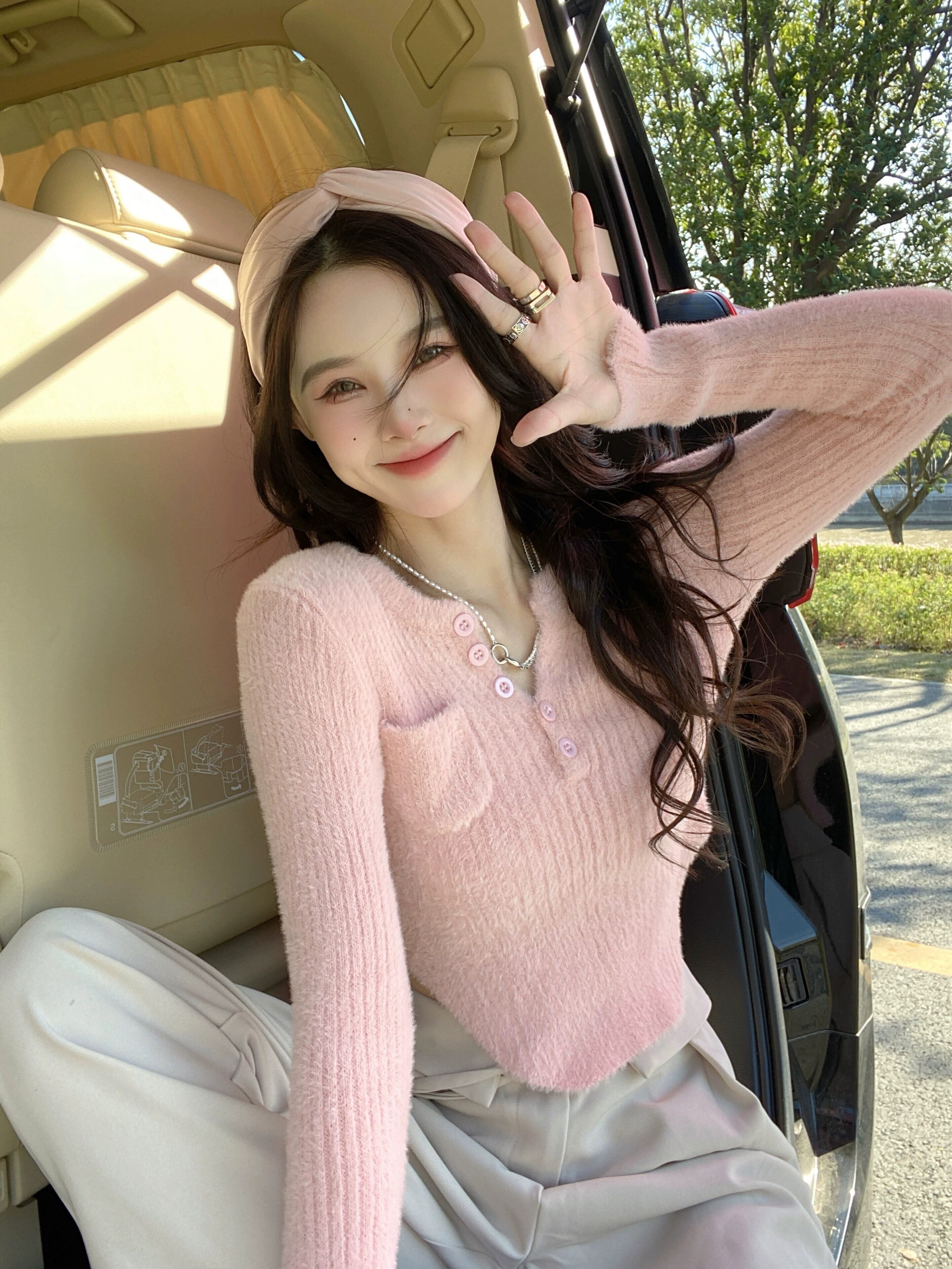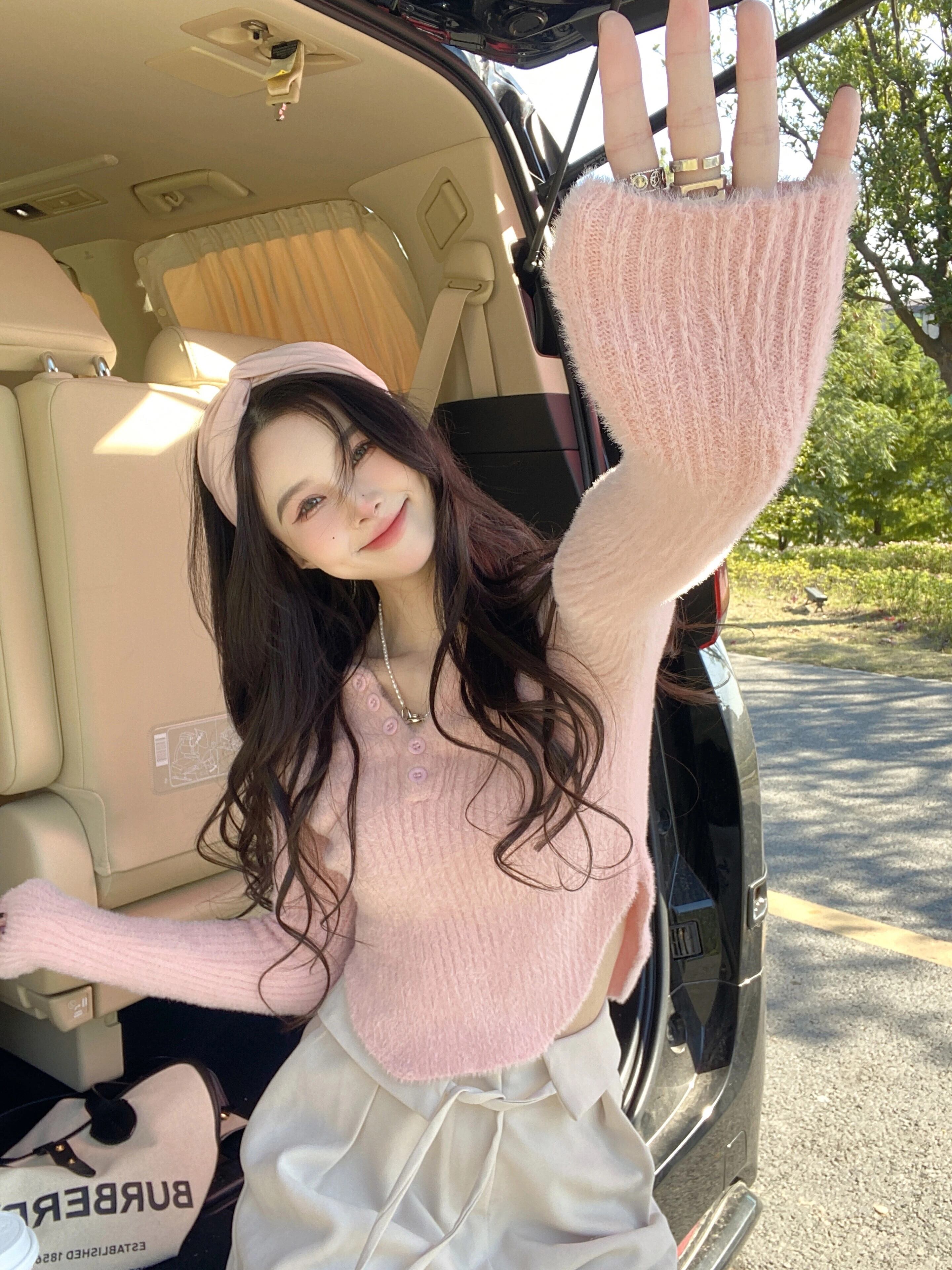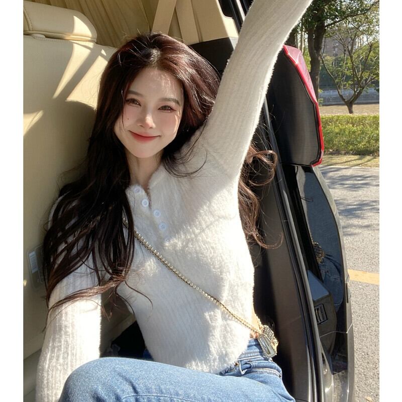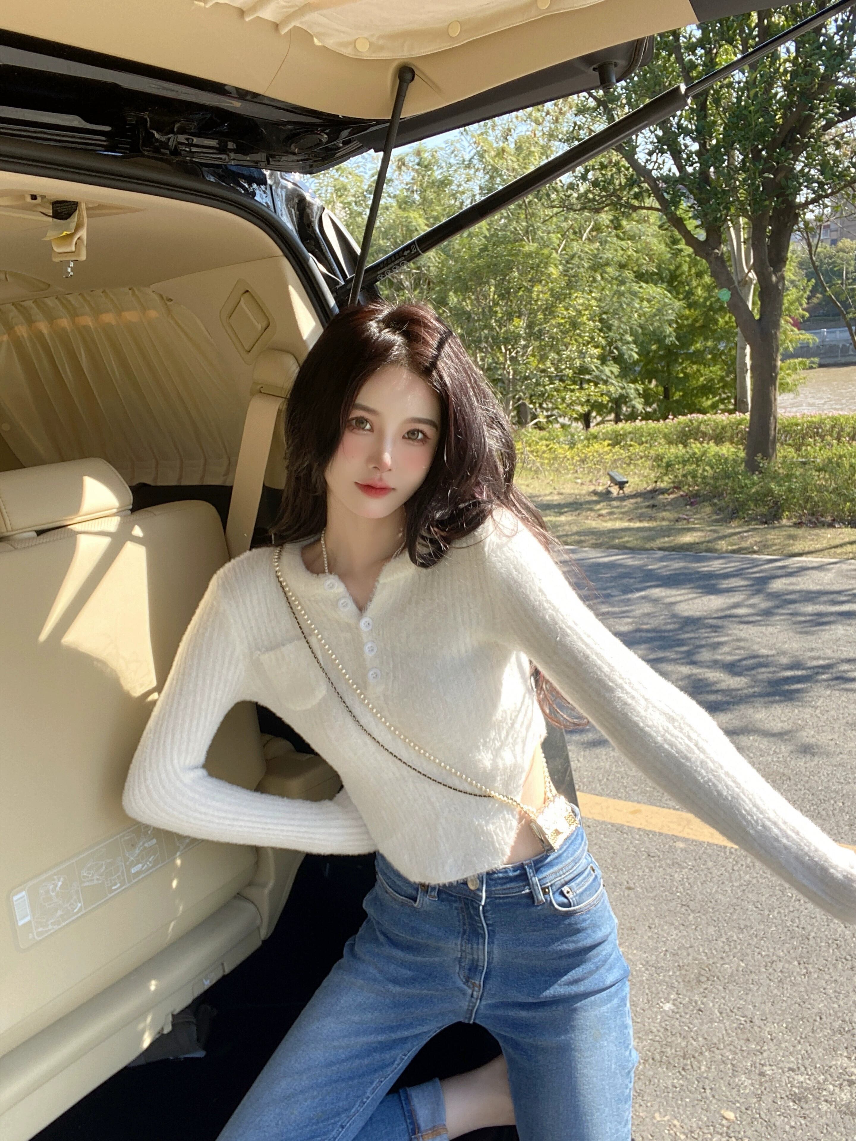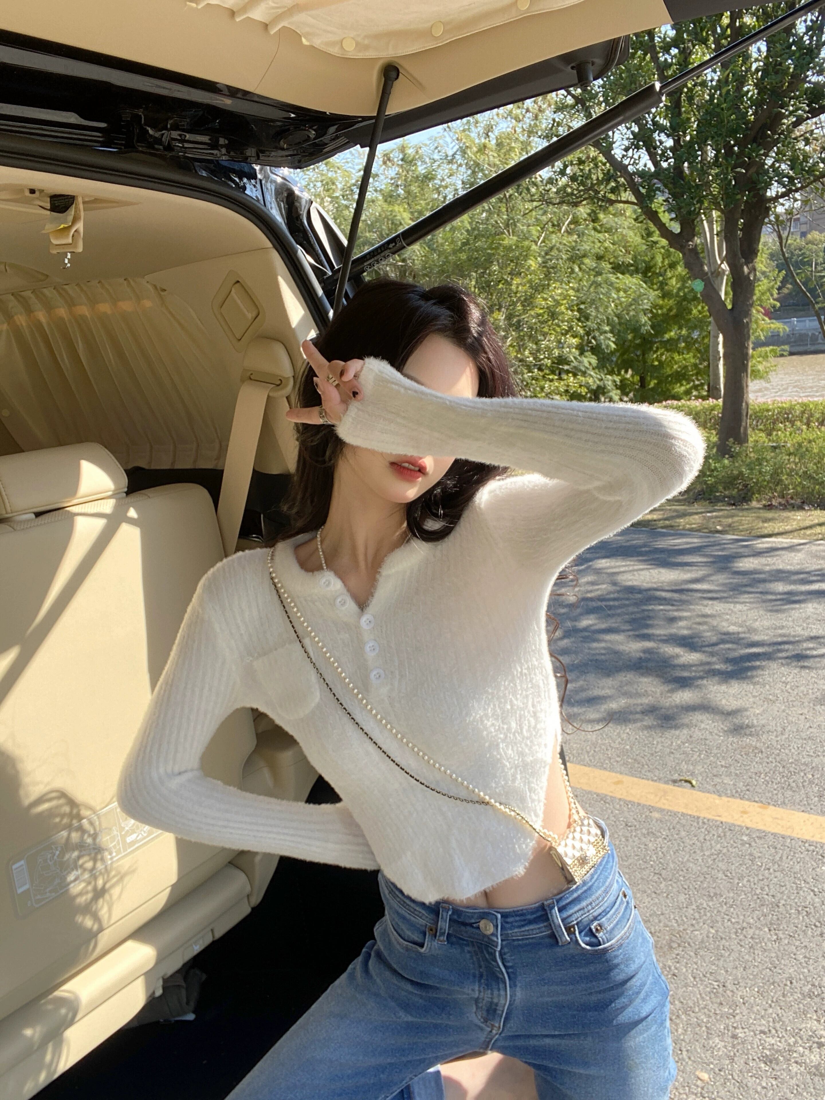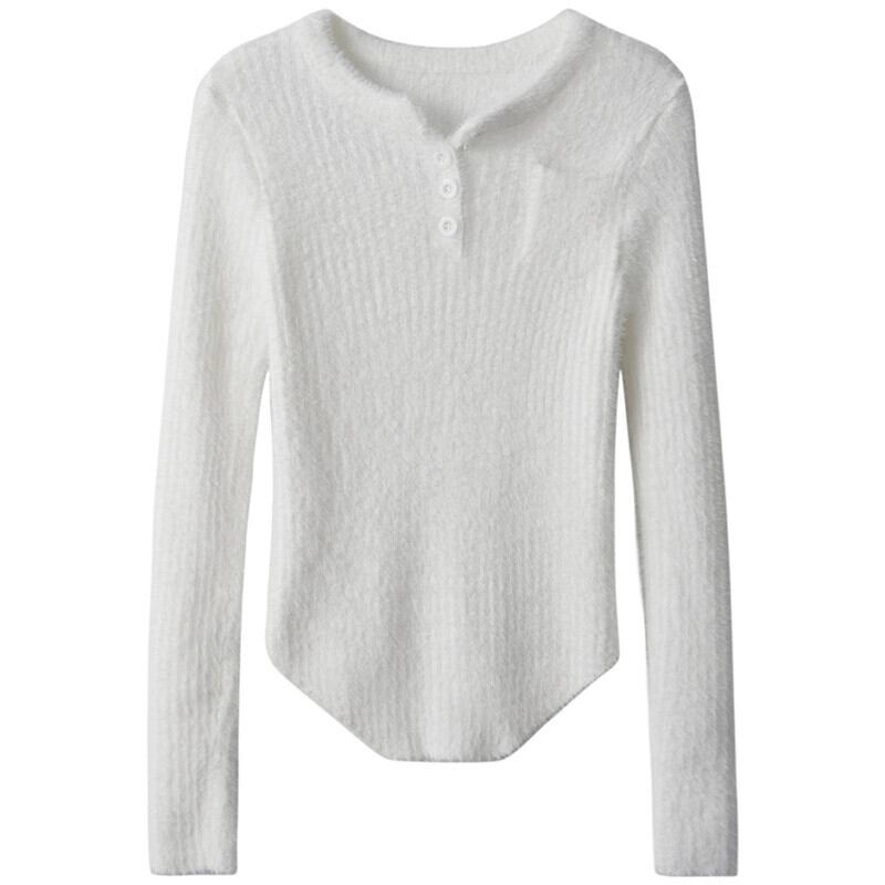 秋冬のミンク ベルベット プルオーバー セーター レディース、優しいスタイル、スリム フィット、白の不規則なショート ニット ボトム シャツ ホワイト オータム 秋物 ウィンター 冬物 7460054161301613 | framboise21