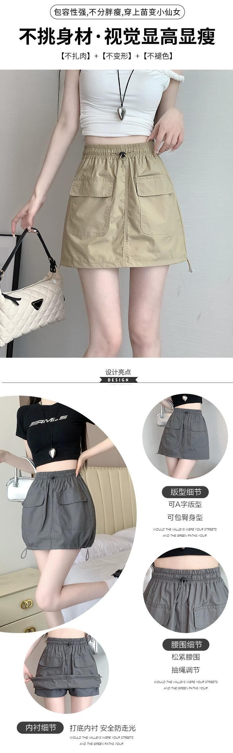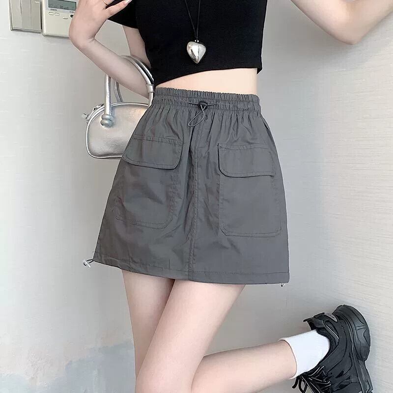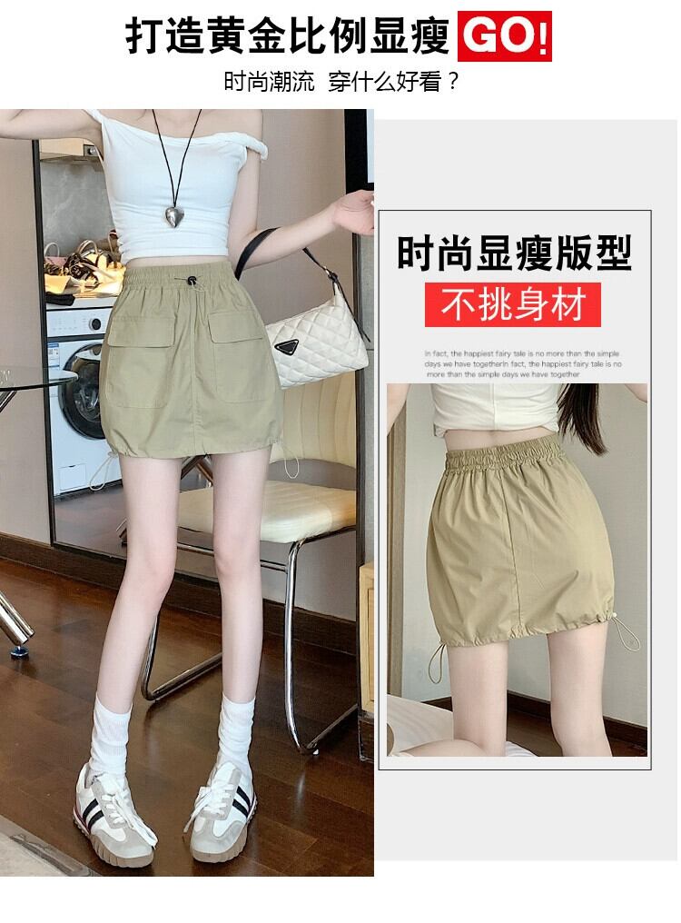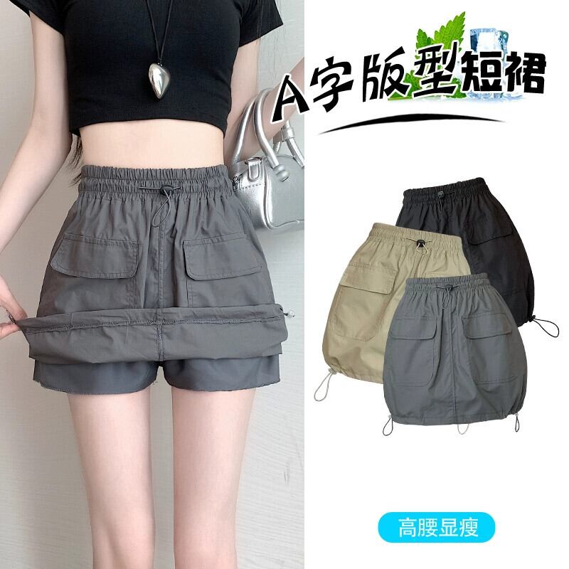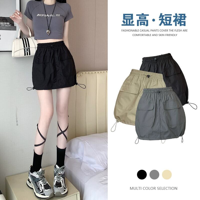 アメリカンスポーツワークウェアショートスカートレディース夏、ハイウエスト、着痩せ、Aラインスカート、露出防止、巾着スカート小柄な人 サマー 夏物 7460017758423281 | framboise21
