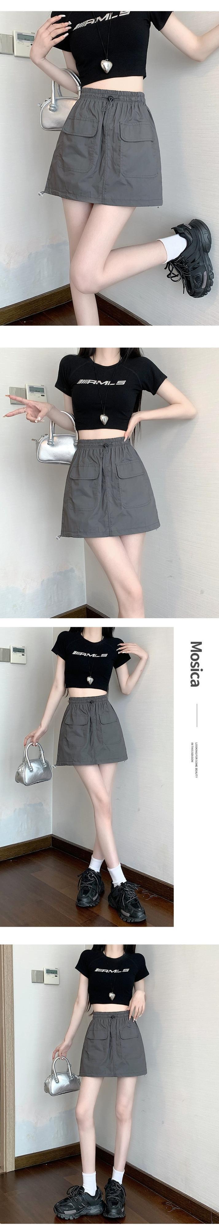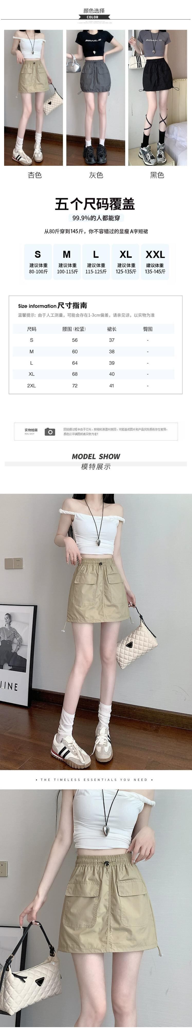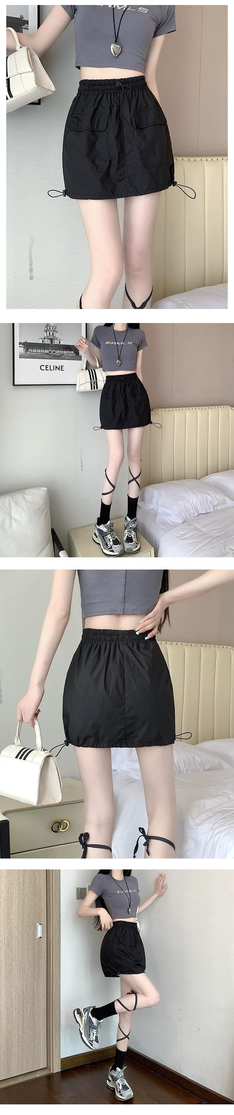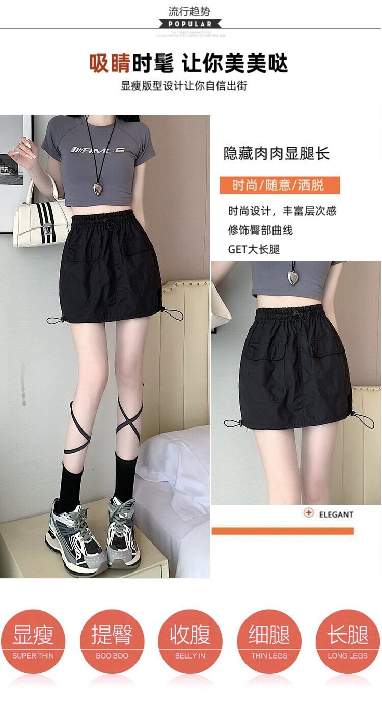 アメリカンスポーツワークウェアショートスカートレディース夏、ハイウエスト、着痩せ、Aラインスカート、露出防止、巾着スカート小柄な人 サマー 夏物 7460017758423281 | framboise21