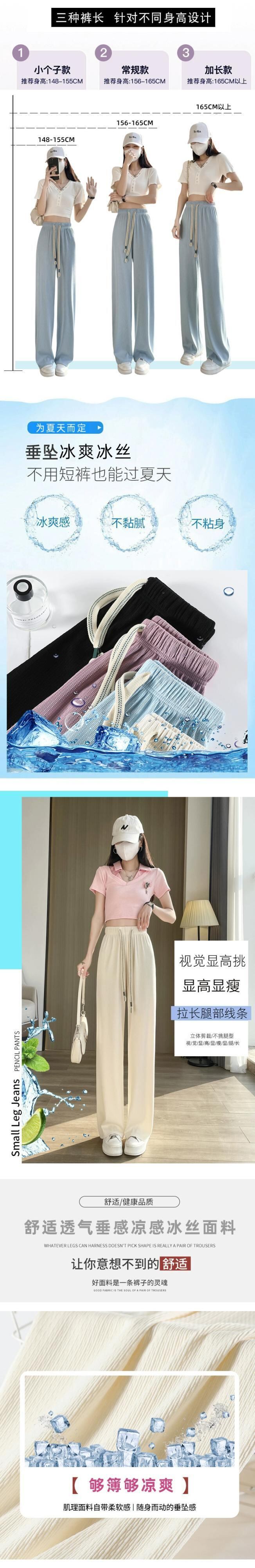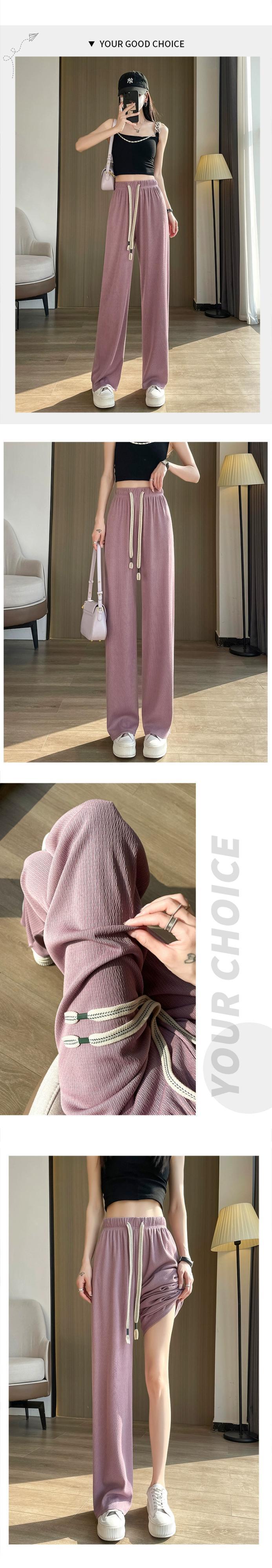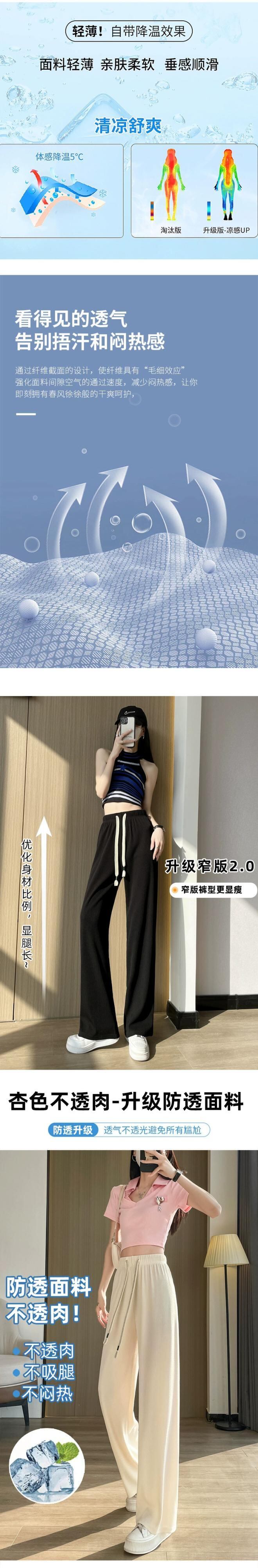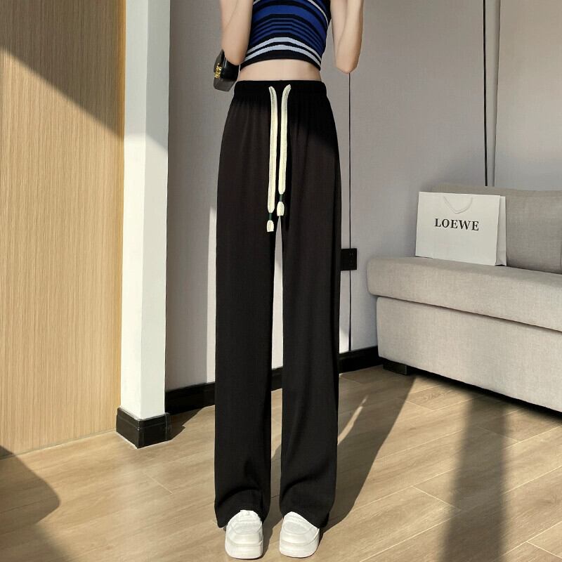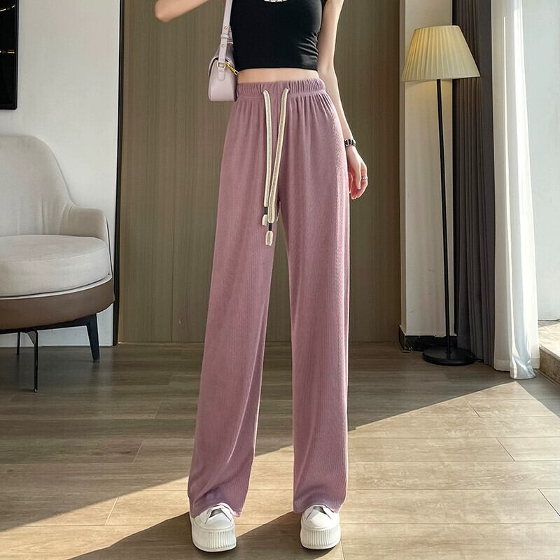 夏のアイスシルクワイドレッグパンツレディース、ルーズ、スリム、ハイウエスト、薄いパンツ、ストレートレッグドレープ、狭いカジュアルフロアモップパンツ サマー 夏物 7460055313007544 | framboise21