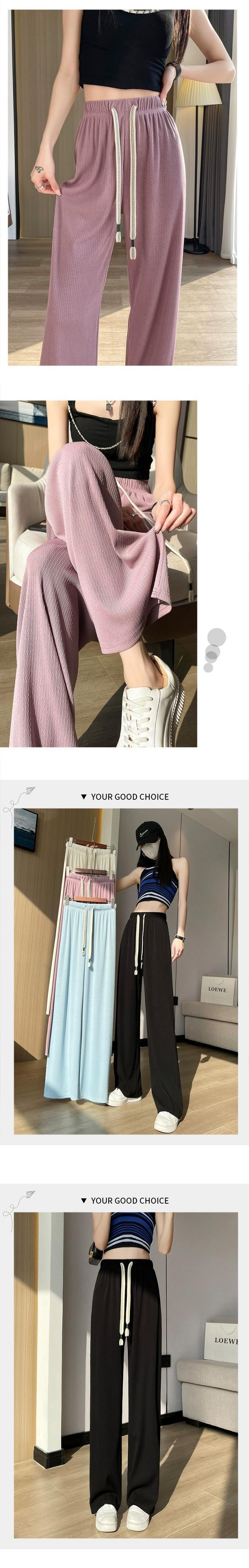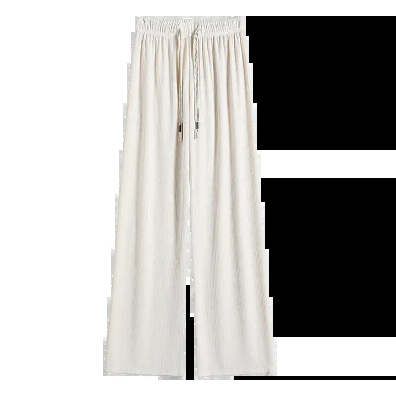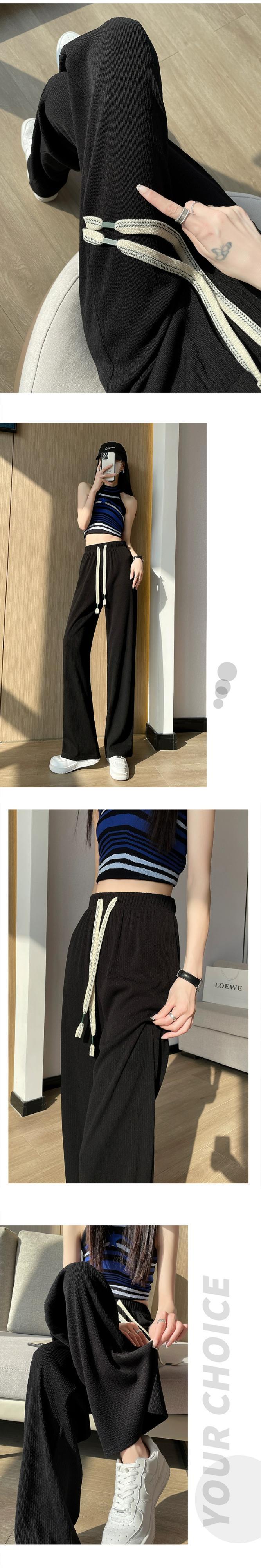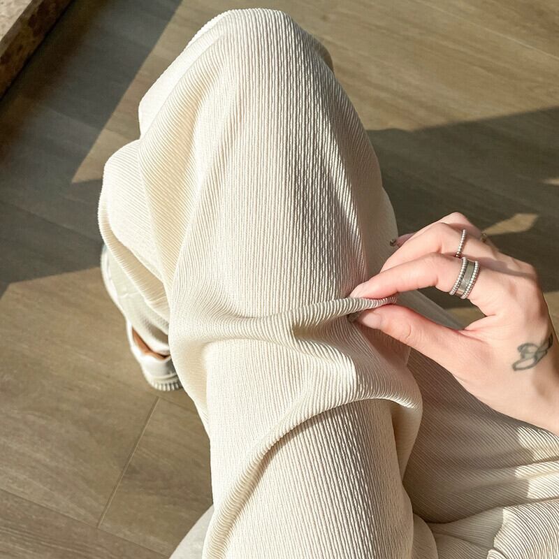 夏のアイスシルクワイドレッグパンツレディース、ルーズ、スリム、ハイウエスト、薄いパンツ、ストレートレッグドレープ、狭いカジュアルフロアモップパンツ サマー 夏物 7460055313007544 | framboise21