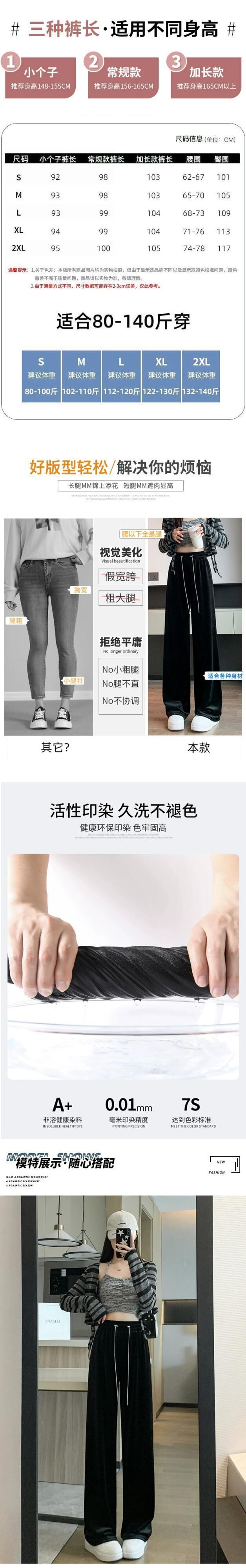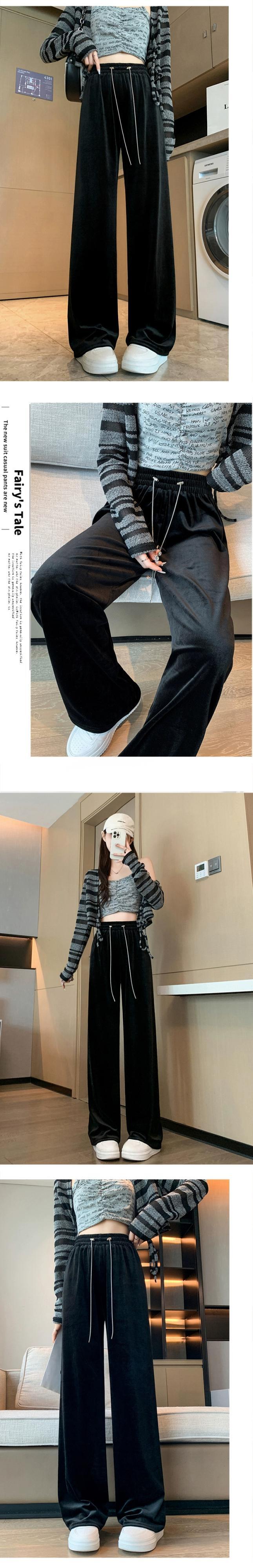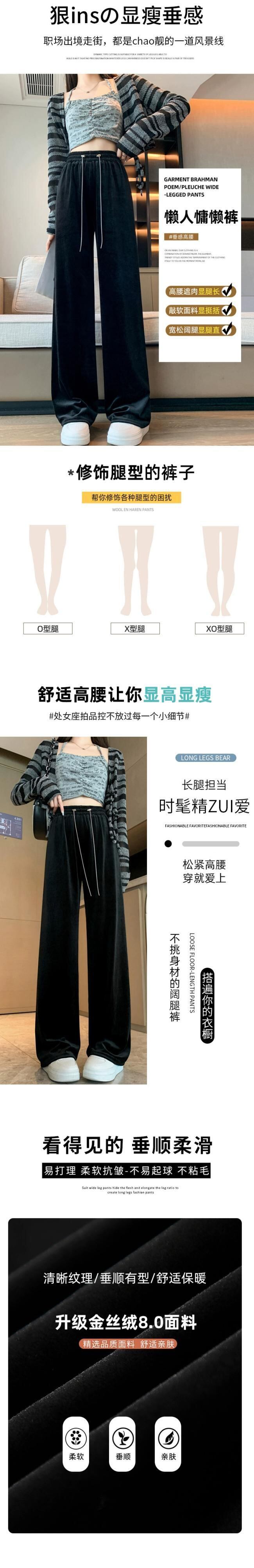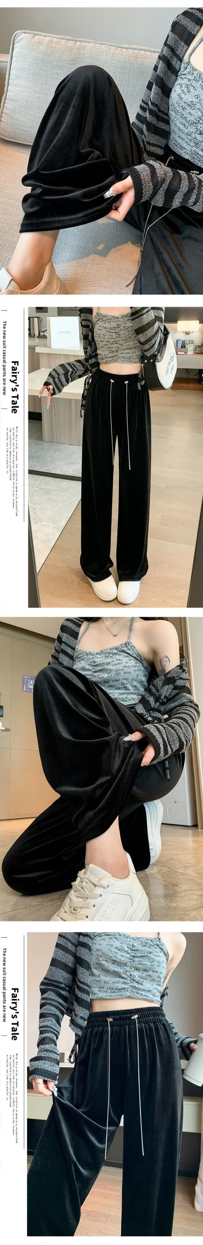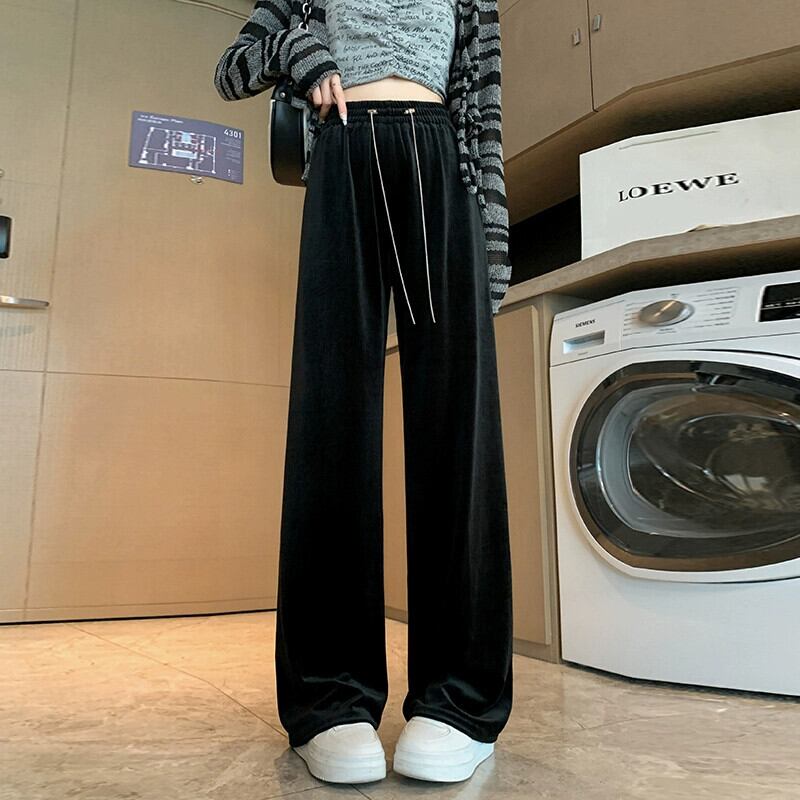ブラックゴールドベルベットナローワイドレッグパンツ女性秋冬 2023 新しいハイウエストドレープスリムカジュアルストレートレッグフロアモップパンツ オータム 秋物 ウィンター 冬物 7460099306085976 | framboise21