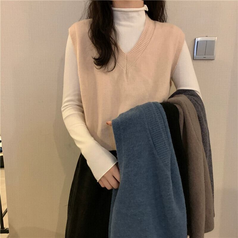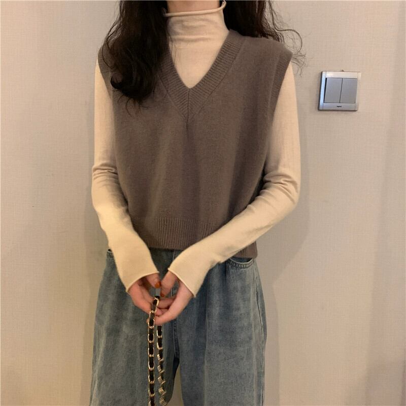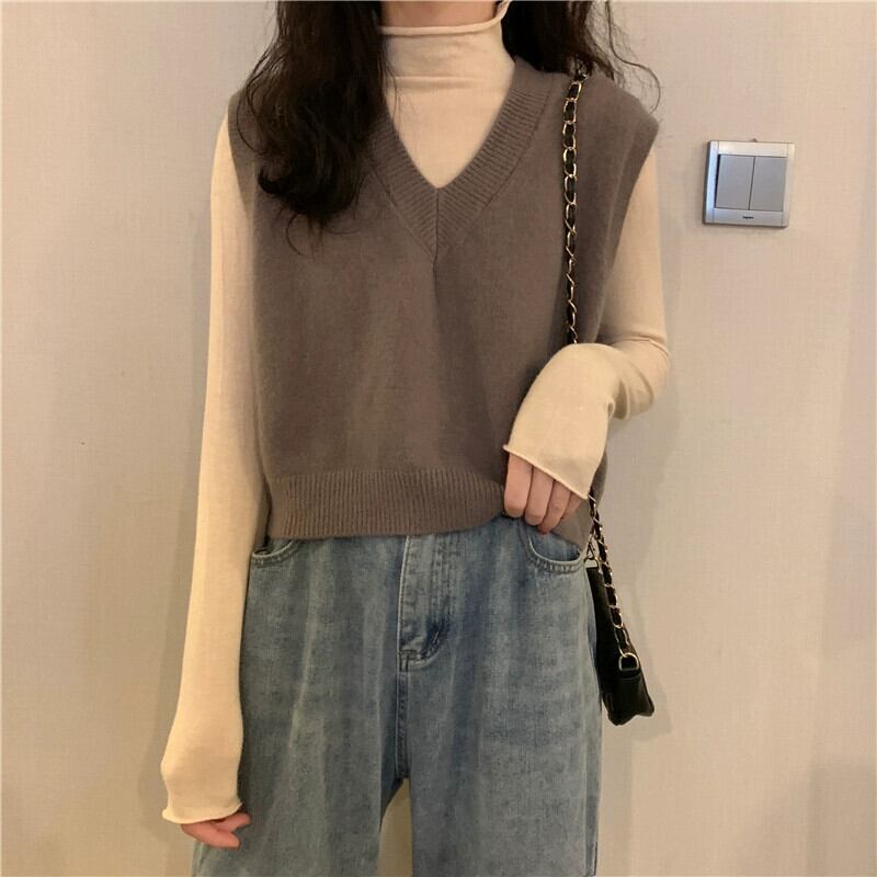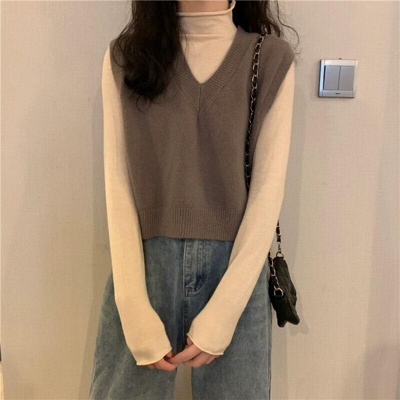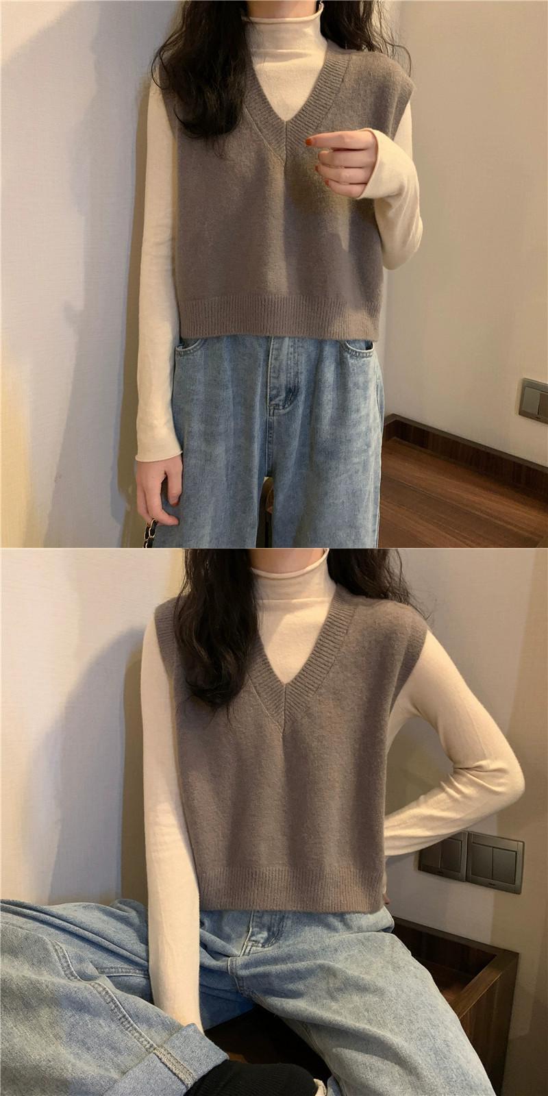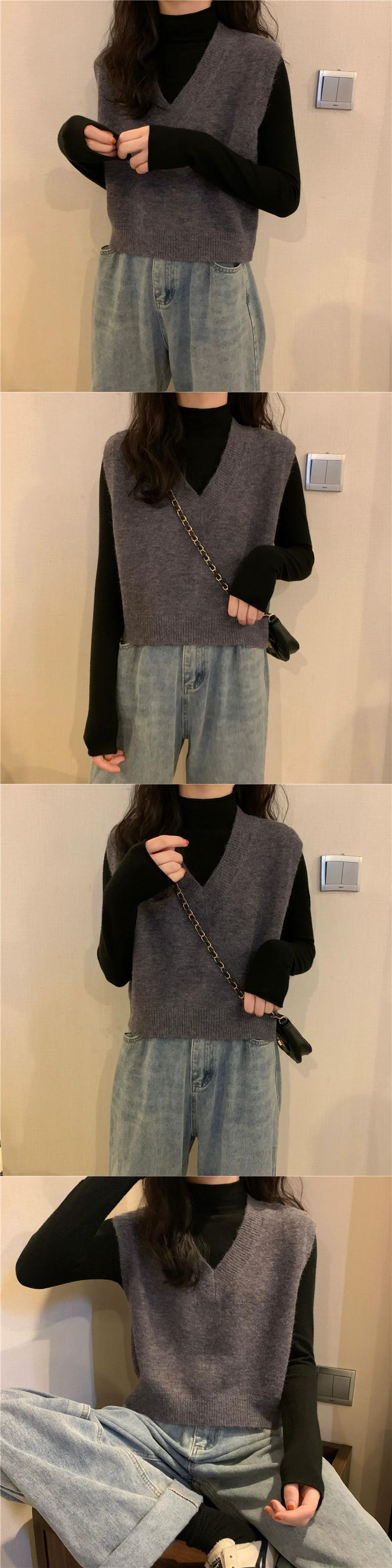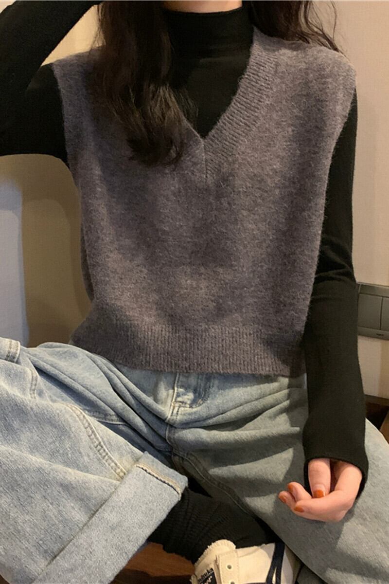 グレーのセーター ベスト ベスト女性の秋と冬の小人、緩いアウター レイヤリング、短いチョッキ、V ネック ニット ベスト ショート オータム 秋物 ウィンター 冬物 Vネック 746003715838738 | framboise21