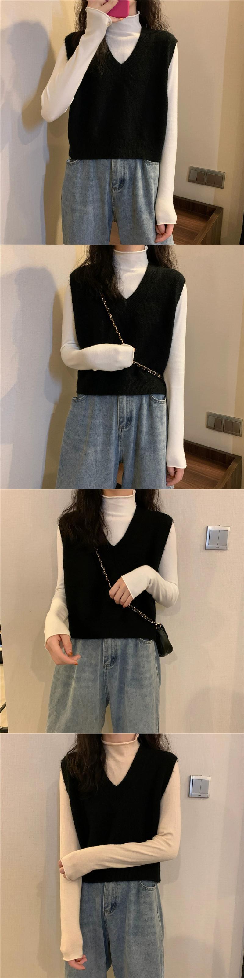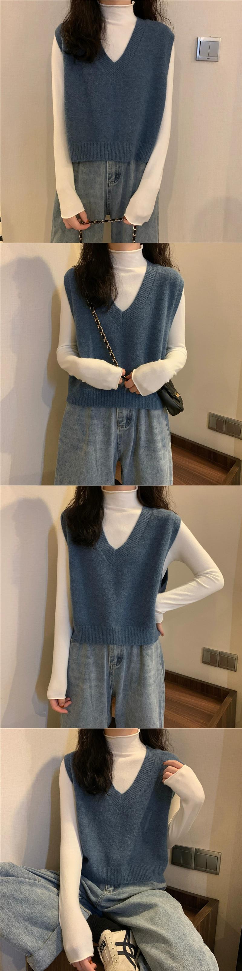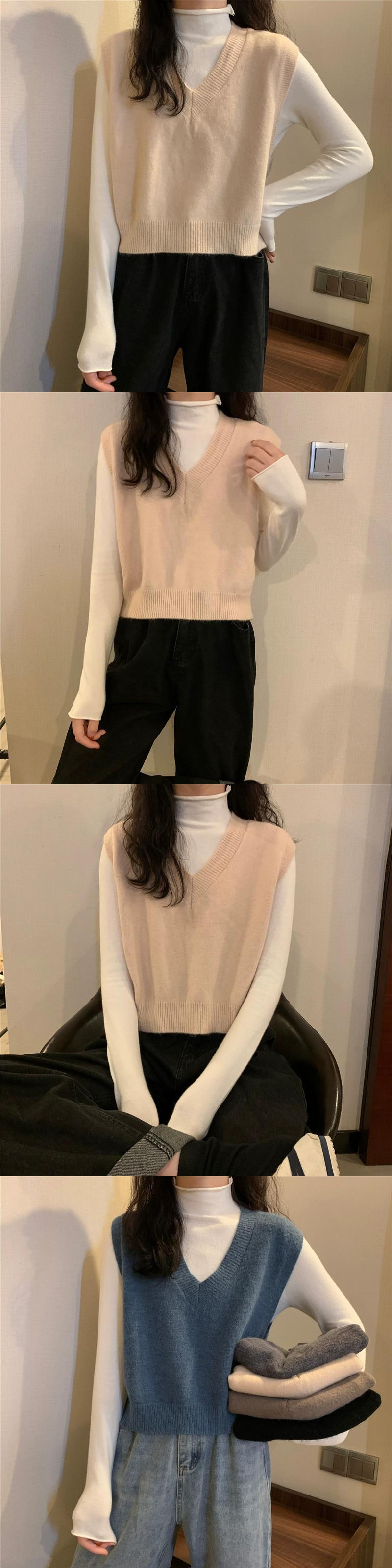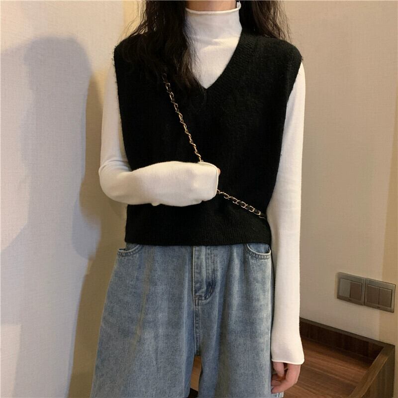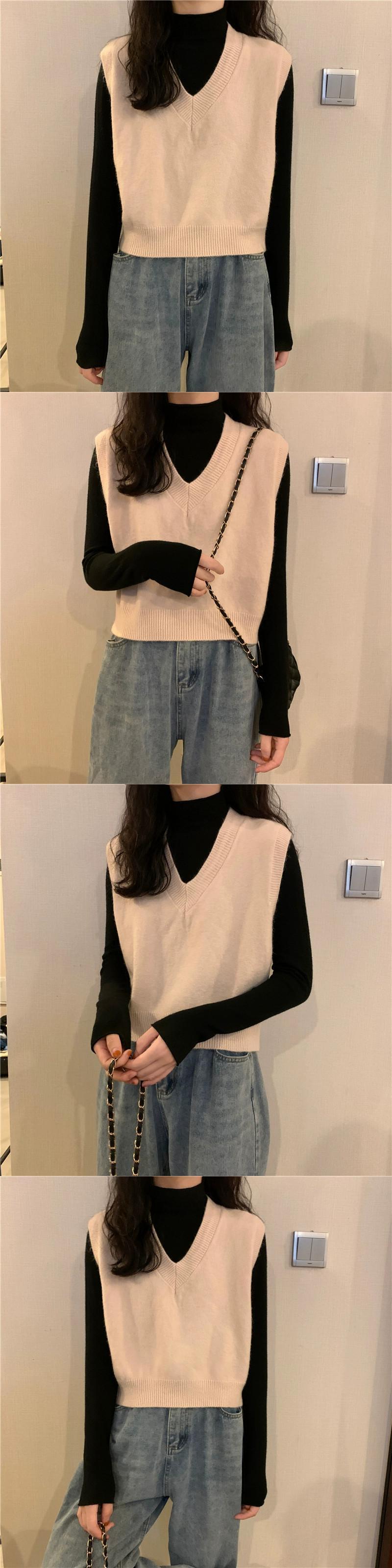グレーのセーター ベスト ベスト女性の秋と冬の小人、緩いアウター レイヤリング、短いチョッキ、V ネック ニット ベスト ショート オータム 秋物 ウィンター 冬物 Vネック 746003715838738 | framboise21