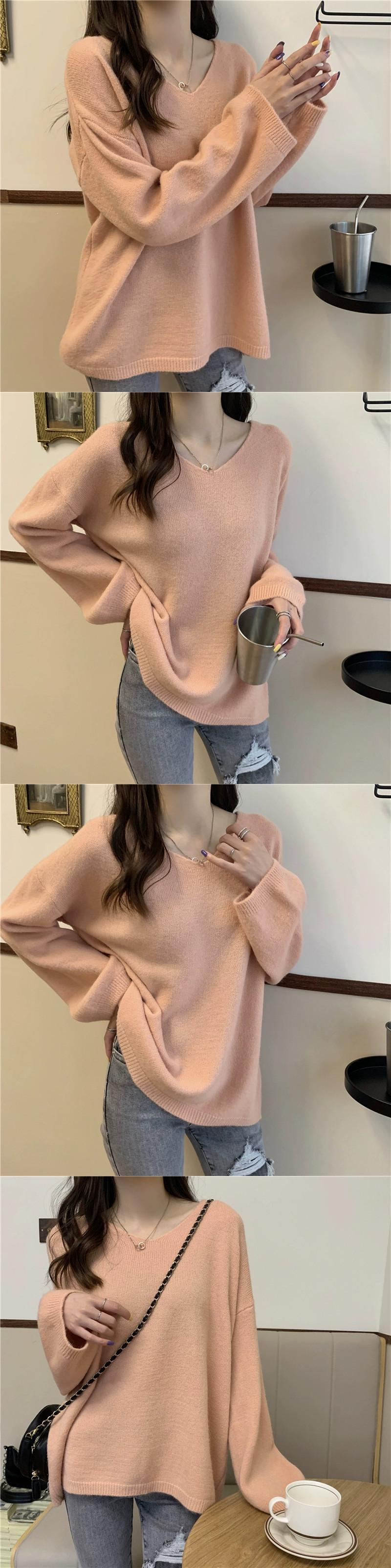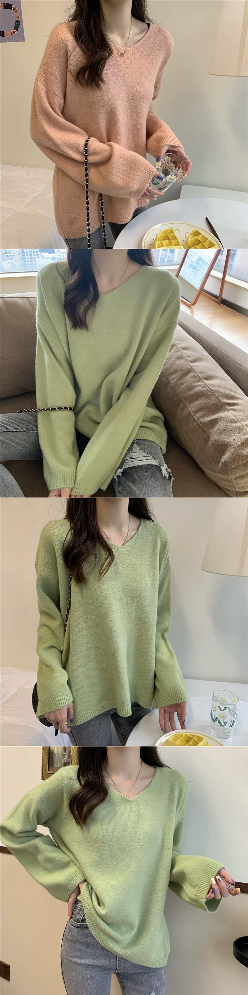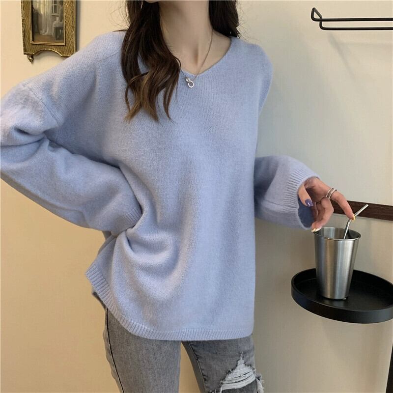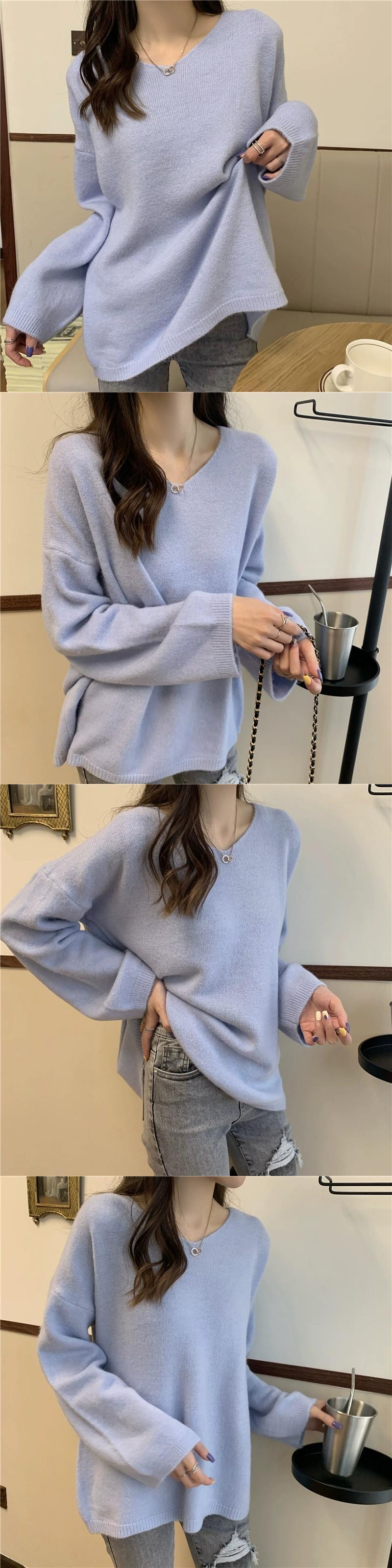 秋冬の紫色の V ネック セーター レディース、ファッショナブル、ゆったりとしたアウターウェア、怠惰なスタイル、痩身、万能な長袖セーター ロング オータム 秋物 ウィンター 冬物 Vネック パープル 7460088120091224 | framboise21
