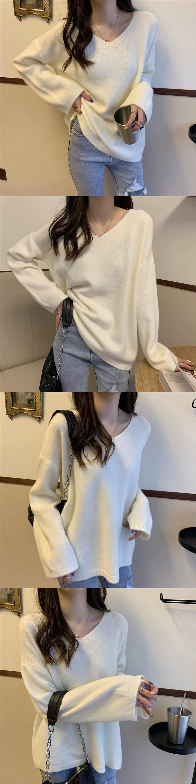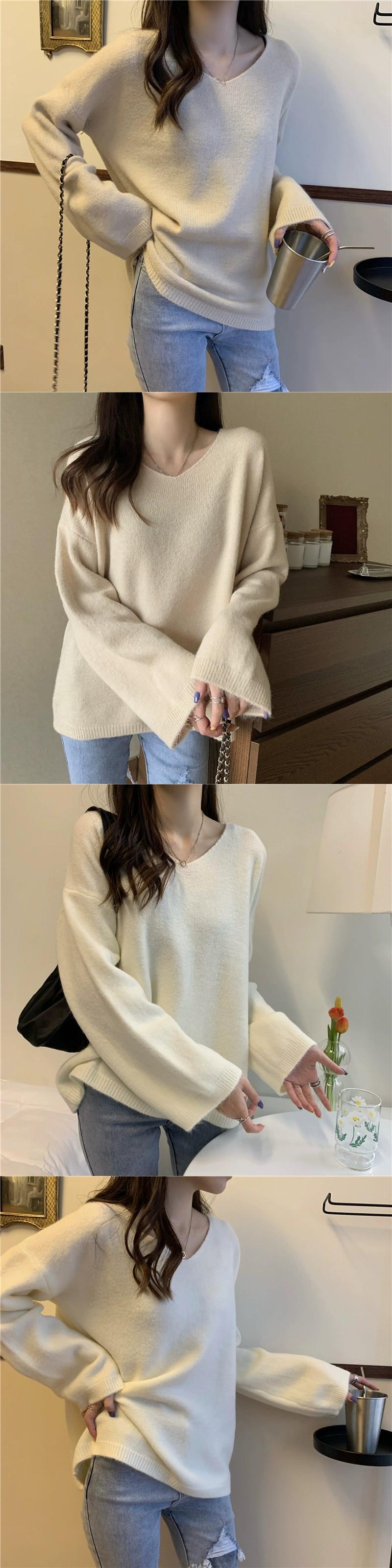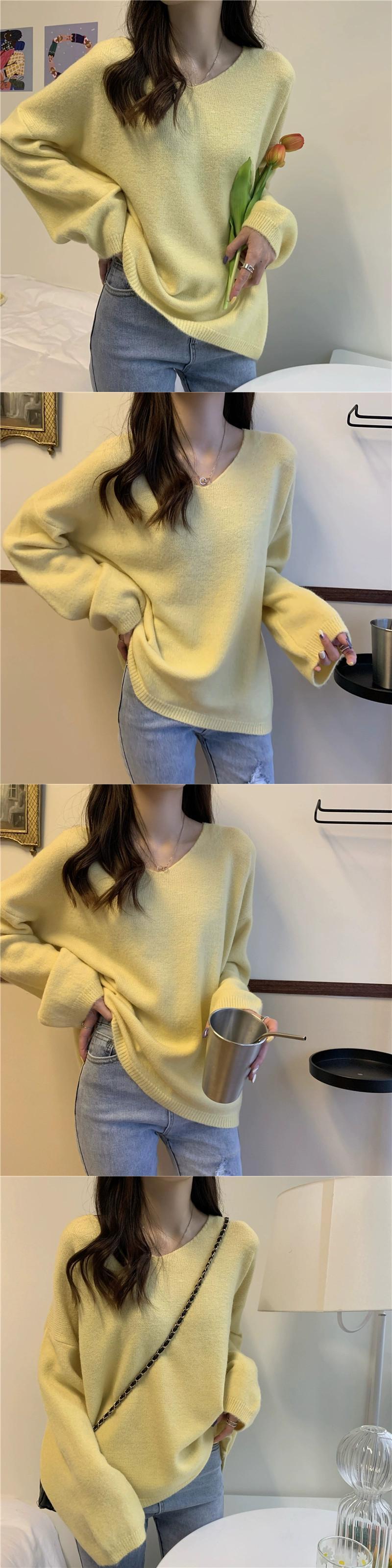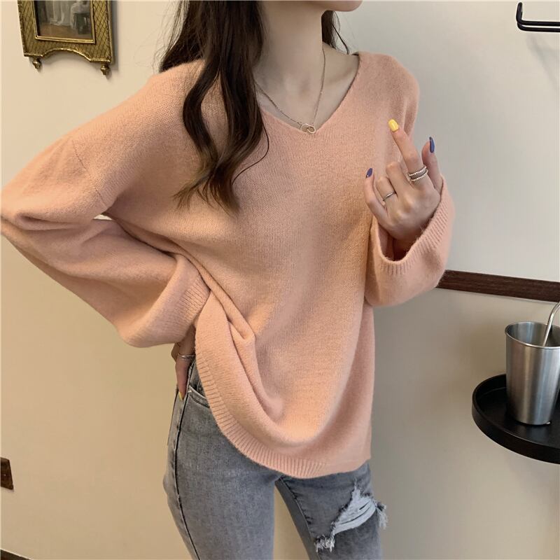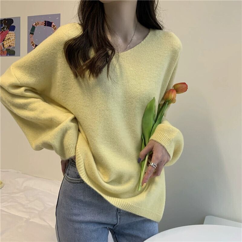 秋冬の紫色の V ネック セーター レディース、ファッショナブル、ゆったりとしたアウターウェア、怠惰なスタイル、痩身、万能な長袖セーター ロング オータム 秋物 ウィンター 冬物 Vネック パープル 7460088120091224 | framboise21