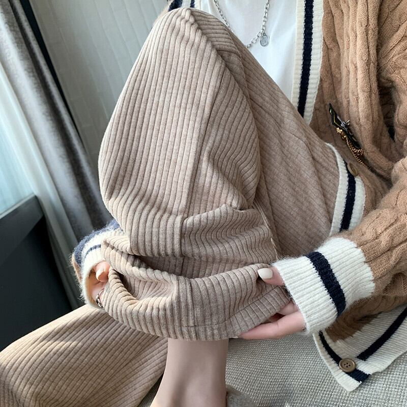 厚みのあるシェニールワイドレッグパンツの女性の秋と冬のハイウエストベルベットパンツルーズストレートフロアレングスモップカジュアルパンツ オータム 秋物 ウィンター 冬物 7460097956328125 | framboise21
