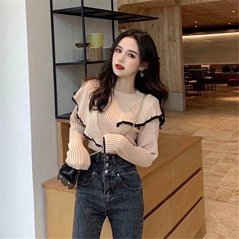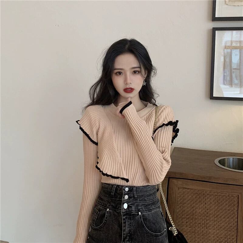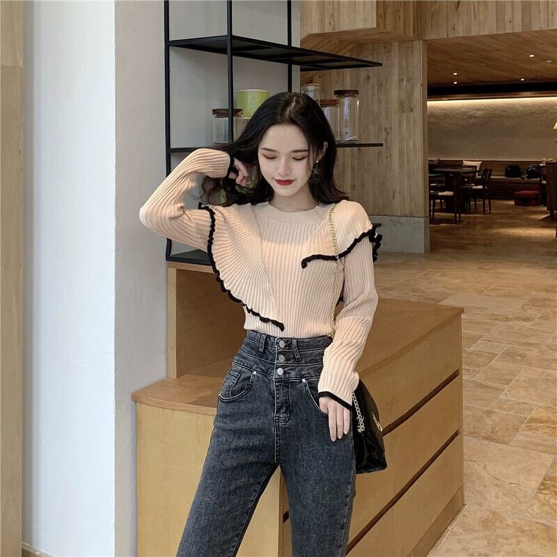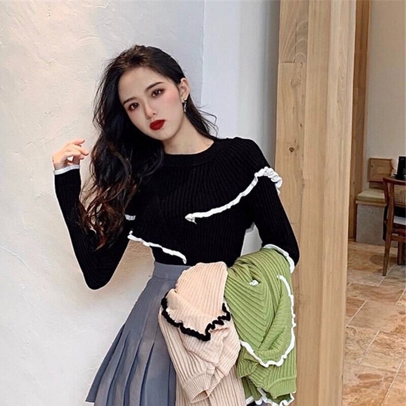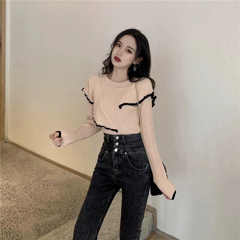 厚みのあるインナーニットボトムセーター、イヤリング付きレディース、秋と冬のハイエンドデザイン、スリム、長袖ブラックセーター ロング オータム 秋物 ウィンター 冬物 指輪 7460091784908230 | framboise21